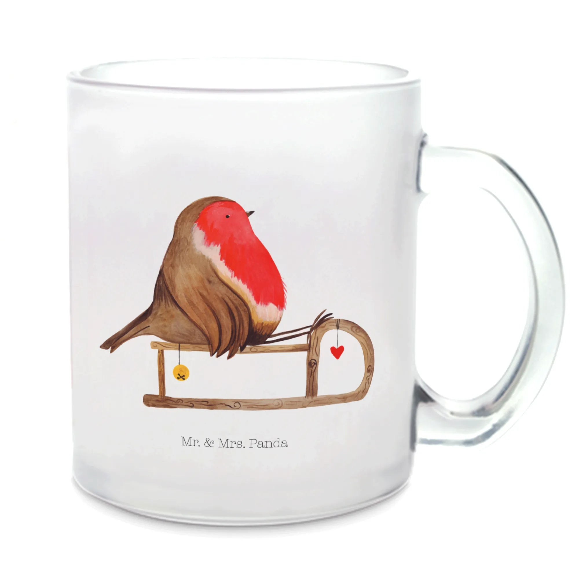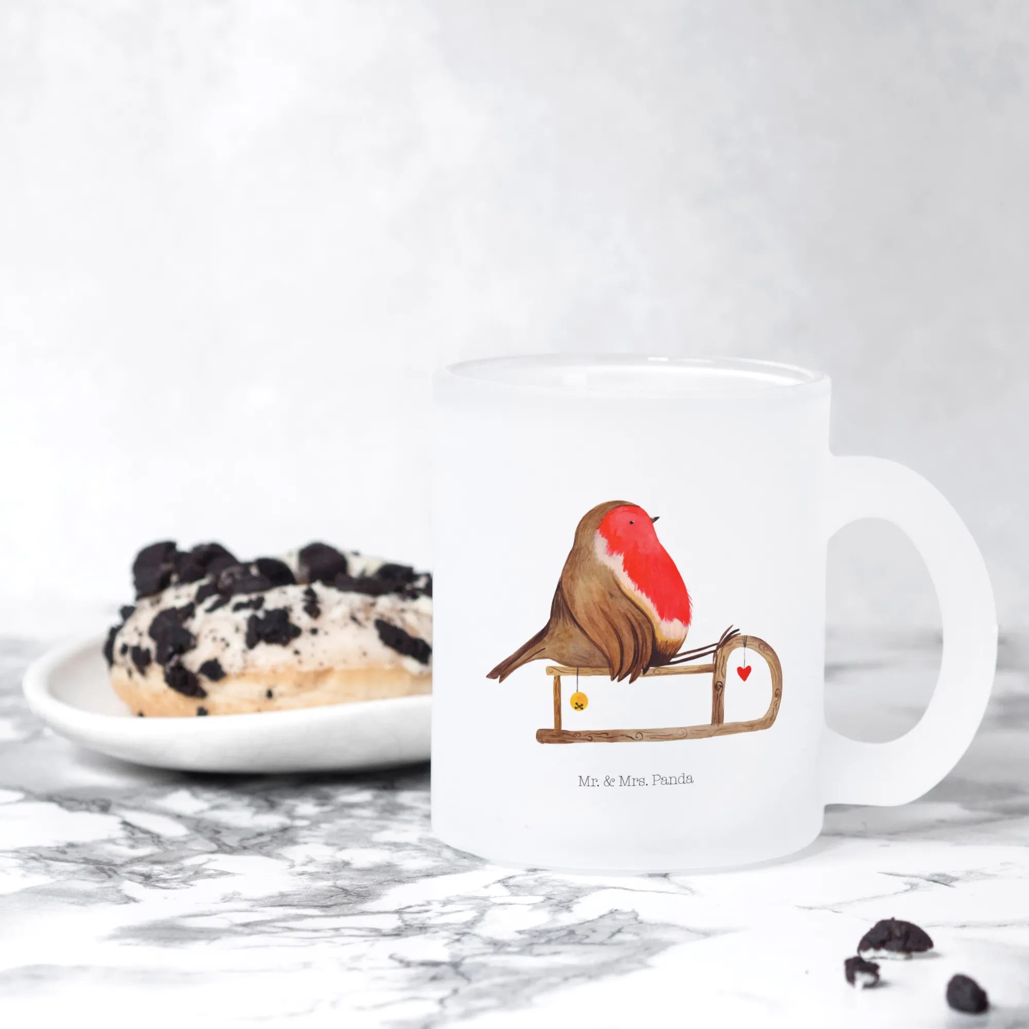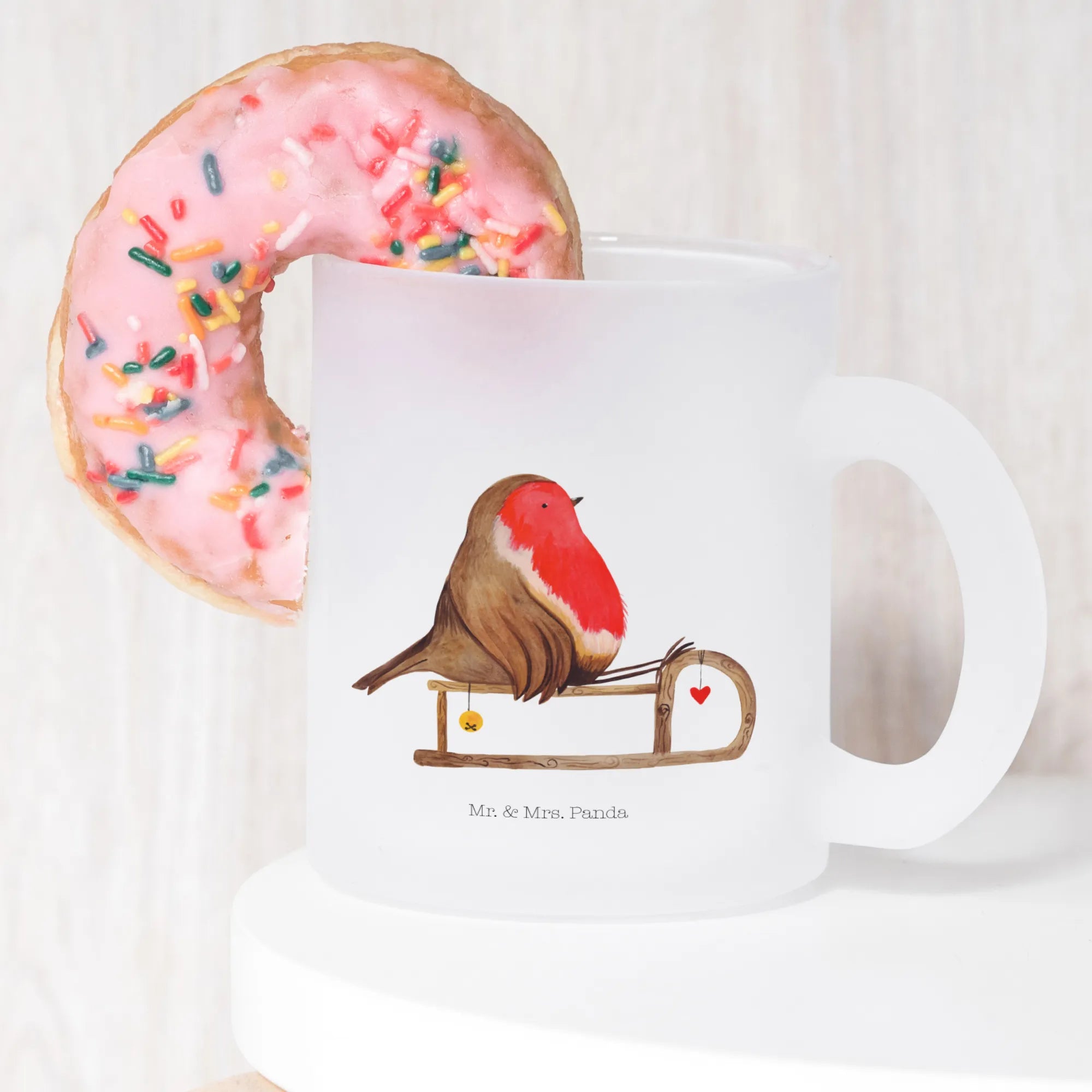 Das Motiv, liebevoll von Mrs. Panda kreiert, bringt die Stimmung der kalten Jahreszeit in dein Zuhause. Egal, ob du Tee, Glühwein oder Kaffee genießt, diese edle Teetasse aus robustem, extra starkem Premiumglas mit kratzfestem und hitzebeständigem Aufdruck ist ideal für all deine Heißgetränke.