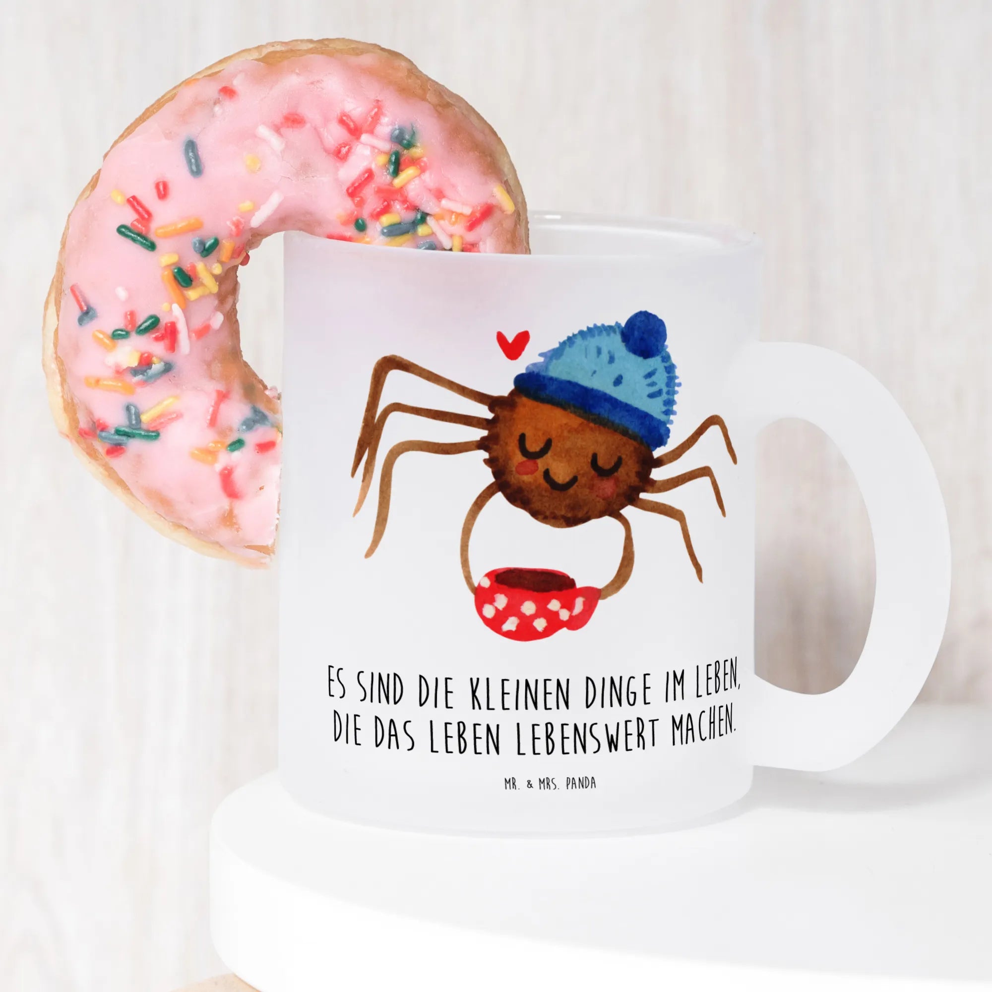 Diese edle und einzigartige Teetasse aus robustem, extra starkem Premiumglas mit einer satinierte Oberfläche bringt nicht nur Stil auf deinen Tisch, sondern hat auch ein süßes Motiv zu bieten. Die niedliche Spinne Agathe trinkt genüsslich ihren Kaffee, während das Herz neben ihr für die kleinen Dinge im Leben steht. Mit dem inspirierenden Spruch „Es sind die kleinen Dinge im Leben, die das Leben lebenswert machen“ wird jeder Schluck aus dieser Tasse zu einem besonderen Moment.