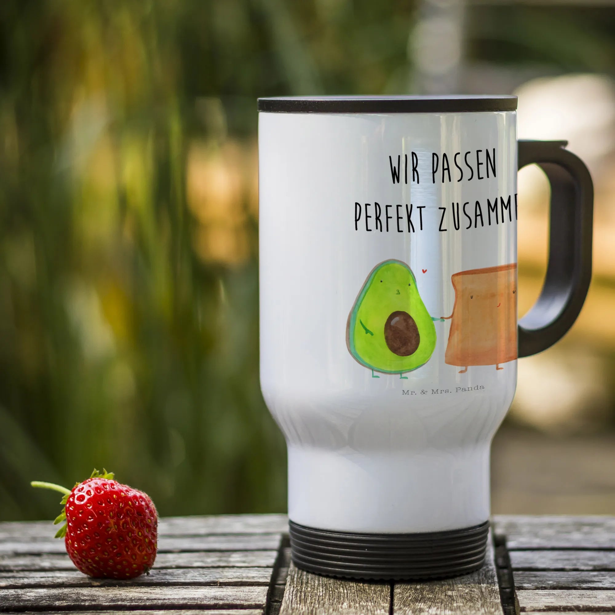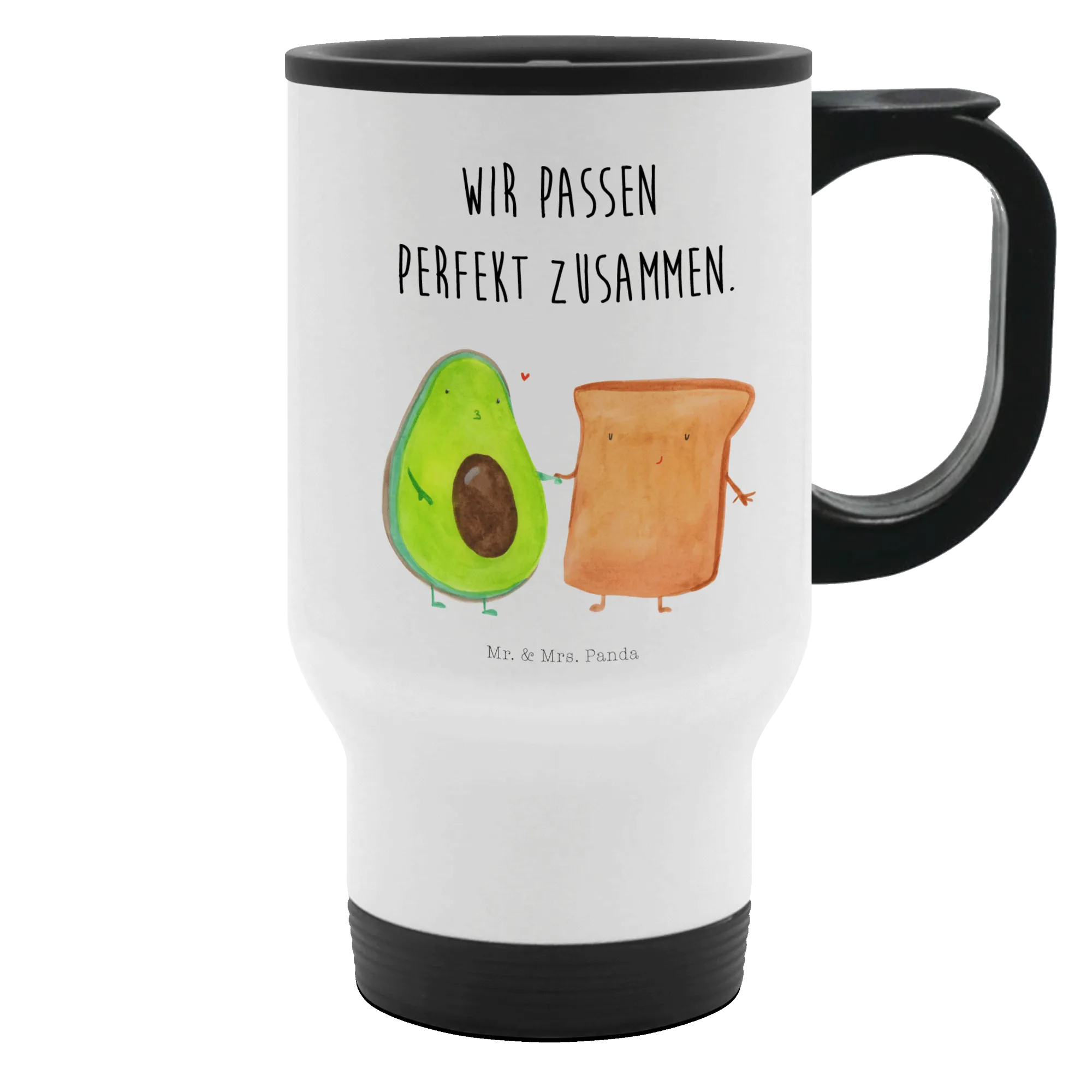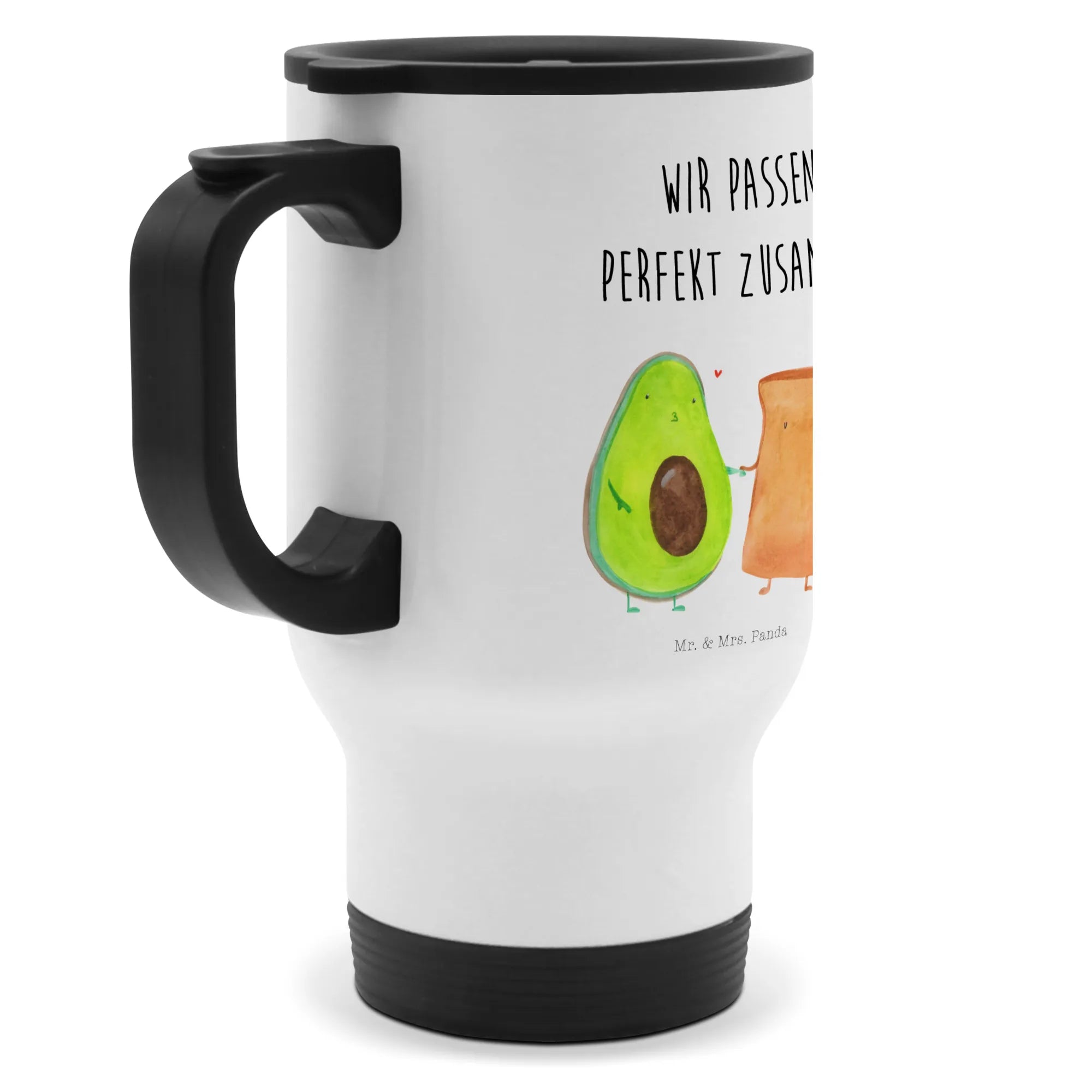 Das Highlight ist das zauberhafte Motiv – eine süße Avocado und ein niedlicher Toast, die sich verliebt an den Händen halten. Mit dem Spruch 'Wir passen perfekt zusammen' bringt der Thermobecher nicht nur Freude ins Leben, sondern ist auch eine wunderbare Möglichkeit, Deine Wertschätzung für liebe Menschen auszudrücken. Ob für den besten Freund, die Freundin oder einfach als schickes Hochzeitsgeschenk – diese Warmhaltetasse trifft immer den richtigen Ton.