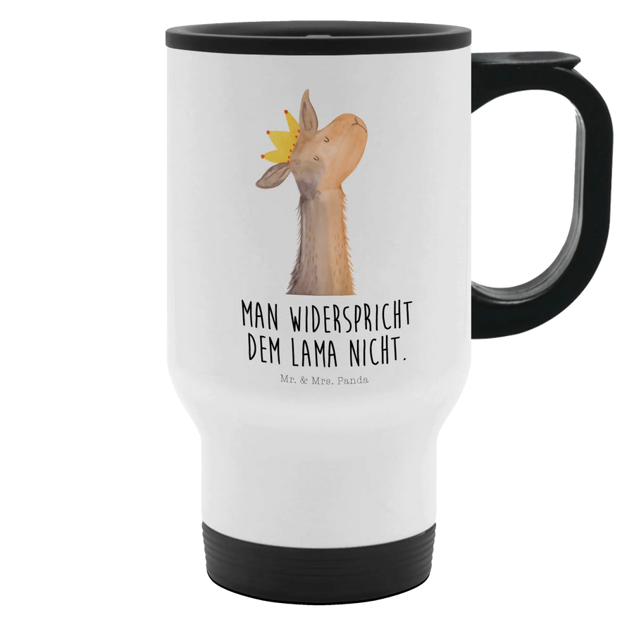 Der Thermobecher mit dem süßen Lamakopf König aus der Lama-Kollektion von Mr. & Mrs. Panda ist der perfekte Begleiter für alle, die ihren Kaffee oder Tee überall genießen möchten. Ob auf dem Weg zur Arbeit, beim Sport oder im Büro, dieser isolierte Kaffeebecher hält deine Getränke länger warm und sieht dabei einfach bezaubernd aus.