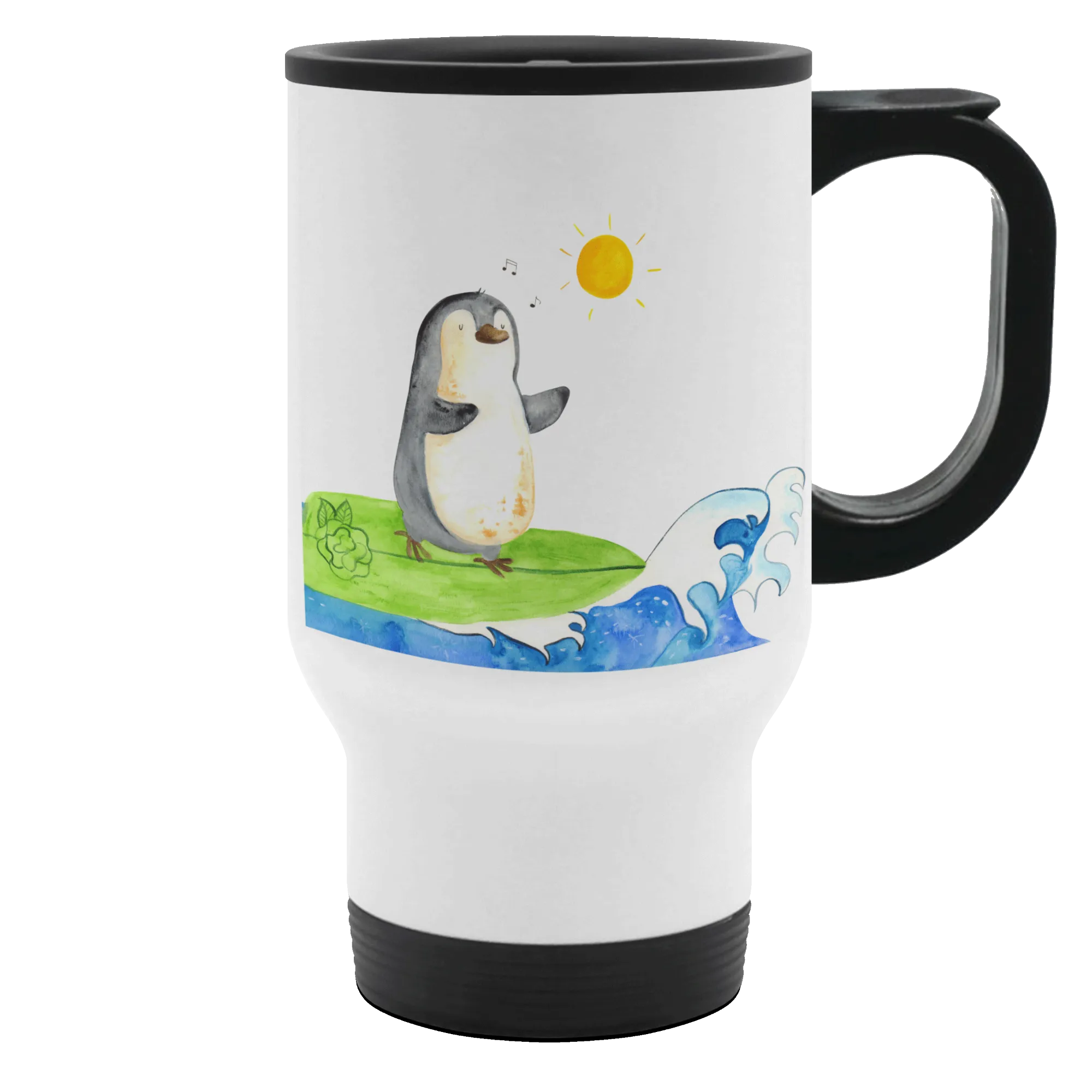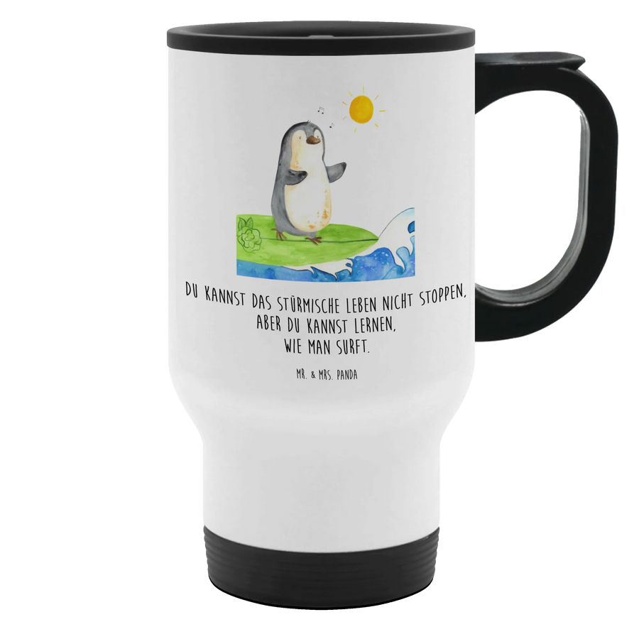 Der perfekte Begleiter für alle, die das stürmische Leben lieben und dabei nicht auf eine heiße Tasse verwöhnen möchten! Der Thermobecher Pinguin Surfer aus unserer beliebten Pinguin-Kollektion von Mr. & Mrs. Panda vereint Funktionalität und niedliches Design in einem einzigartigen Produkt. Mit einem Fassungsvermögen von 390 ml ist der Kaffeebecher für unterwegs ideal für die Kaffeepause im Büro, die nächste Reise oder einfach für die entspannte Auszeit zu Hause.