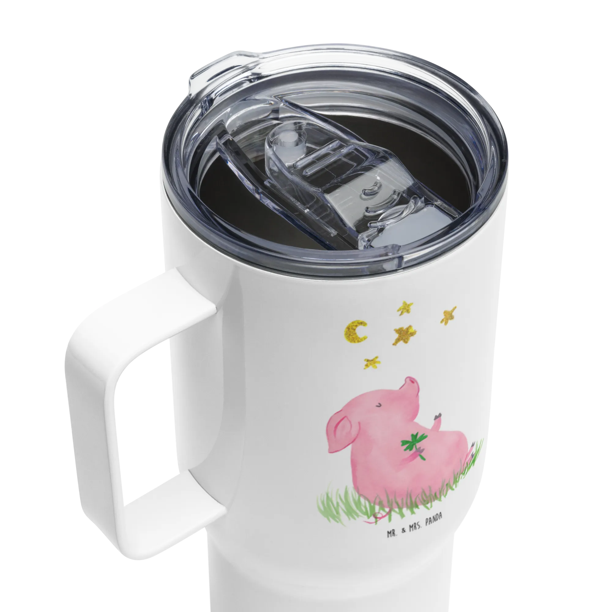 Schweinchen-Motiv mit Kleeblatt und Sernchen – Niedliches Glücksdesign von Mr. & Mrs. Panda