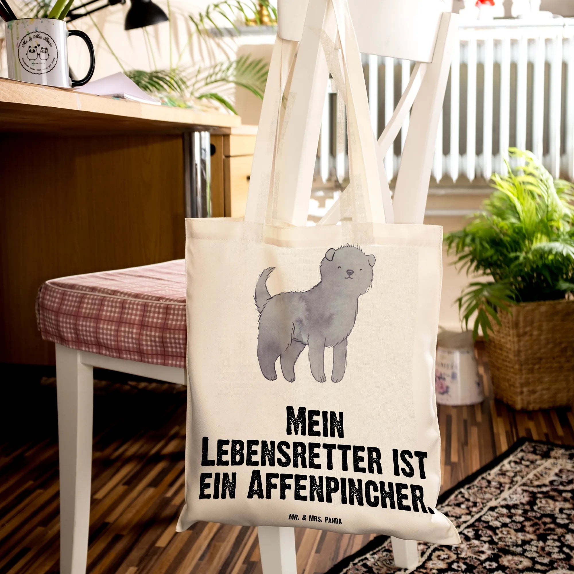 Design und Qualität: Das Motiv wurde mit viel Liebe von Mrs. Panda aquarelliert und zeigt den Affenpincher in seiner typischen, aufgeweckten Haltung. Die pastell-braune Hintergrundfarbe unterstreicht die warme Ausstrahlung des Bildes und macht die Tasche zu einem stilvollen Alltagsbegleiter.