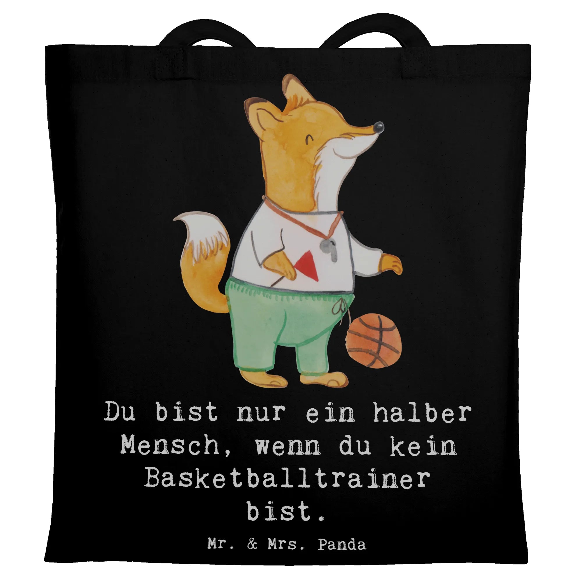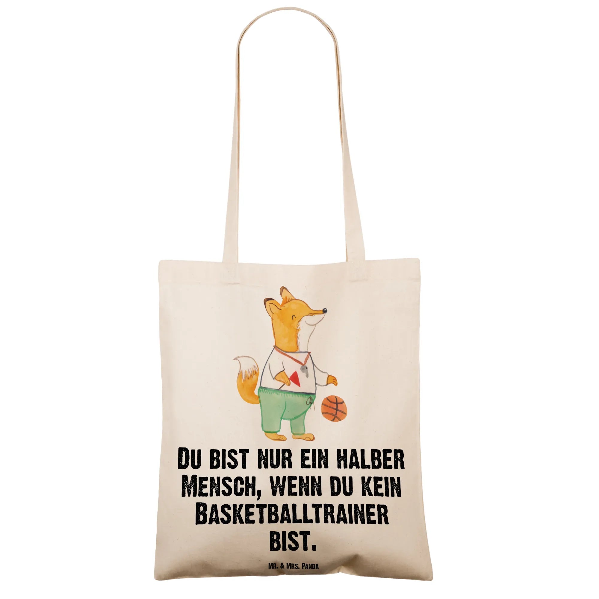 Eine liebevolle Tragetasche von Mr. & Mrs. Panda – perfekt für alle Basketballfans und Trainer! Unser süßer Fuchs mit Trillerpfeife und Basketball begeistert mit einem warmherzigen Spruch: „Du bist nur ein halber Mensch, wenn du kein Basketballtrainer bist.“ Diese Tasche ist ein großartiges Geschenk für Trainer, Vereinsmitglieder oder Kollegen und bringt auf charmante Weise Wertschätzung und Humor zusammen.