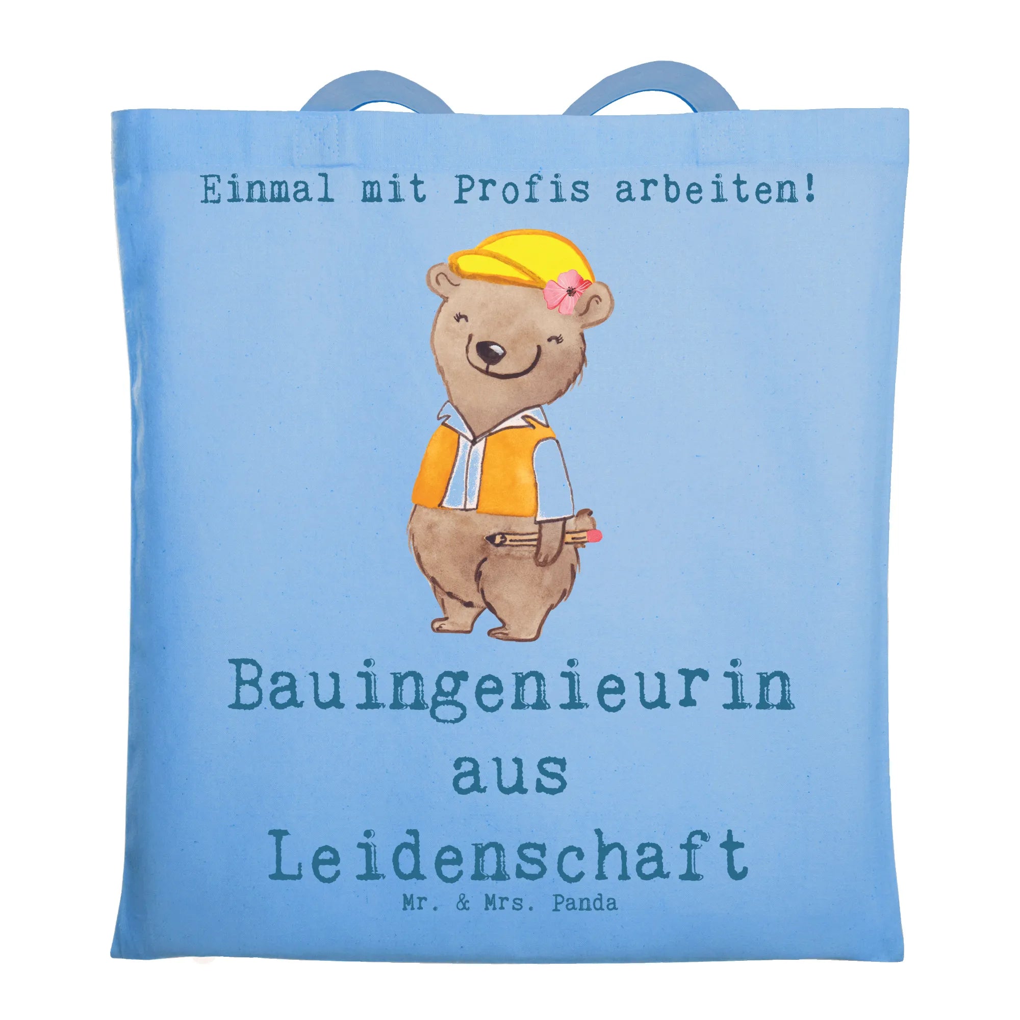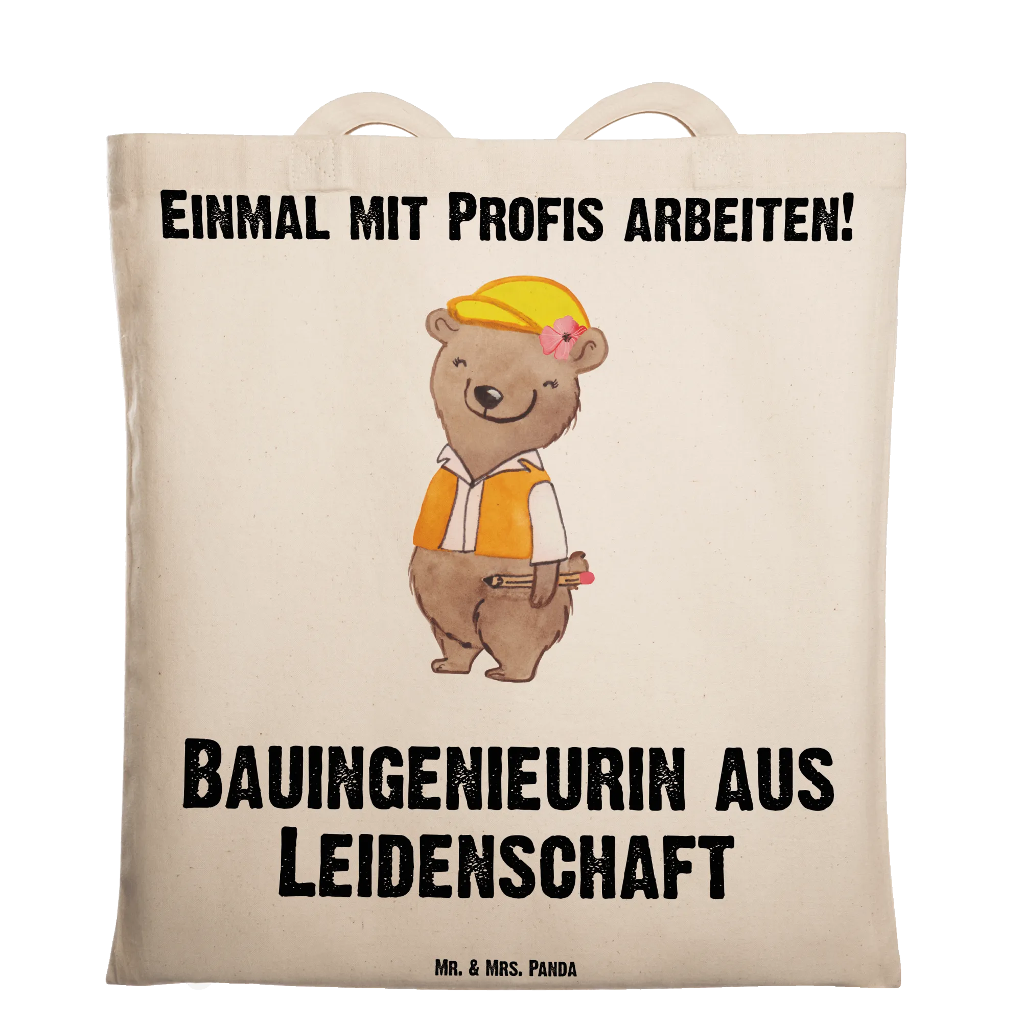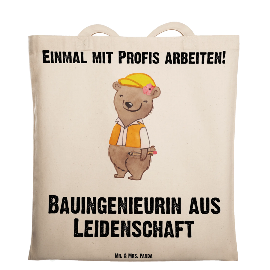 Praktisch, liebenswert und berufsstolz: Die Tragetasche "Bauingenieurin aus Leidenschaft" von Mr. & Mrs. Panda ist das perfekte Geschenk für alle Bauingenieurinnen, Statikerinnen und Ingenieurinnen. Das liebevoll handgezeichnete Aquarellmotiv zeigt eine kleine Bärendame mit Helm und Warnweste und wird durch den klaren Slogan „Bauingenieurin aus Leidenschaft“ ergänzt. Diese Stofftasche ist ideal als Geschenk zum Studium, zur bestandenen Prüfung, zum Abschied aus dem Team oder als Dankeschön an eine Kollegin.