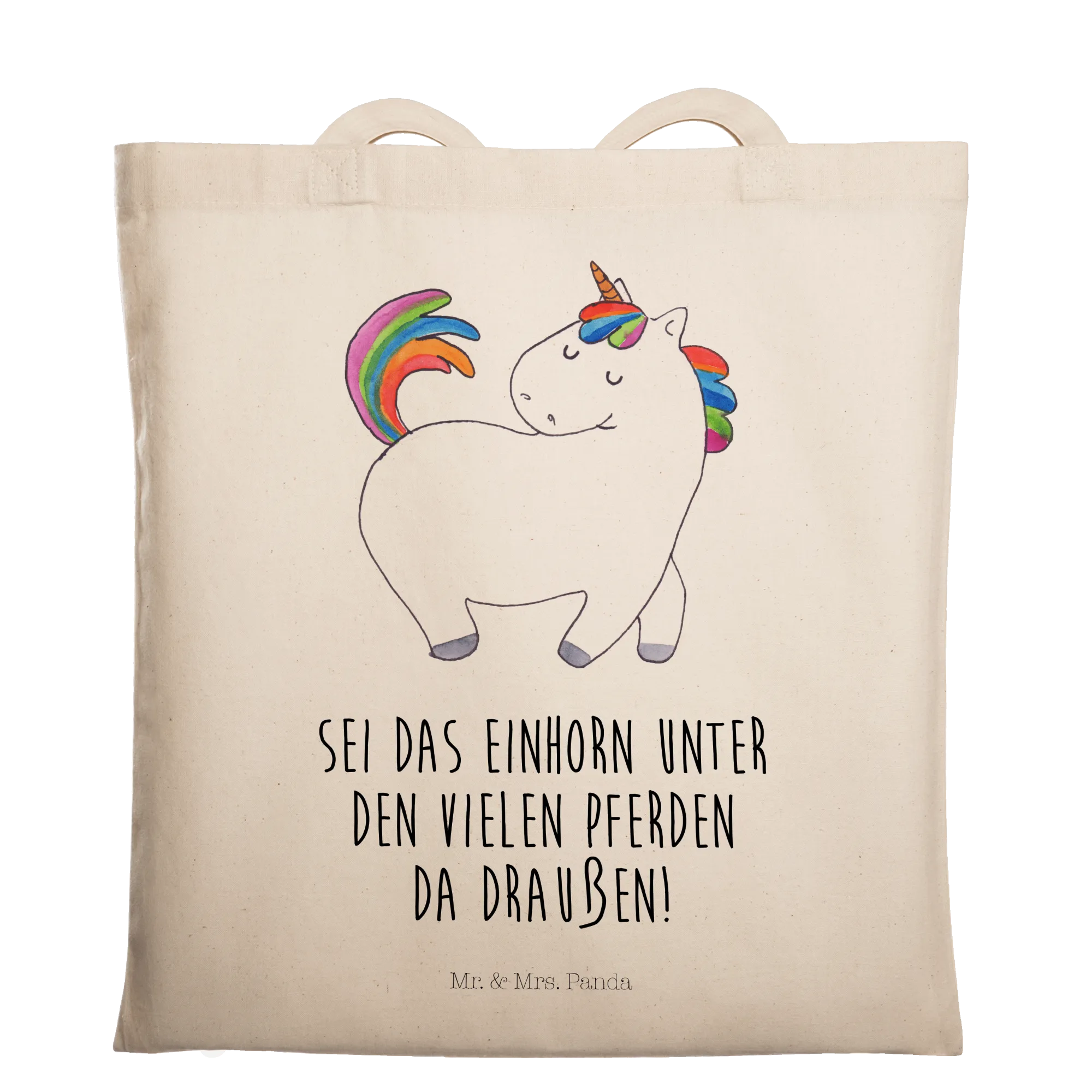 Die wunderschöne Tragetasche von Mr. & Mrs. Panda mit dem süßen Motiv des stolzierenden Einhorns ist das perfekte Geschenk für alle, die ein wenig Magie in ihren Alltag bringen möchten! Ob für deine beste Freundin, die Einhornliebhaberin oder für dich selbst, wenn du einfach anders und bunt sein möchtest – diese Tasche ist ein Must-Have!