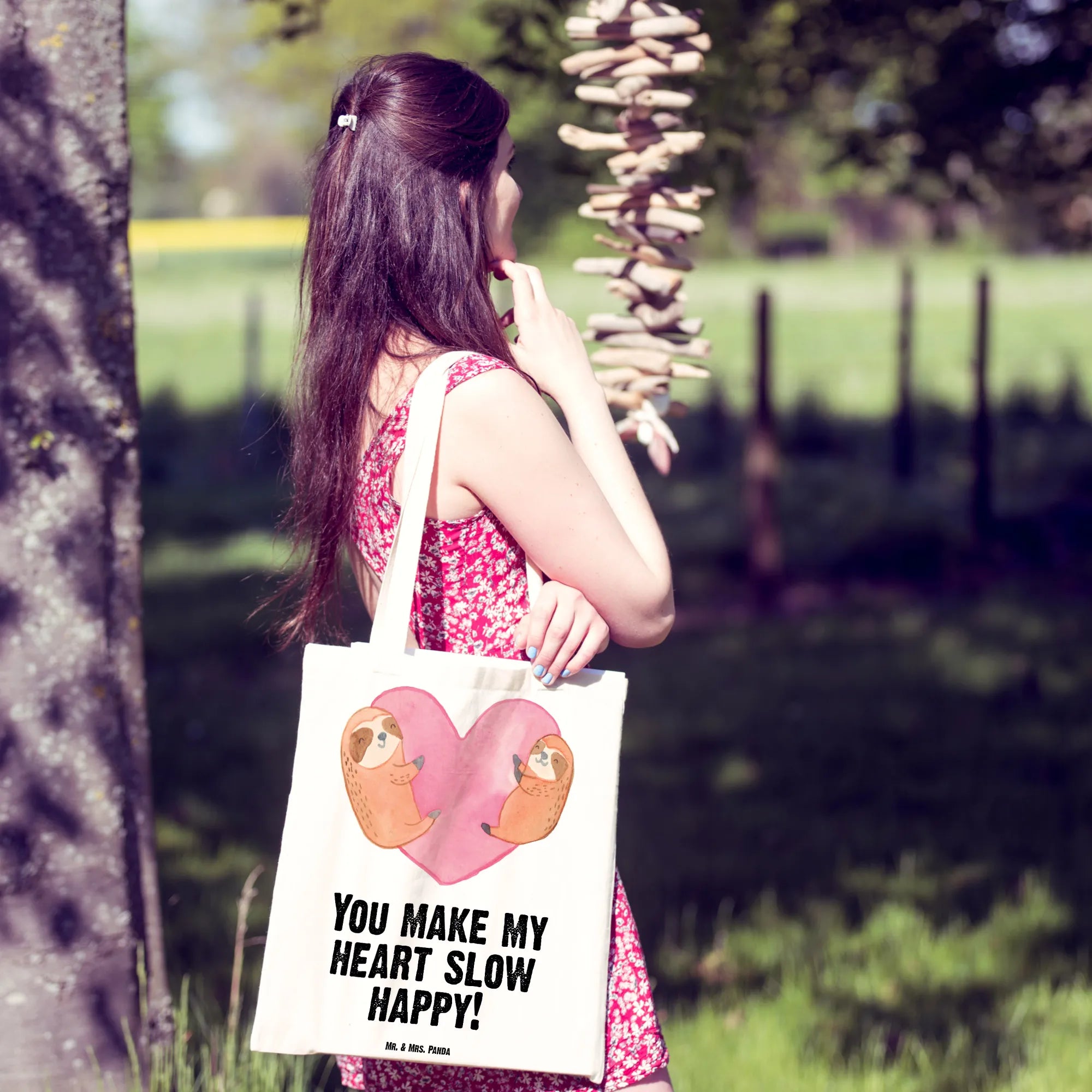 Tragetasche Faultiere Herz - mit Spruch - Transparent