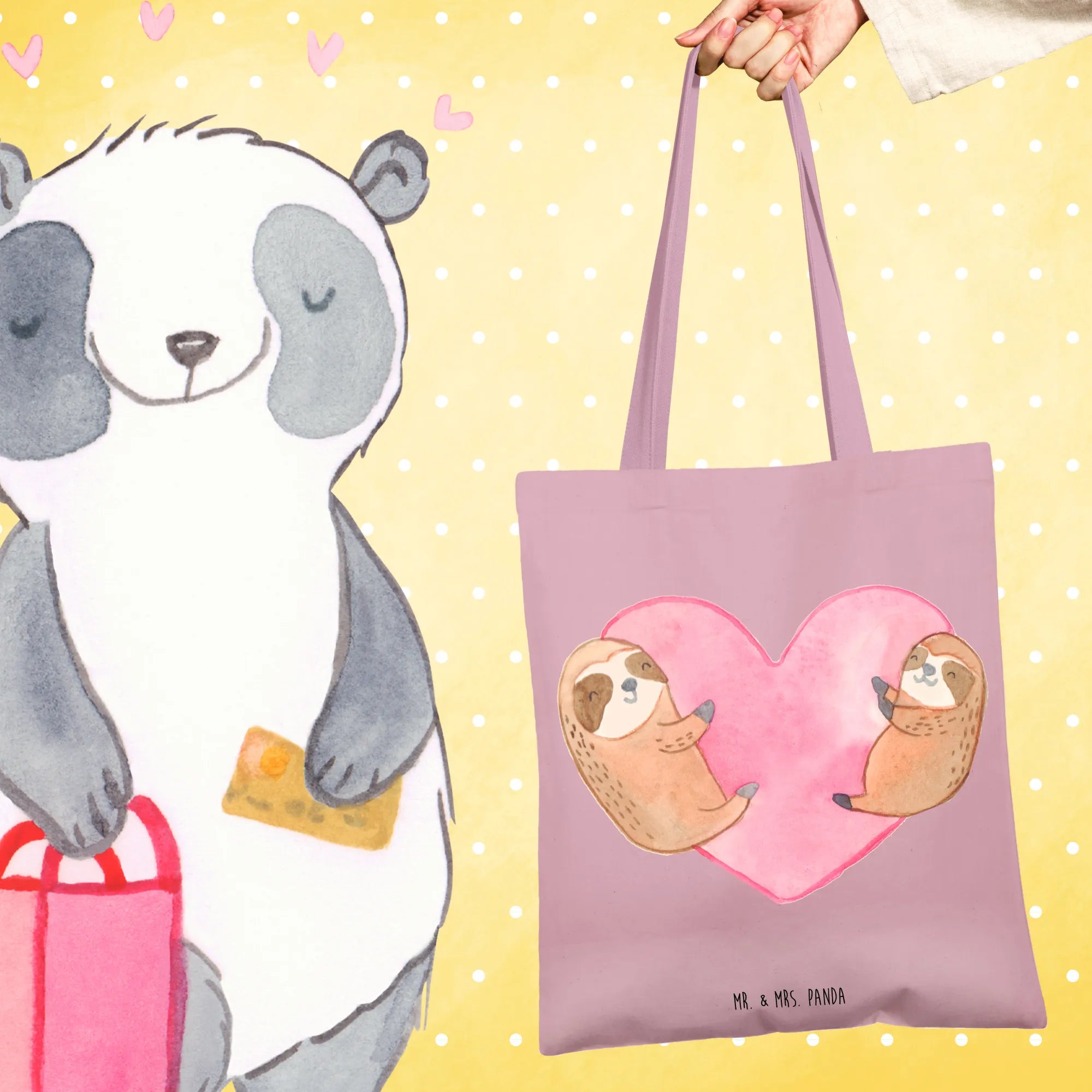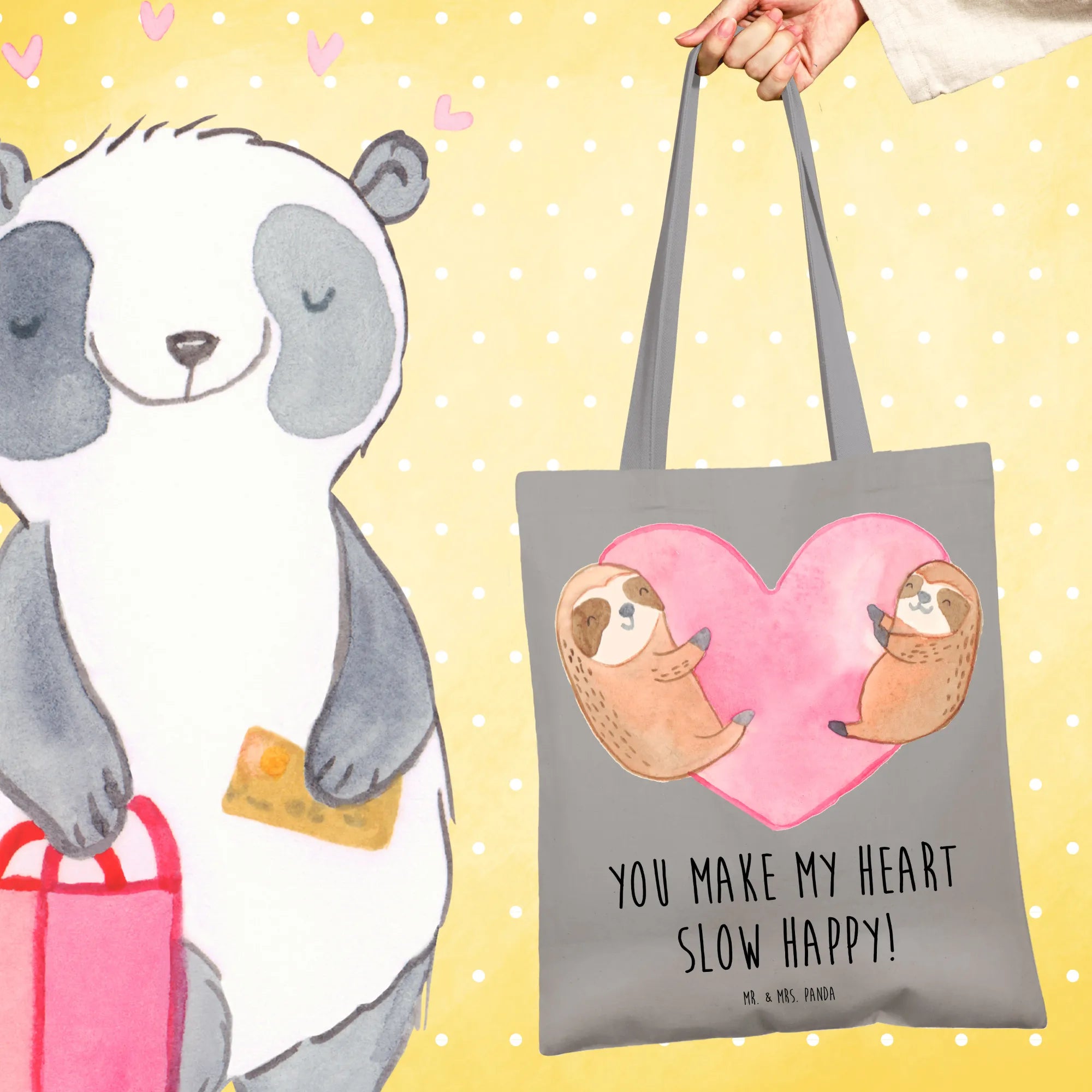 Erlebe die fröhliche Tragetasche von Mr. & Mrs. Panda – dein perfekter Einkaufspartner, der immer ein Lächeln auf dein Gesicht zaubert!