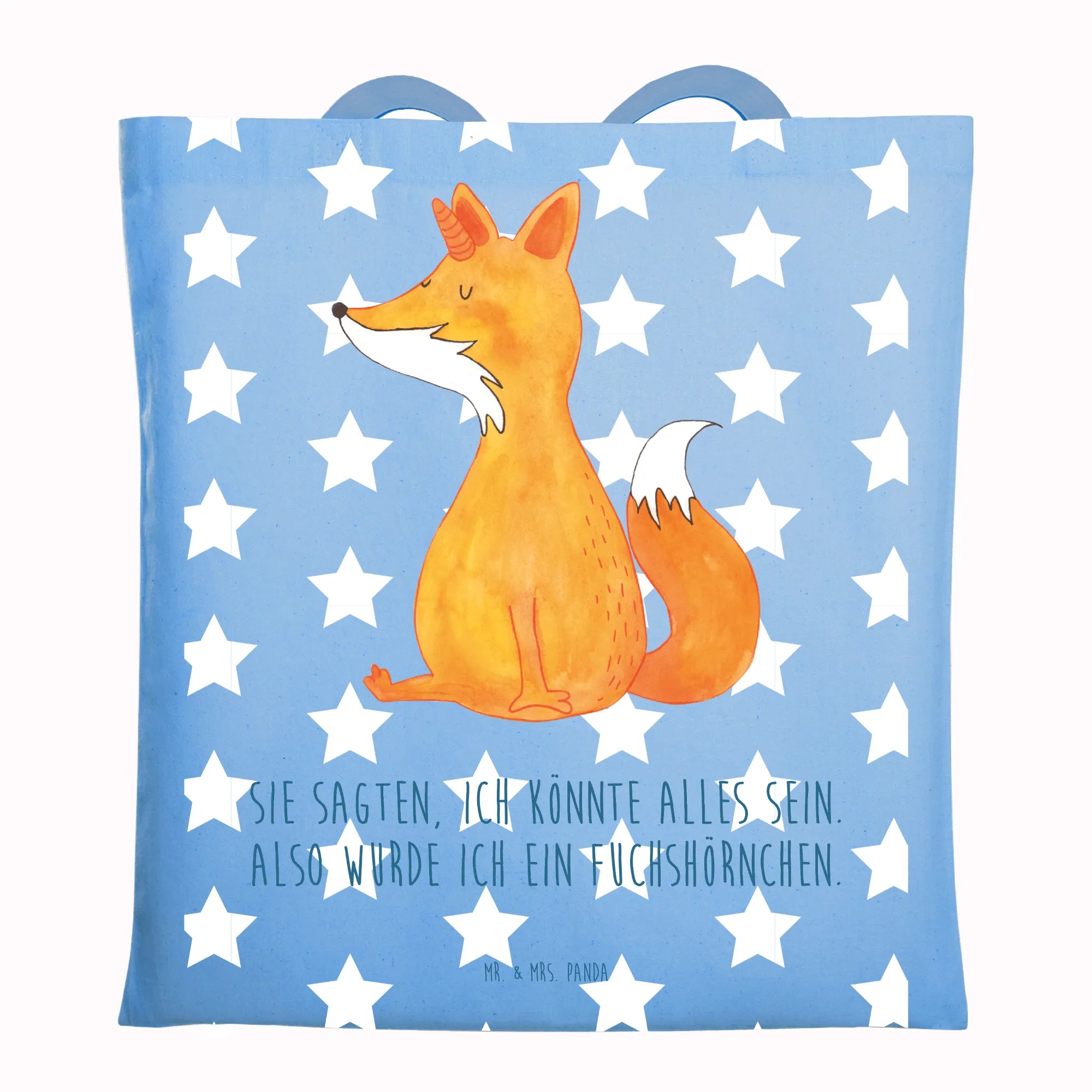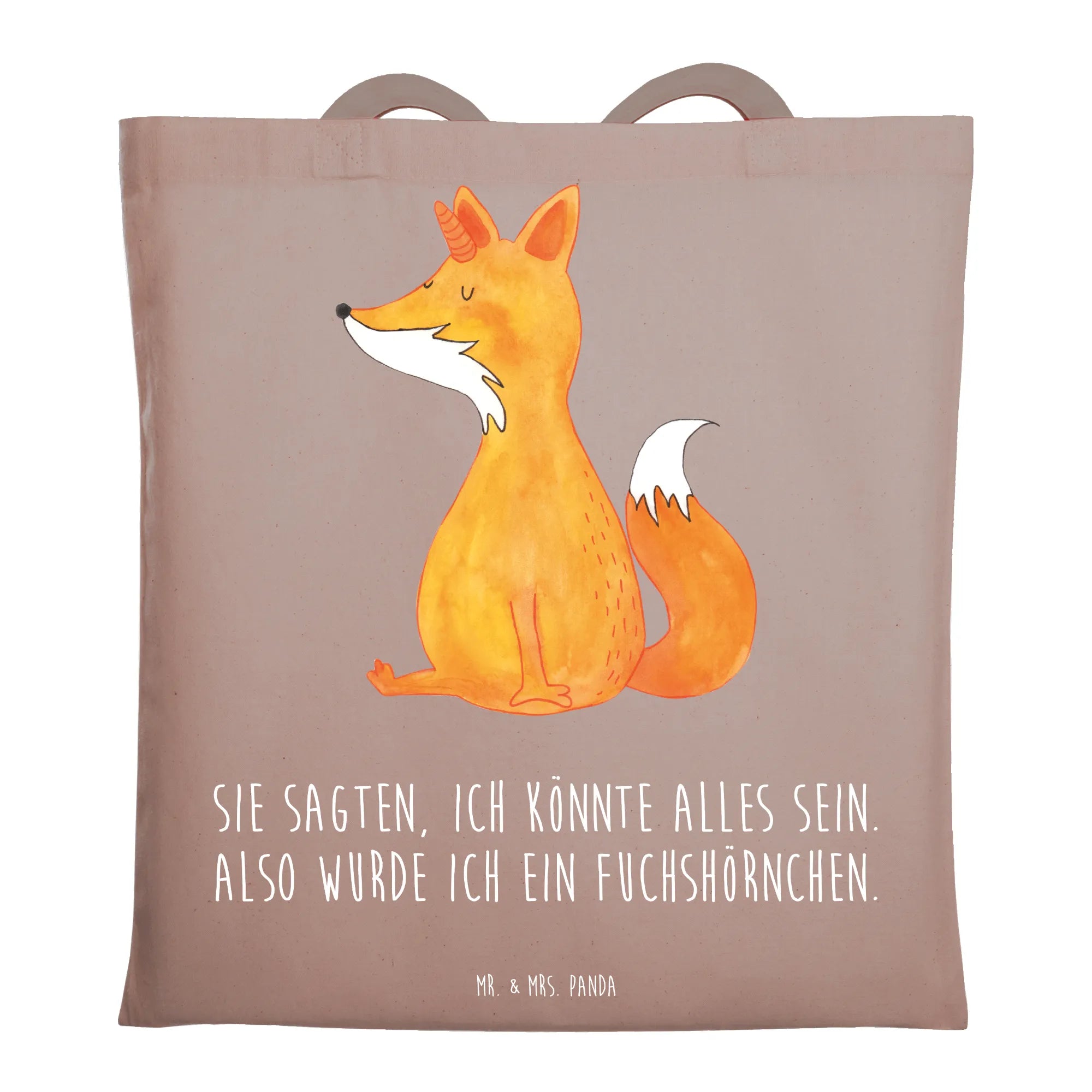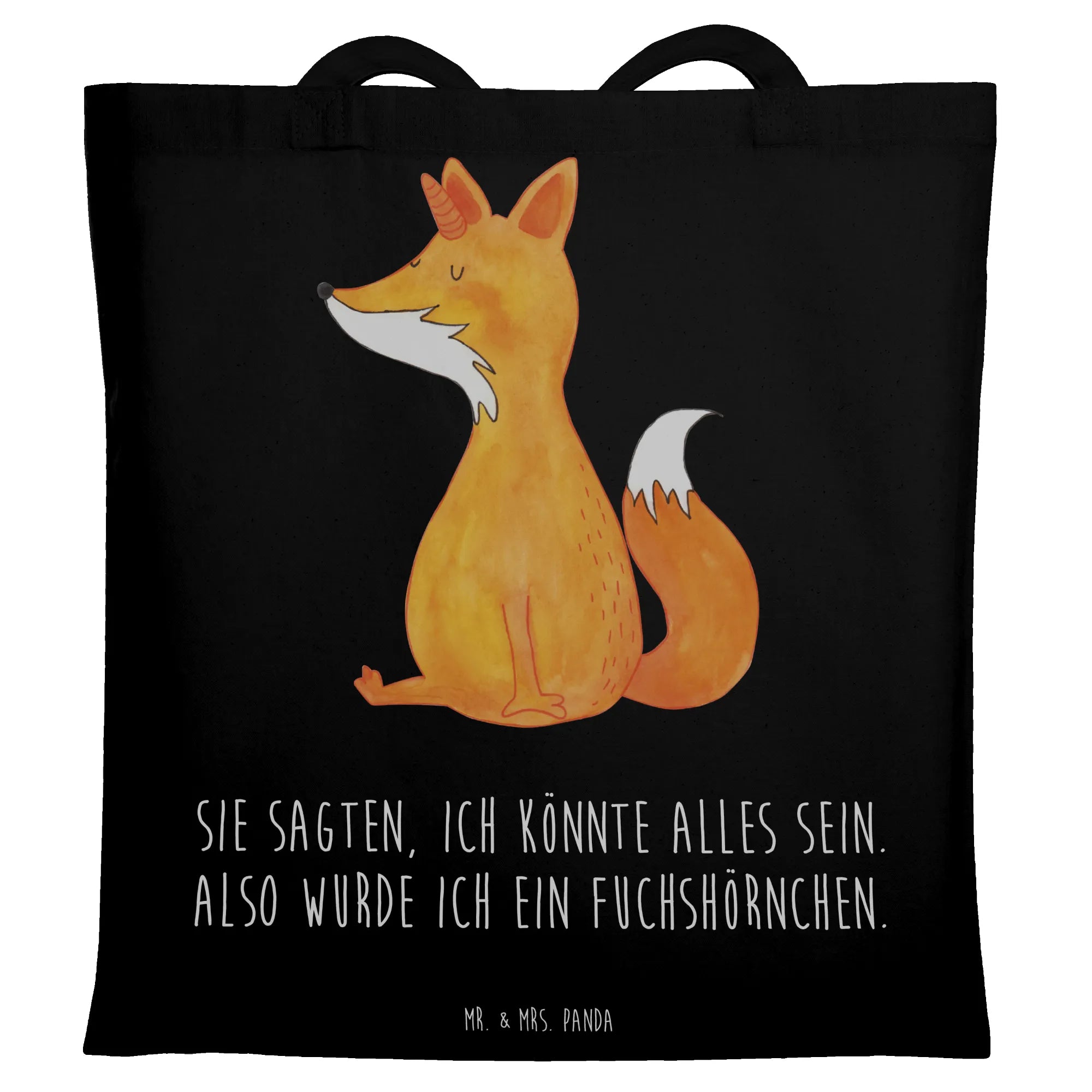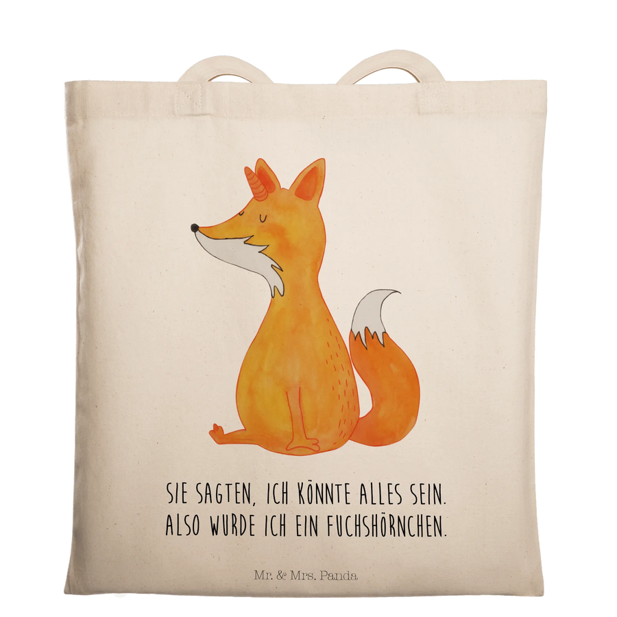 Entdecke die zauberhafte Tragetasche "Fuchshörnchen" aus der Einhorn-Kollektion von Mr. & Mrs. Panda! Diese einzigartige Tragetasche ist nicht nur ein Blickfang, sondern auch perfekt für alle Fuchs- und Einhorn-Liebhaber. Mit einem liebevoll handgezeichneten Motiv eines niedlichen Fuchs mit Einhorn auf dem Kopf bringt sie Freude in deinen Alltag. Die Botschaft "Sie sagten, ich könnte alles sein. Also wurde ich ein Fuchshörnchen." verleiht der Tasche einen humorvollen und positiven Touch.