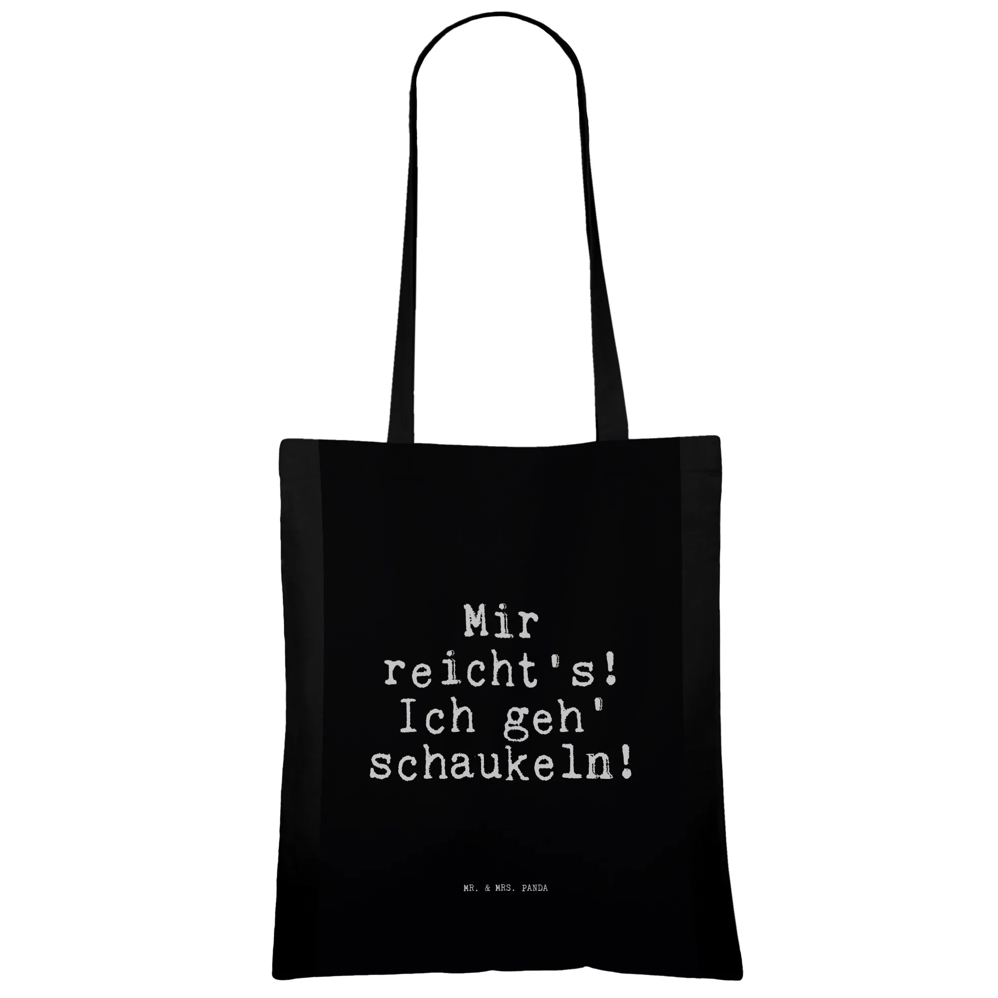 Diese fröhliche Tragetasche ist mehr als nur ein einfacher Beutel – sie ist ein kleines Lebensgefühl. Das süße Motiv mit dem Spruch „Mir reicht's! Ich geh' schaukeln!“ zaubert jedem Betrachter ein Lächeln ins Gesicht und eignet sich perfekt als Geschenk für Freundin, Mutter, Kollegin oder einfach für Dich selbst. 🌿