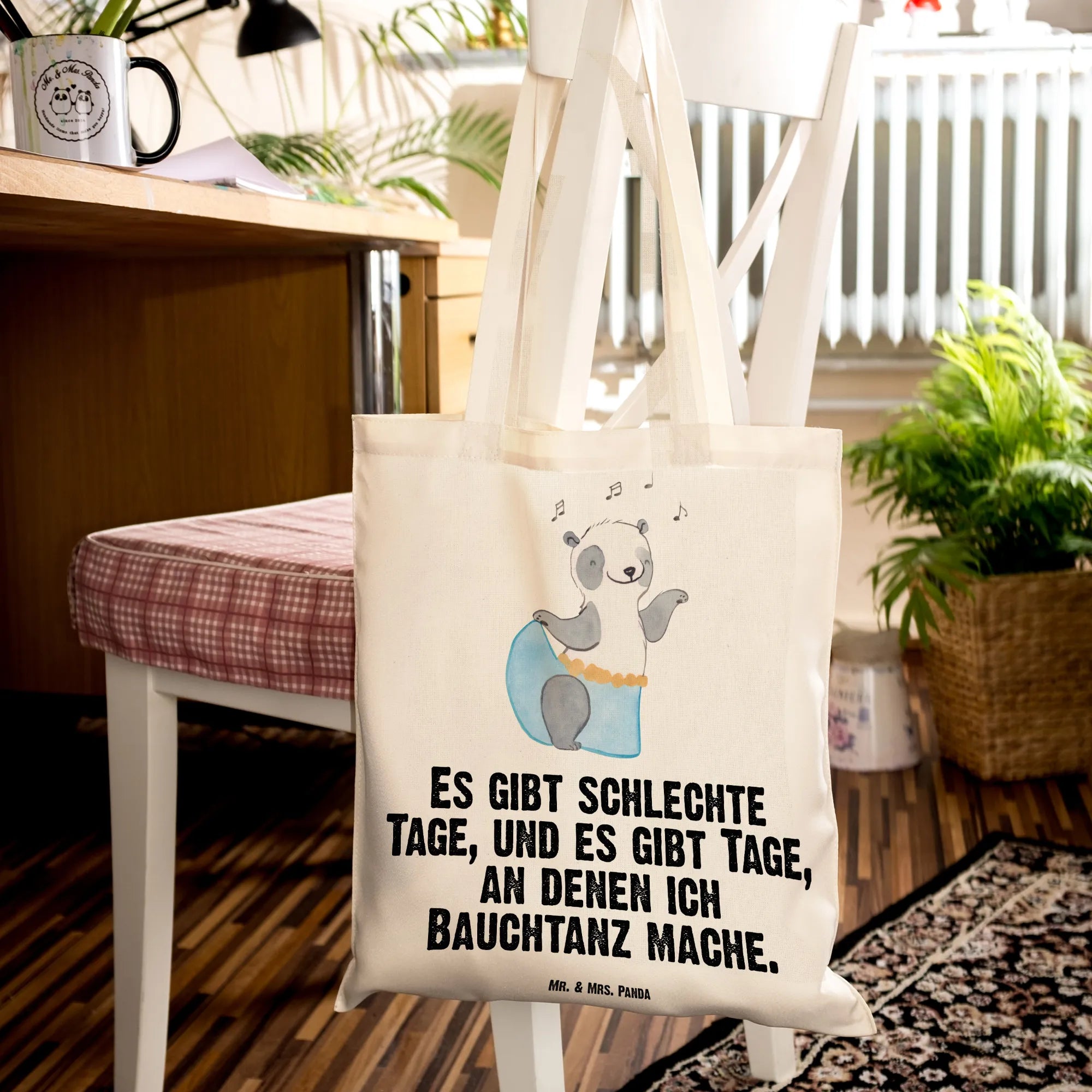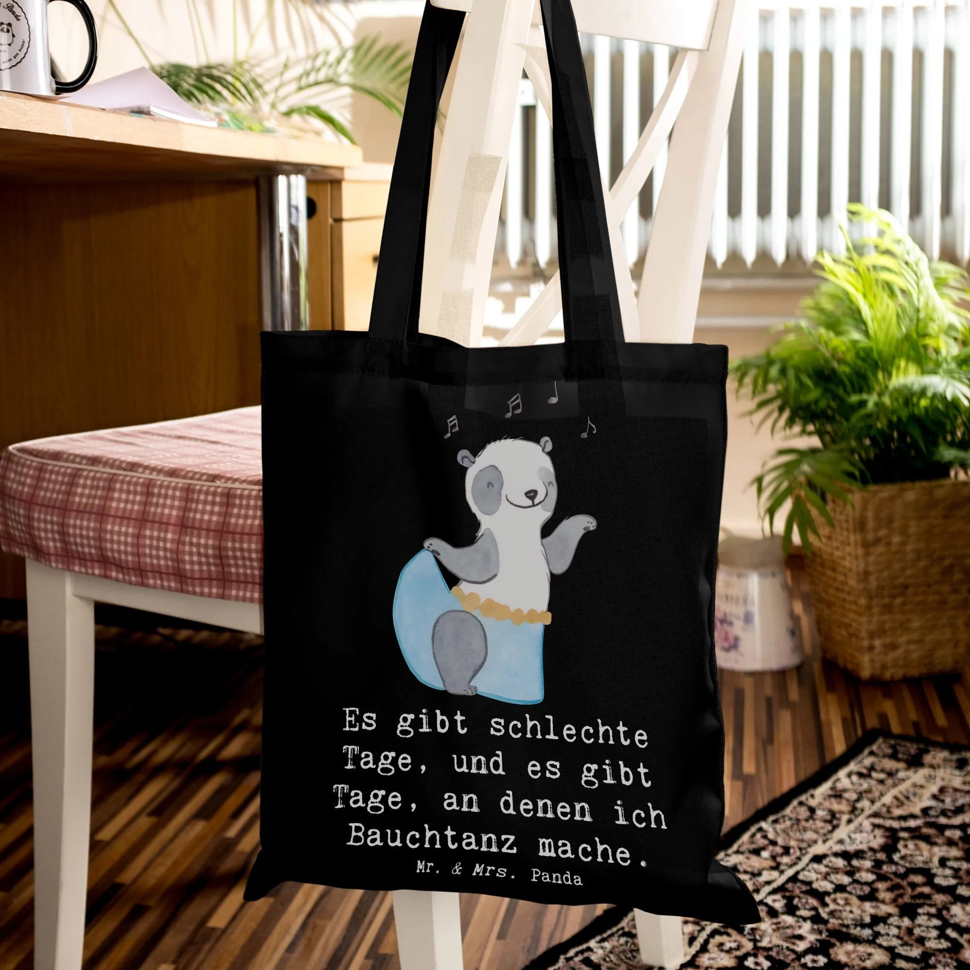 Tragetasche Panda Bauchtanz - mit Spruch - Transparent