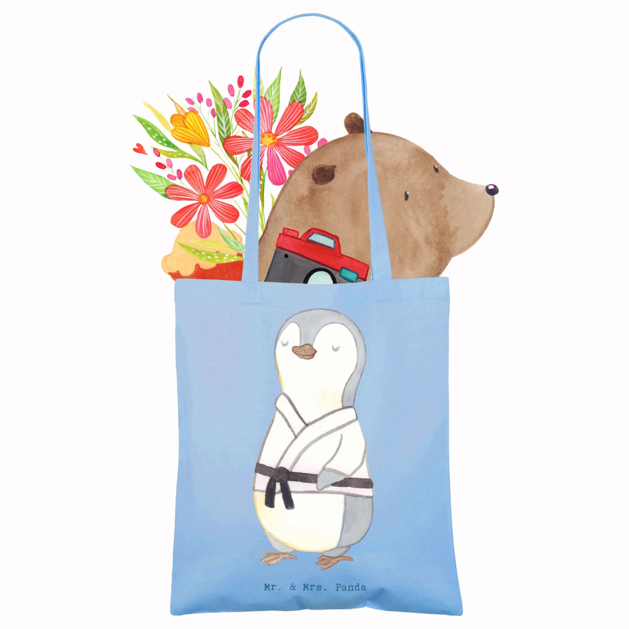 Entdecke die zauberhafte Tragetasche "Pinguin Karate Tage" von Mr. & Mrs. Panda – das ideale Geschenk für alle Sport- und Karate-Begeisterten! Diese entzückende Tragetasche wird mit einem liebevollen, handgezeichneten Motiv eines kleinen Pinguins im Karate-Anzug bedruckt. Egal, ob du sie als praktische Einkaufstasche, coole Strandtasche oder stylischen Shopper verwenden möchtest, sie ist nicht nur funktional, sondern bringt auch ein Lächeln auf dein Gesicht.