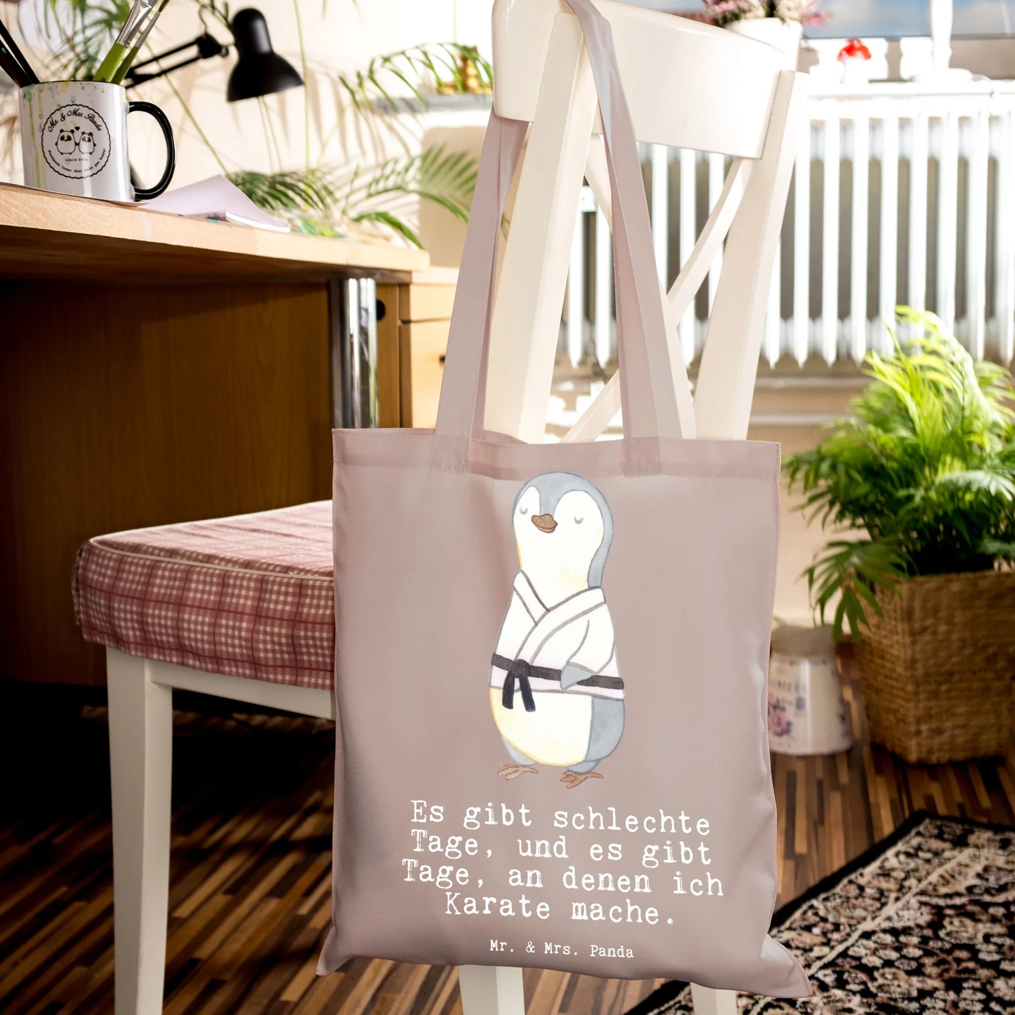 Entdecke die wunderbare Tragetasche von Mr. & Mrs. Panda – die perfekte Begleitung für alle Karate-Begeisterten und Sportler! Mit ihrem niedlichen Motiv eines Pinguins, der begeistert Karate macht, ist diese Tragetasche mehr als nur ein einfacher Begleiter. Sie vermittelt eine Botschaft, die jeden Tag aufhellt: „Es gibt schlechte Tage, und es gibt Tage, an denen ich Karate mache.“ Diese liebevoll gestaltete Tasche passt perfekt zu deinem aktiven Lebensstil und ist ein tolles Geschenk für Freunde, die das Karate-Hobby leidenschaftlich verfolgen.