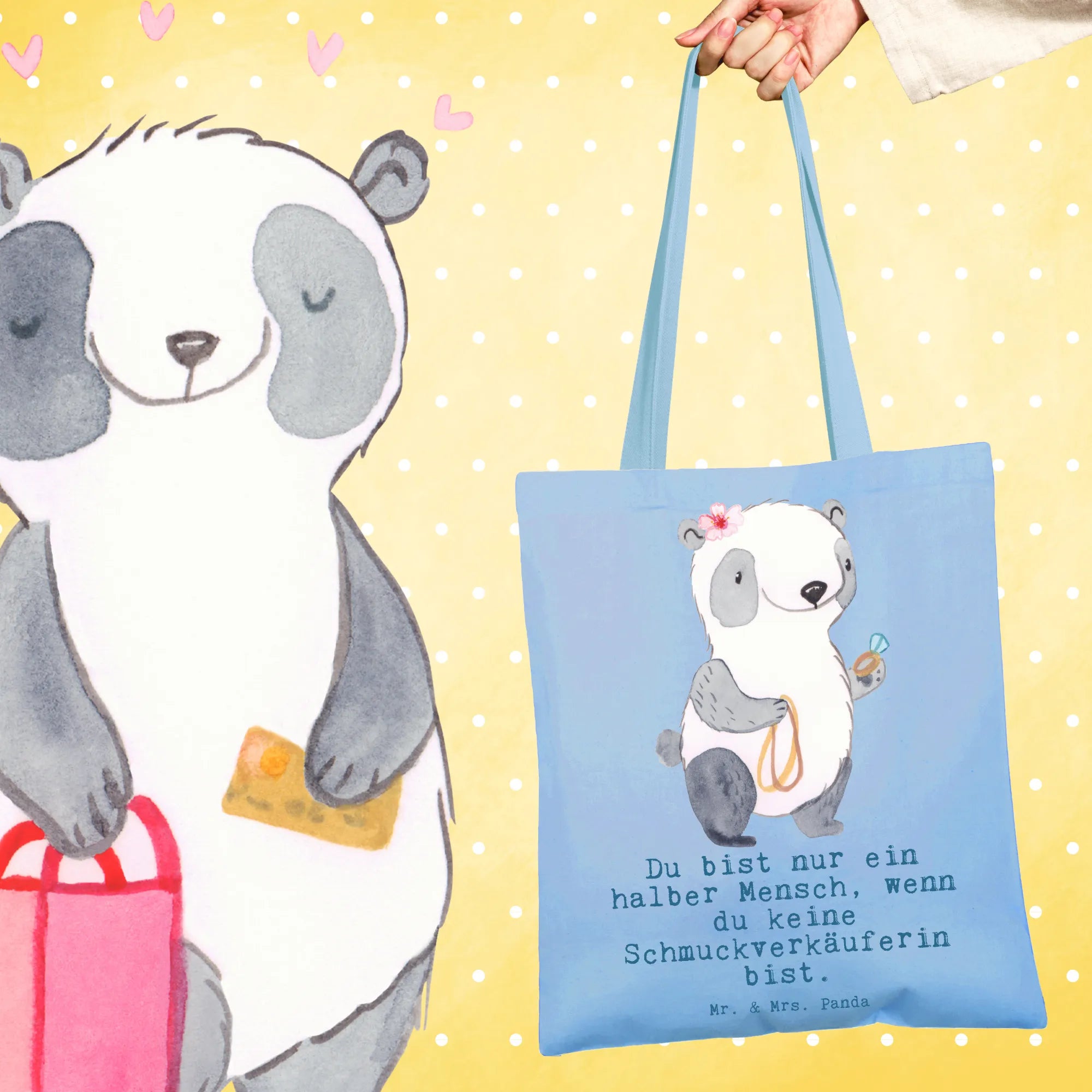 Mr. & Mrs. Panda - Schmuckverkäuferin mit Herz – süßes Panda Motiv zur Ausbildung, Geschenkidee für angehende Verkäuferinnen