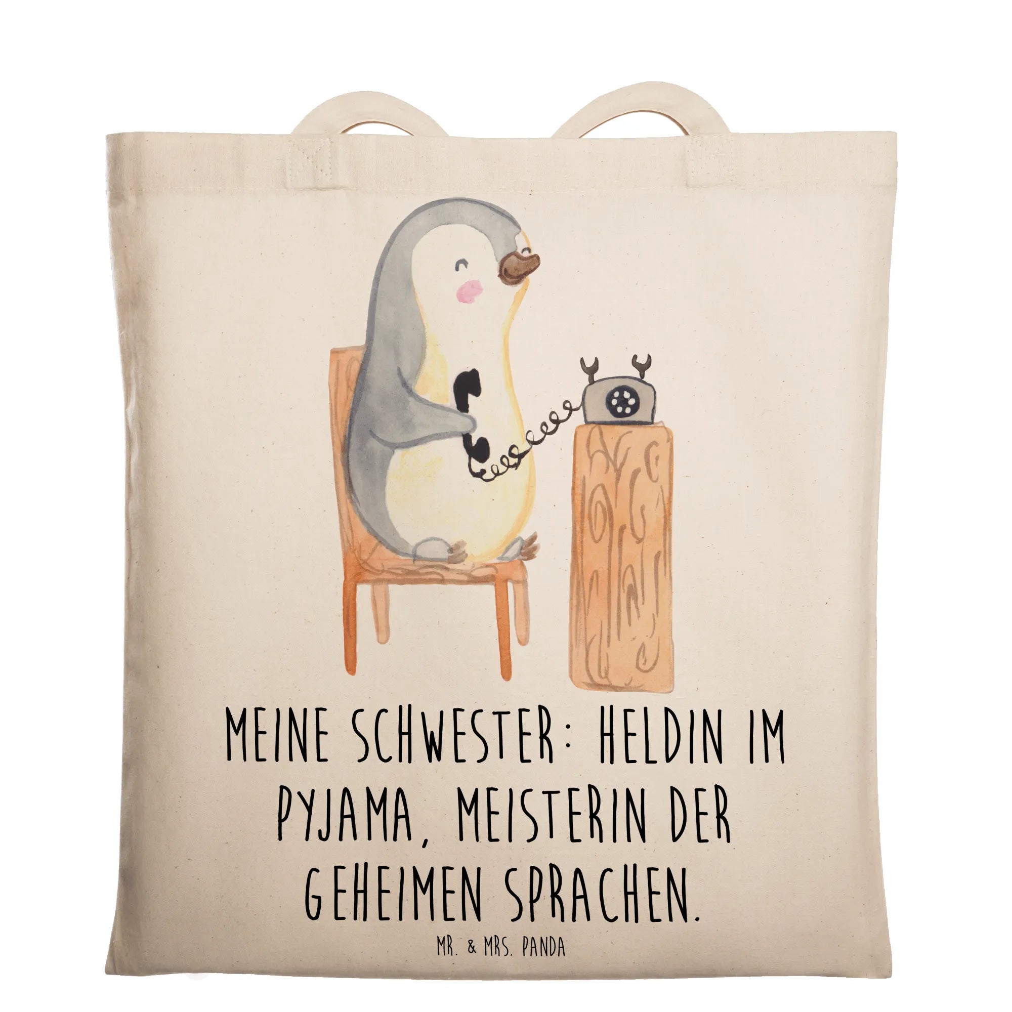 Suchst Du ein liebevolles Geschenk für Deine Schwester? Unsere Tragetasche "Schwester" von Mr. & Mrs. Panda ist genau das: praktisch, hübsch und voller Gefühl. Mit dem süßen Spruch „Meine Schwester: Heldin im Pyjama, Meisterin der geheimen Sprachen.“ feierst Du die besondere Verbindung zwischen Geschwistern – ob große Schwester, kleine Schwester oder Zwilling.