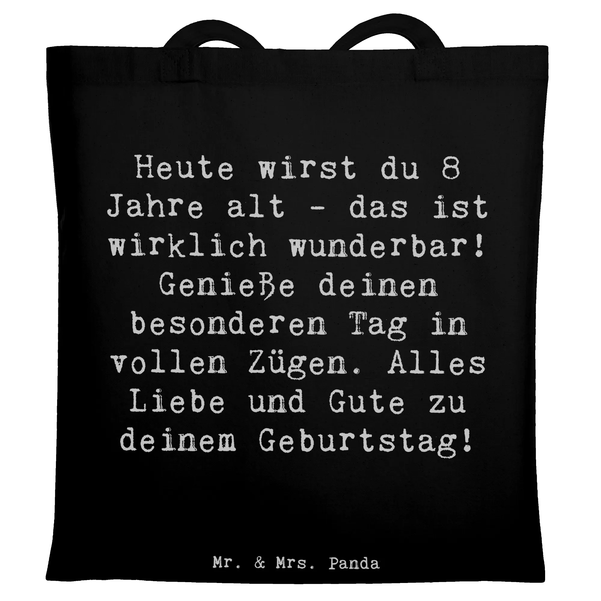 Tragetasche Spruch 8. Geburtstag Feier – Mr. & Mrs. Panda