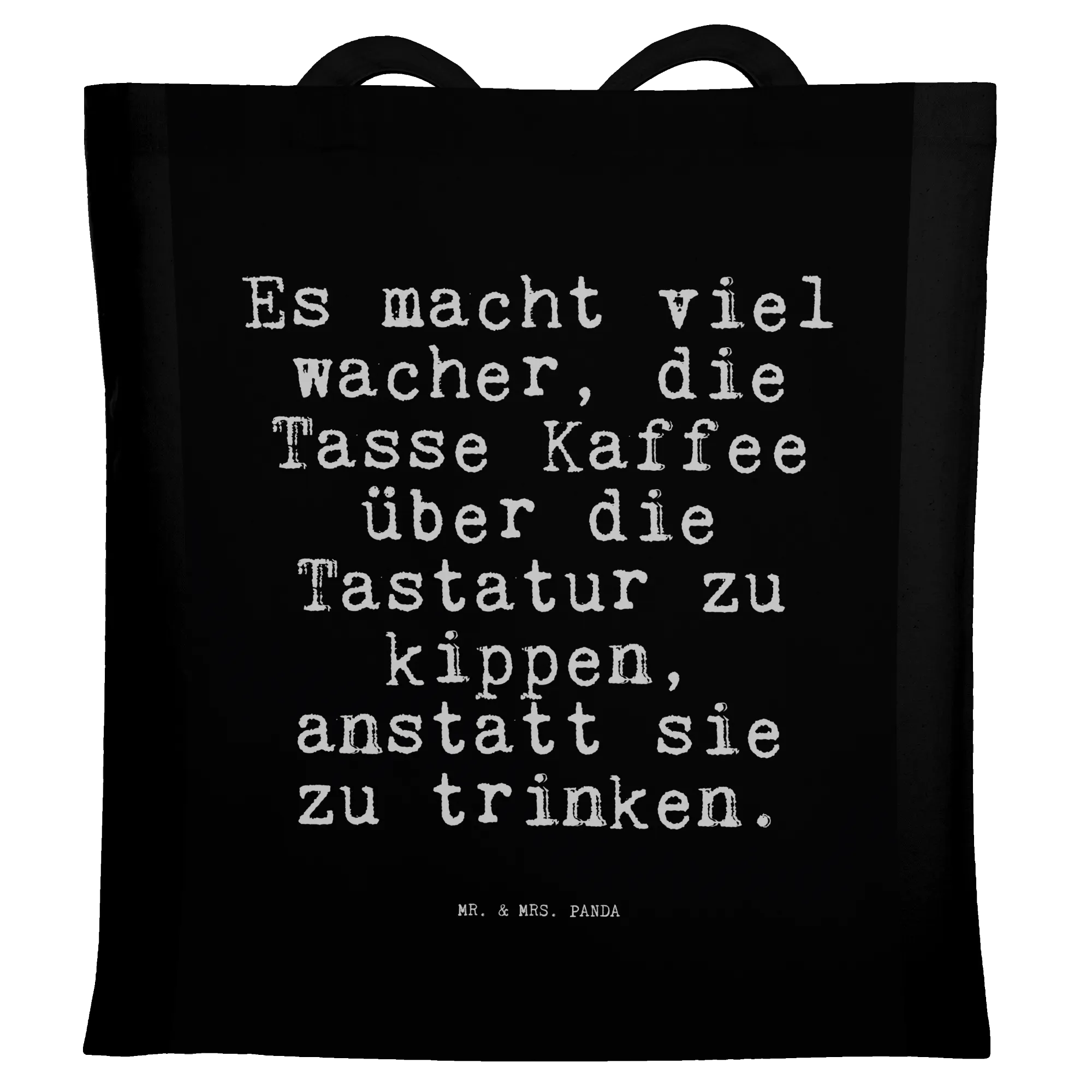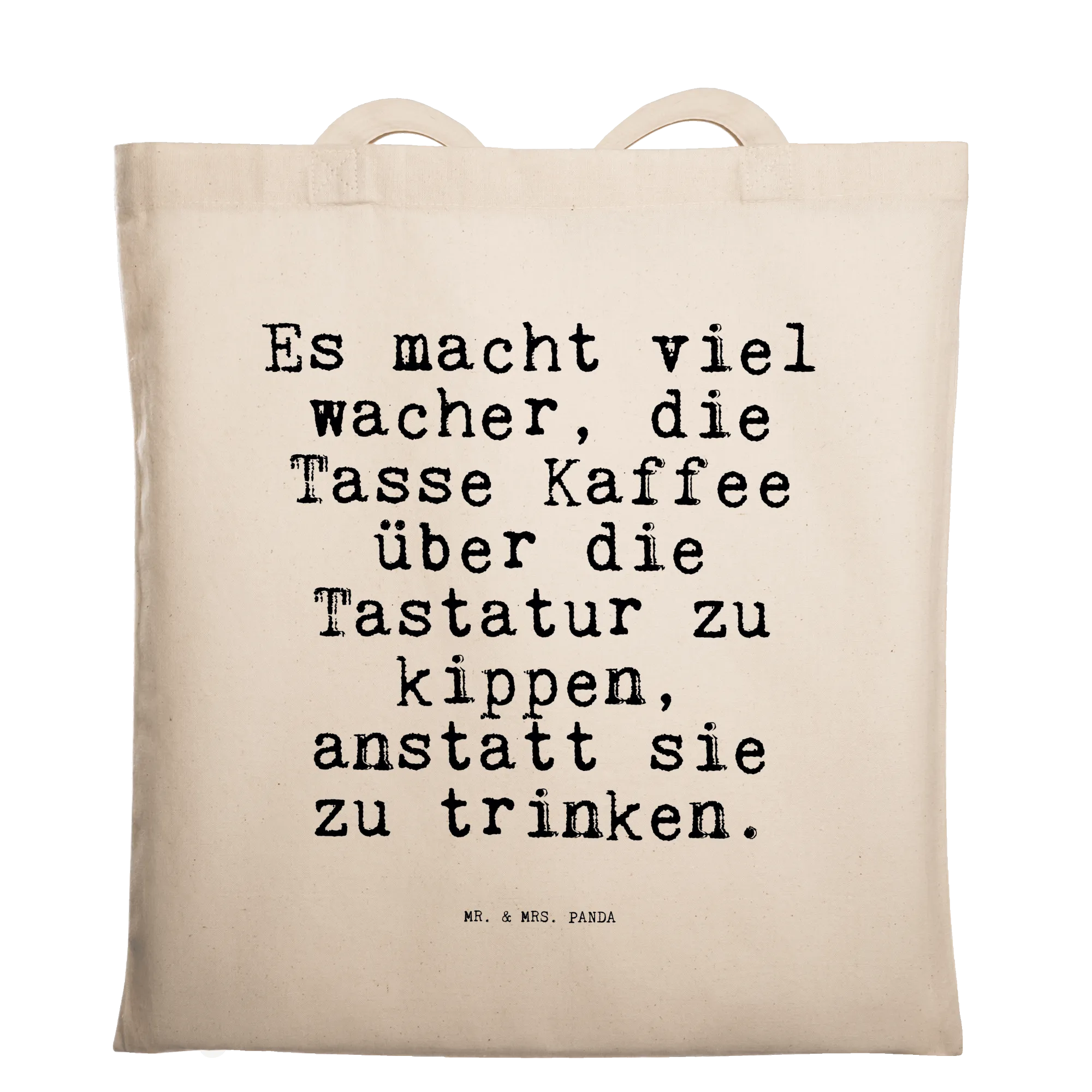 Tragetasche Sprüche und Zitate Es macht viel wacher, die Tasse Kaffee über die Tastatur zu kippen, anstatt sie zu trinken. - Transparent