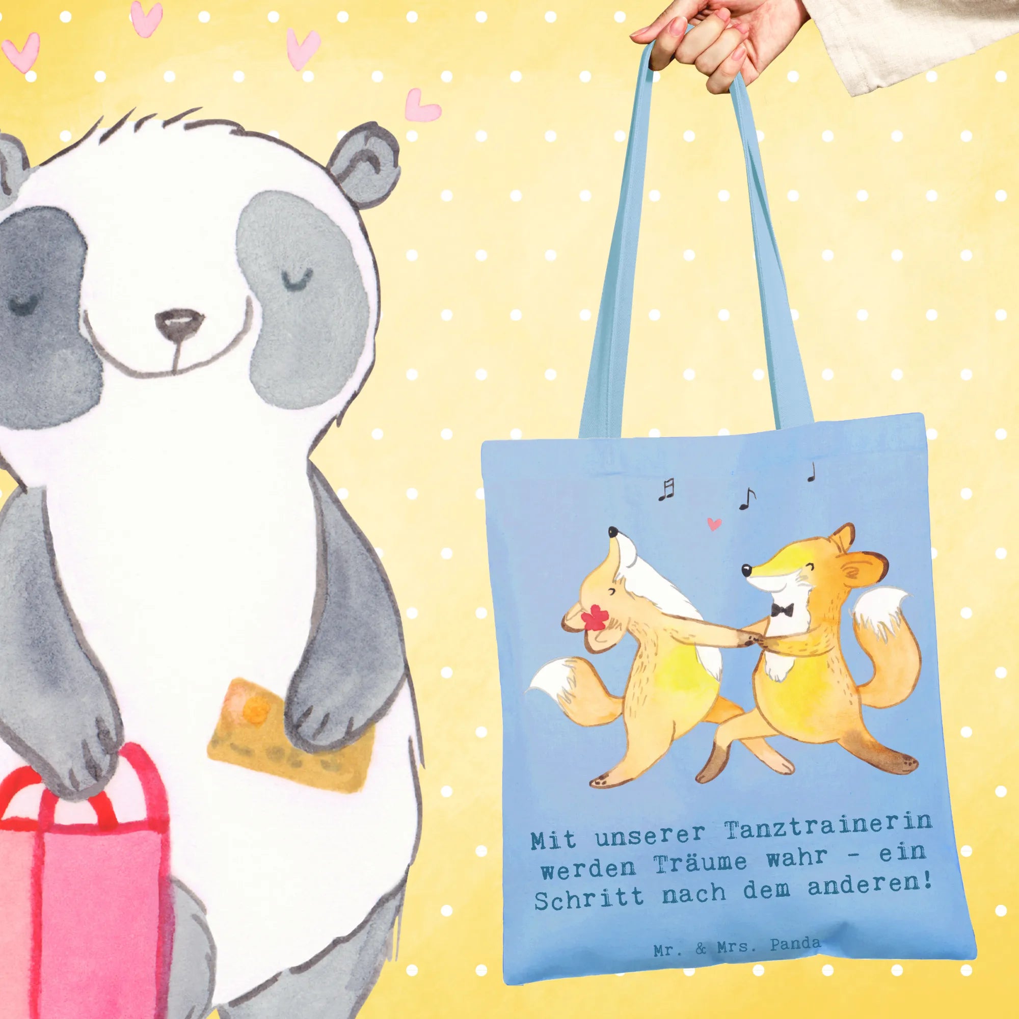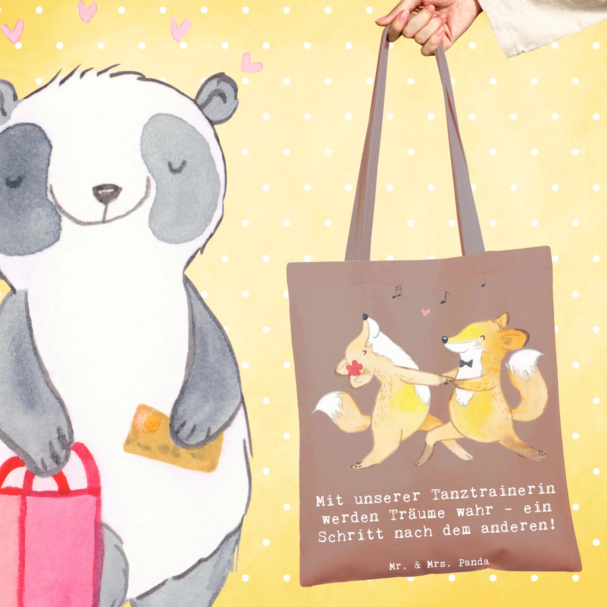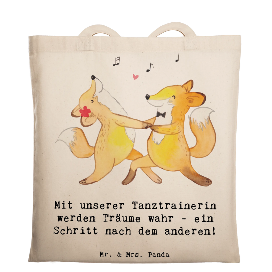 Die perfekte Tragetasche für deine Tanztrainerin 🎀 – Unsere Mr. & Mrs. Panda Tragetasche „Tanzen Trainerin“ verbindet süßes Design mit praktischem Alltagseinsatz. Der liebevolle Spruch „Mit unserer Tanztrainerin werden Träume wahr - ein Schritt nach dem anderen!“ macht diese Einkaufstasche zum idealen Geschenk für Abschied, Dankeschön oder Anerkennung.