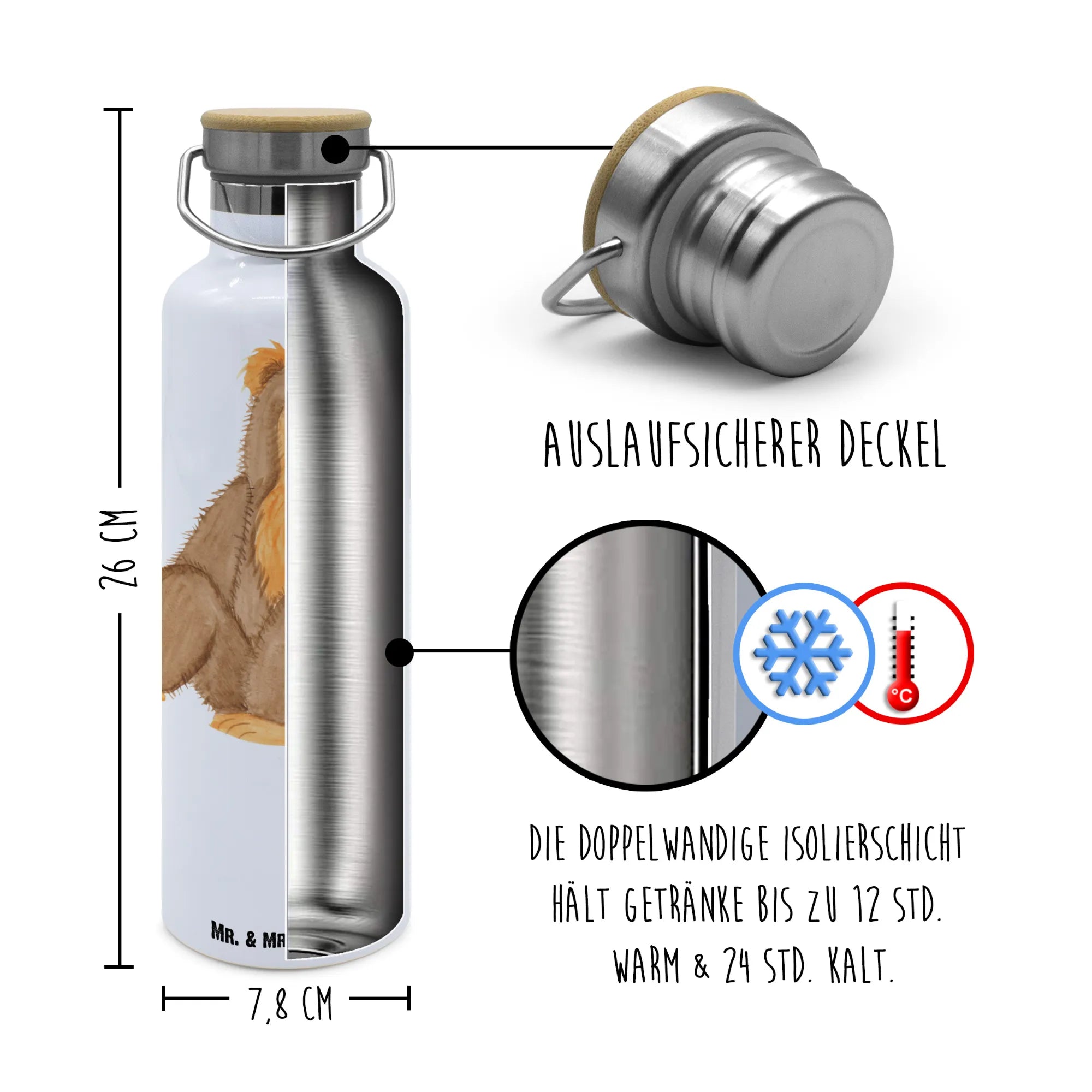 Hol dir die stylische Trinkflasche von Mr. & Mrs. Panda! Sie überzeugt nicht nur durch ihre schöne Optik, sondern auch durch Funktionalität. Mit 750 ml Füllvolumen ist sie ausreichend für all deine Durstlöscher. Der doppelwandige Edelstahl sorgt dafür, dass deine Getränke perfekt temperiert bleiben, egal ob heiß oder kalt. Mit einer Höhe von 255 mm und einem Durchmesser von 78 mm passt sie in fast jeden Becherhalter. Ihr robuster Bambusdeckel rundet das Design ab. Egal, ob du in die Berge gehst, ins Büro oder in die Schule, diese Flasche ist ein treuer Begleiter. Die Drucke mit Sprüchen und den süßen Motiven von Mr. & Mrs. Panda machen jeden Schluck zu einem kleinen Erlebnis. Bitte denke daran, dass sie nicht spülmaschinenfest ist – am besten mit der Hand reinigen!