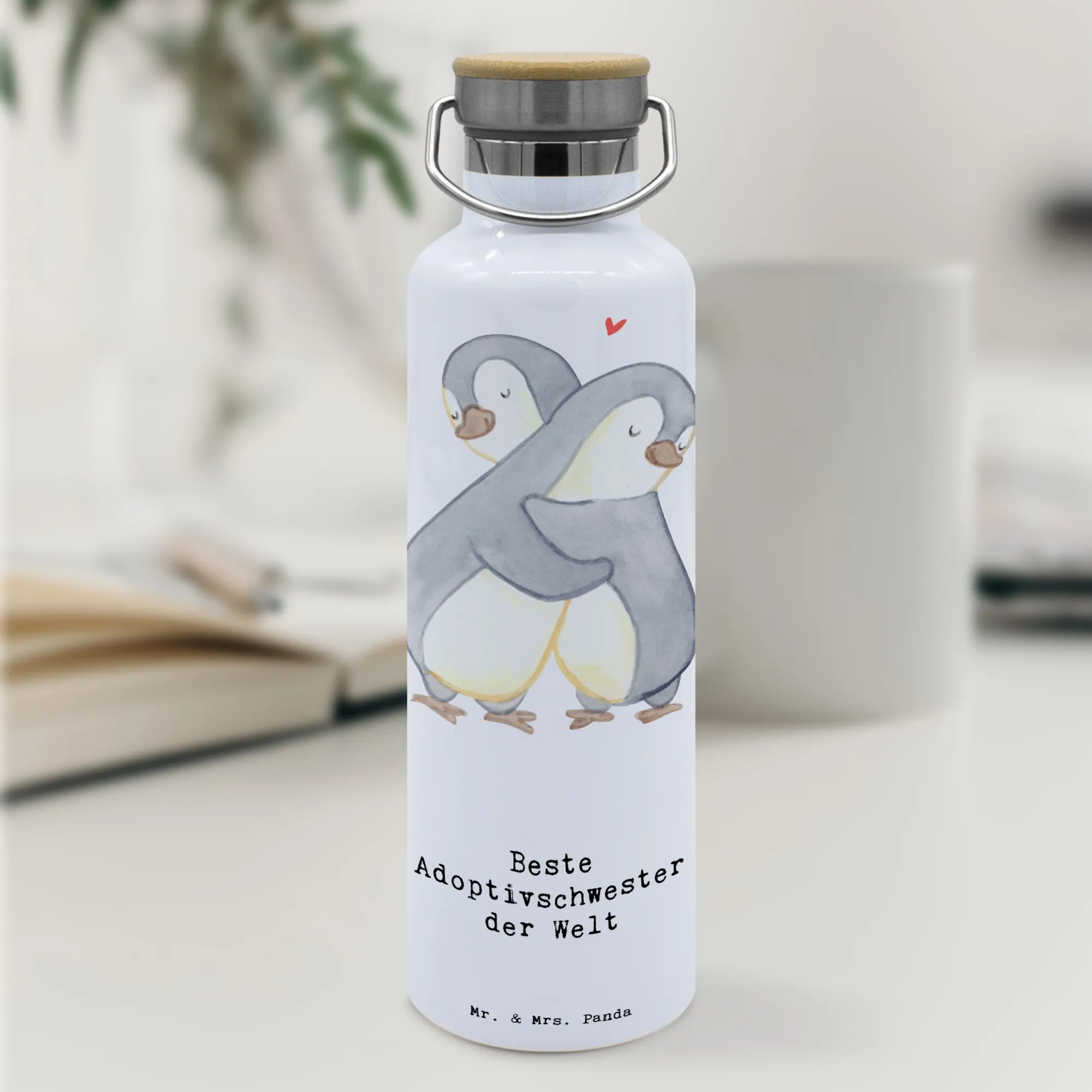 Trinkflasche Pinguin Beste Adoptivschwester der Welt
