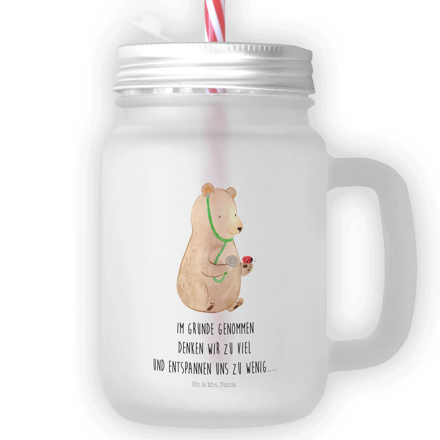 Trinkglas Mason Jar Bär Arzt - mit Spruch