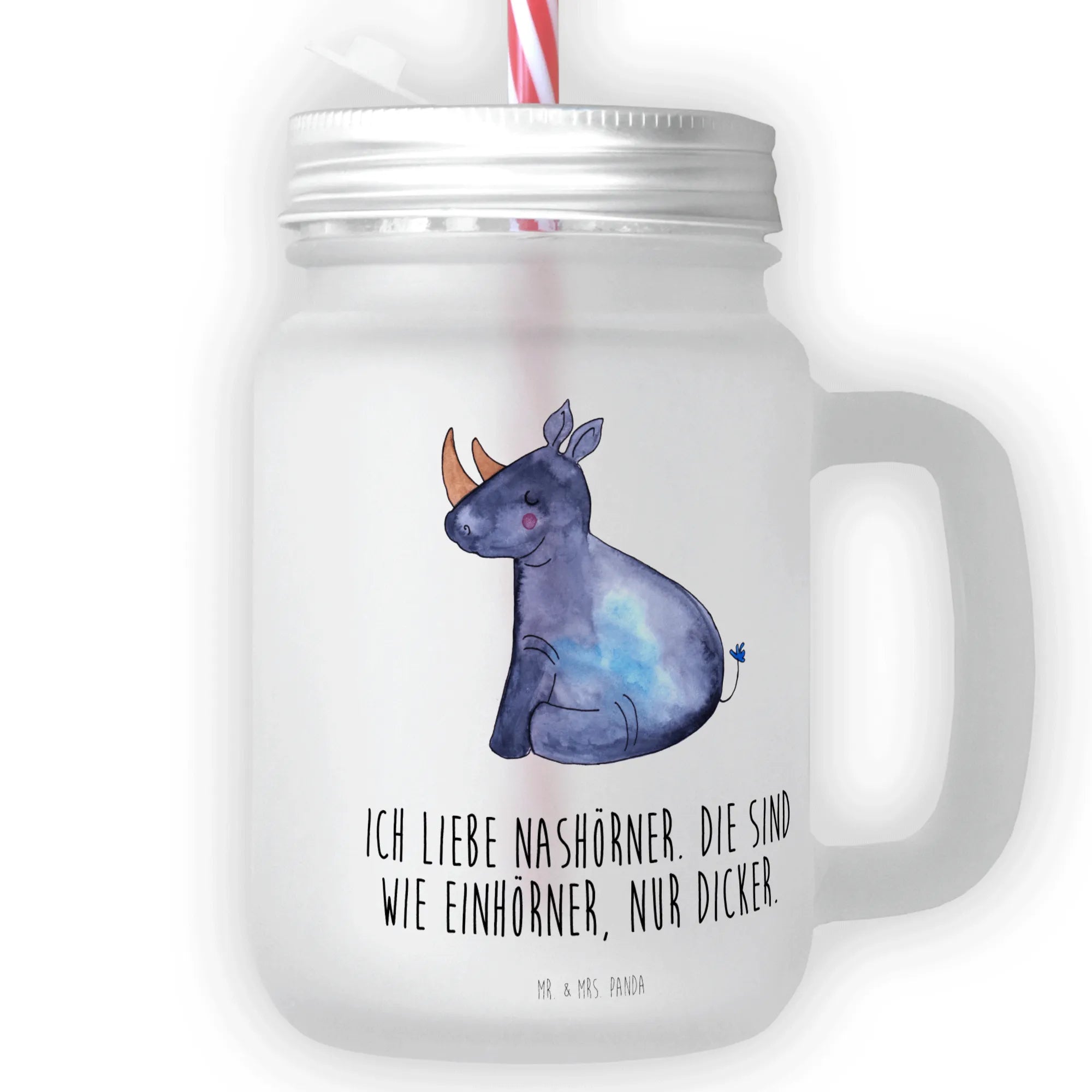 Das robuste Trinkglas mit Henkel und Schraubdeckel ist nicht nur ein echter Hingucker, sondern schützt auch deine Getränke vor Insekten und Schmutz. Ob Cocktails, erfrischende Limonaden oder leckere Eistees – dieses Glas ist vielseitig einsetzbar und macht jedes Getränk zum Erlebnis. Die matte Oberfläche unterstreicht das witzige Design des glücklichen Nashorns, welches das ideale Symbol für Lebensfreude und Humor ist.