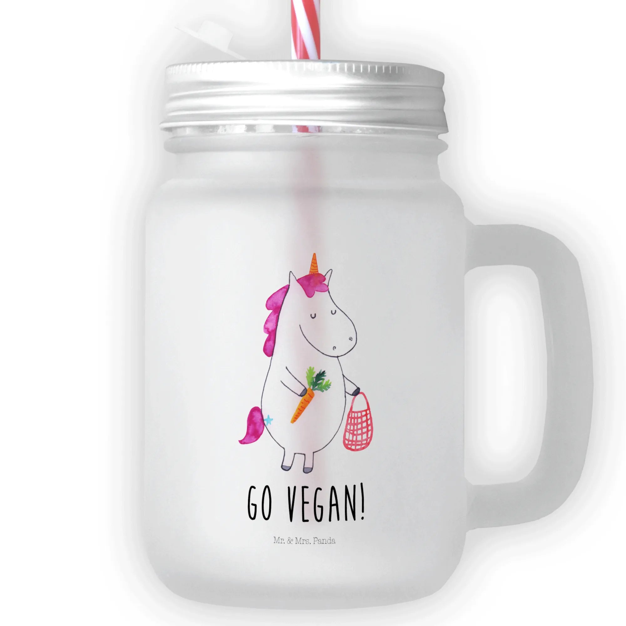 Entdecke das traumhaft schöne Trinkglas Mason Jar mit dem zauberhaften Einhorn Vegan Motiv aus der exklusiven Einhorn-Kollektion von Mr. & Mrs. Panda! Dieses edle und sommerliche Trinkglas ist nicht nur ein echter Hingucker, sondern auch der perfekte Begleiter für alle, die gesund leben und vegan genießen möchten. Egal, ob du es mit frischen Smoothies, hausgemachten Limonaden oder deinen geheimen Cocktailkreationen füllst – dieses Trinkglas wird deine Drinks zum Strahlen bringen!