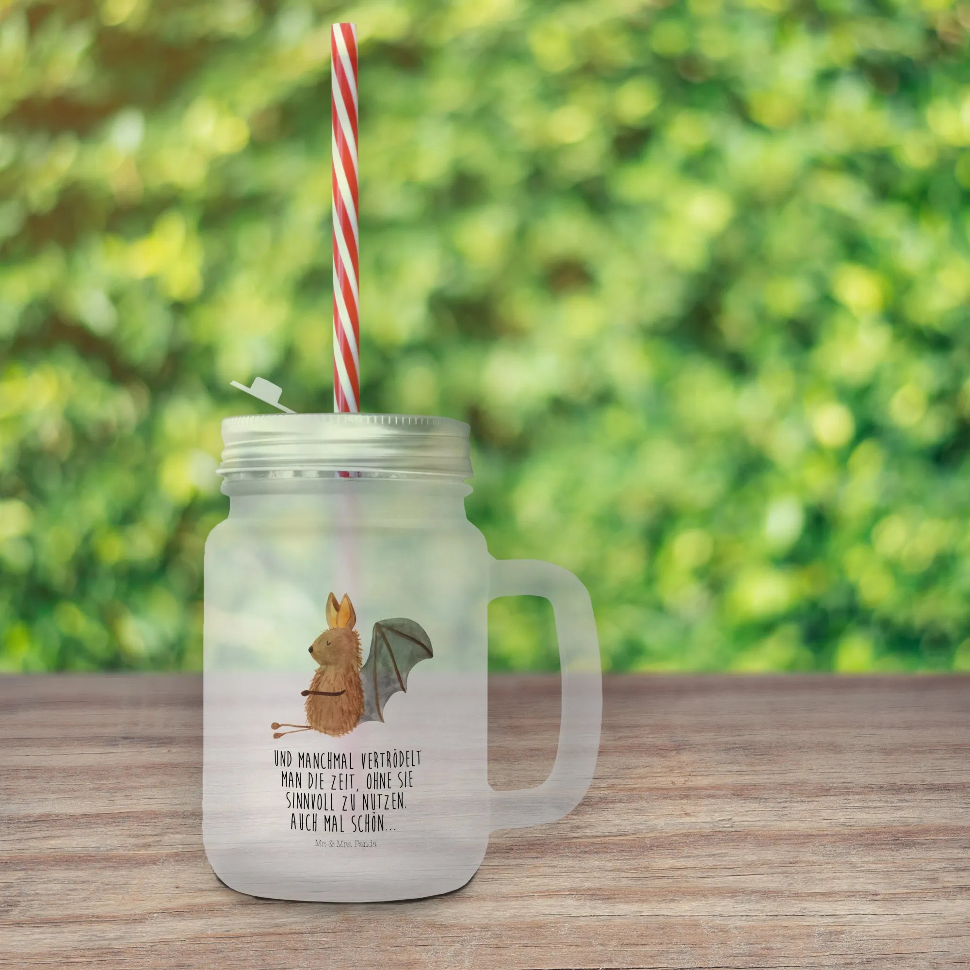 Das Trinkglas Mason Jar mit dem süßen Motiv einer sitzenden Fledermaus von Mr. & Mrs. Panda ist das perfekte Geschenk für echte Tierliebhaber und alle, die Freude an originellen, liebevoll gestalteten Produkten haben. Ob für eine Sommerparty, als coole Deko für den Garten oder einfach für den Genuss von erfrischenden Getränken zu Hause – dieses Glas ist ein echter Hingucker.