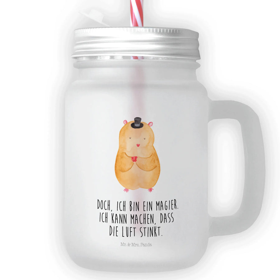 Das Trinkglas Mason Jar "Hamster mit Hut" von Mr. & Mrs. Panda ist das perfekte Geschenk für all diejenigen, die Spaß und gute Laune in ihren Alltag bringen möchten. Mit einem charmanten Motiv eines kleinen Hamsters, der stolz einen Zylinder trägt, zaubert dieses Glas jedem ein Lächeln ins Gesicht! Ideal für den Sommer, sei es bei einer Gartenparty, einem Picknick im Park oder beim gemütlichen Beisammensein mit Freunden.