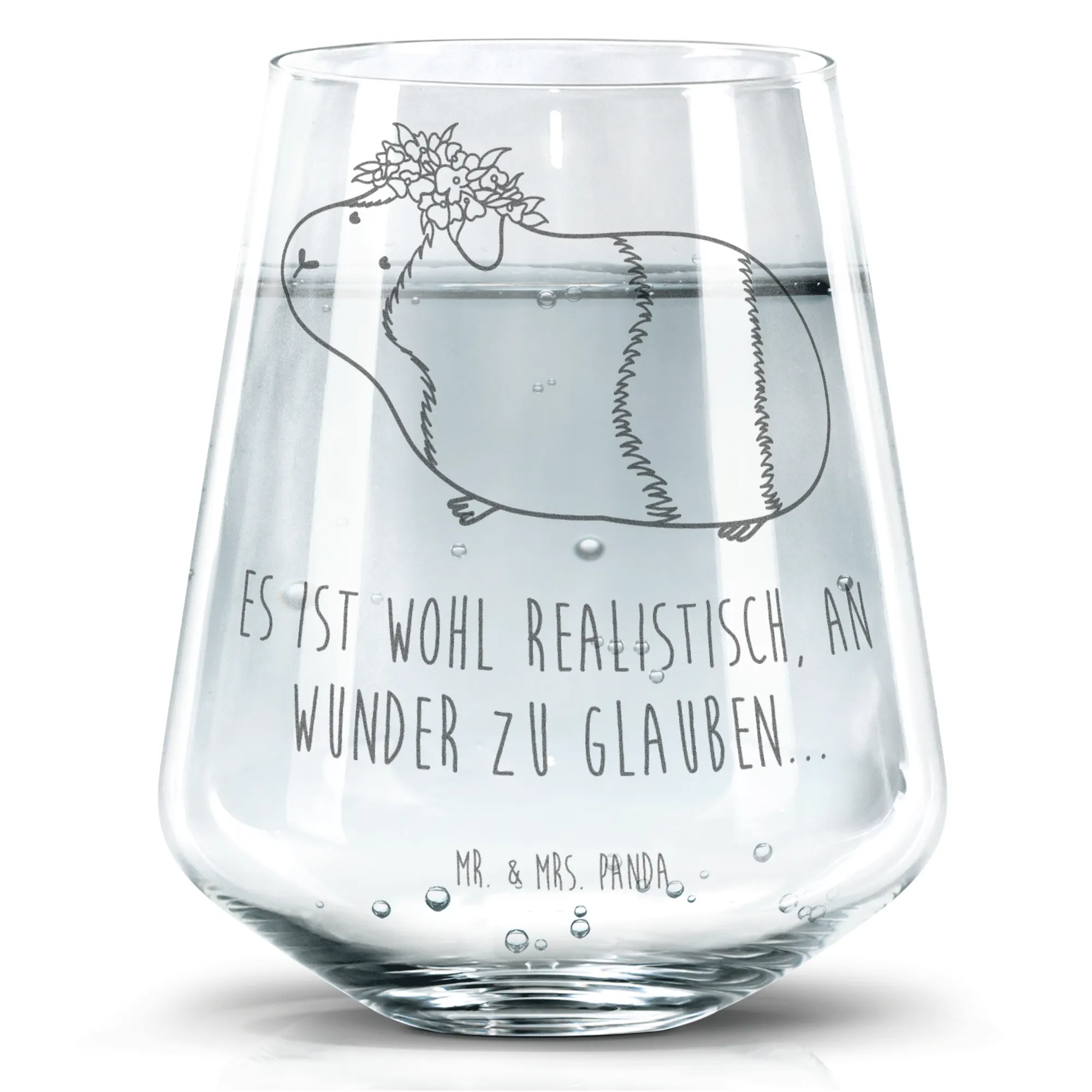 Das Meerschweinchen-Motiv bringt eine fröhliche Note in dein Zuhause. „Es ist wohl realistisch, an Wunder zu glauben…“ – dieser Spruch inspiriert dich im Alltag und erinnert dich daran, die kleinen Dinge zu schätzen. Jedes Glas ist mit einer hochwertigen Lasergravur versehen, die den tollen Matteffekt erzeugt.