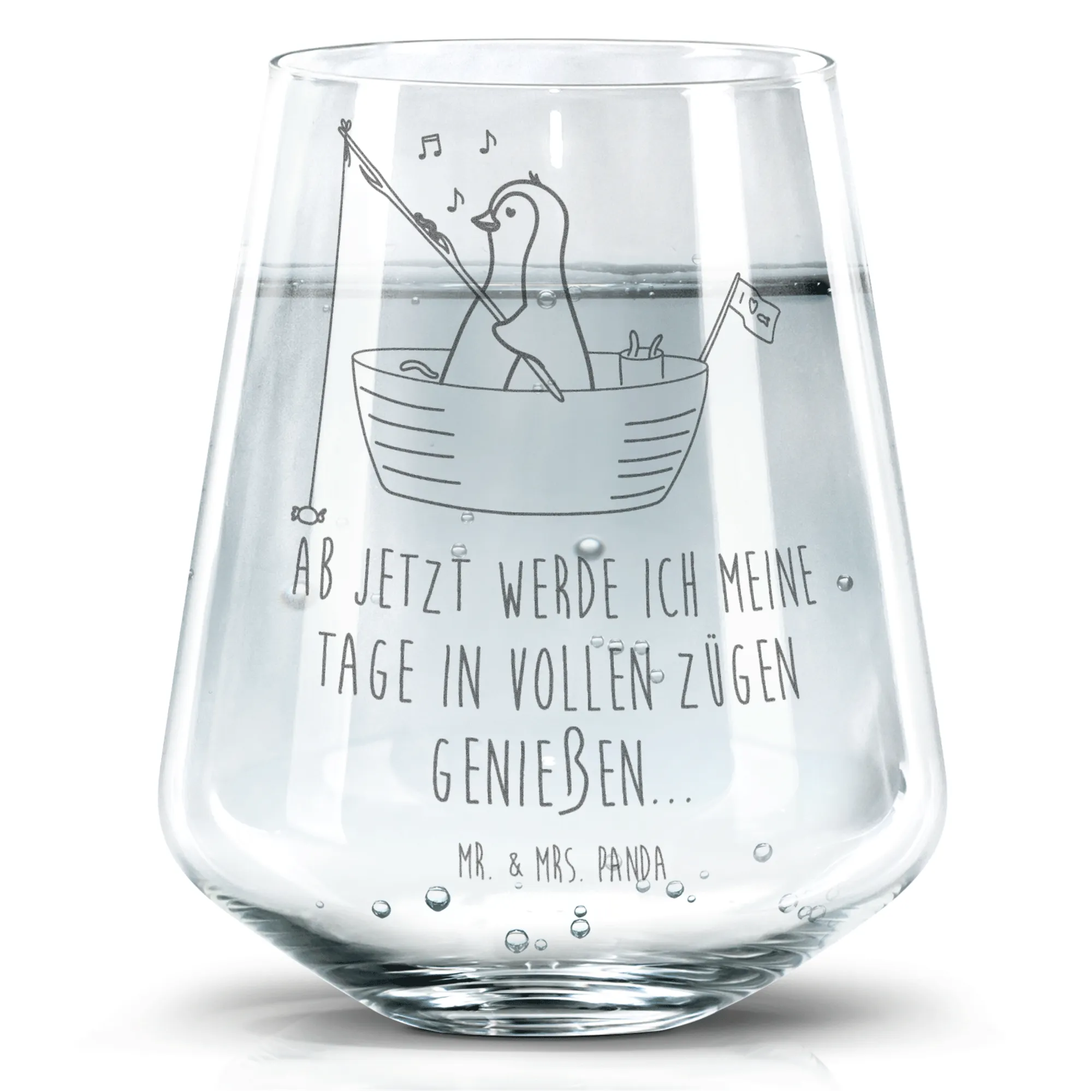 Entdecke das wundervolle Trinkglas Pinguin Angelboot aus der einzigartigen Pinguin-Kollektion von Mr. & Mrs. Panda! Dieses wunderschöne Trinkglas begeistert nicht nur mit seiner hochwertigen Verarbeitung, sondern auch mit einem ganz besonderen Motiv: einem niedlichen Pinguin, der auf einem kleinen Angelboot mit Bonbons am Haken unterwegs ist. Es zaubert ein Lächeln ins Gesicht und sorgt für gute Laune, ob beim Wassertrinken im Büro oder beim Entspannen zu Hause.