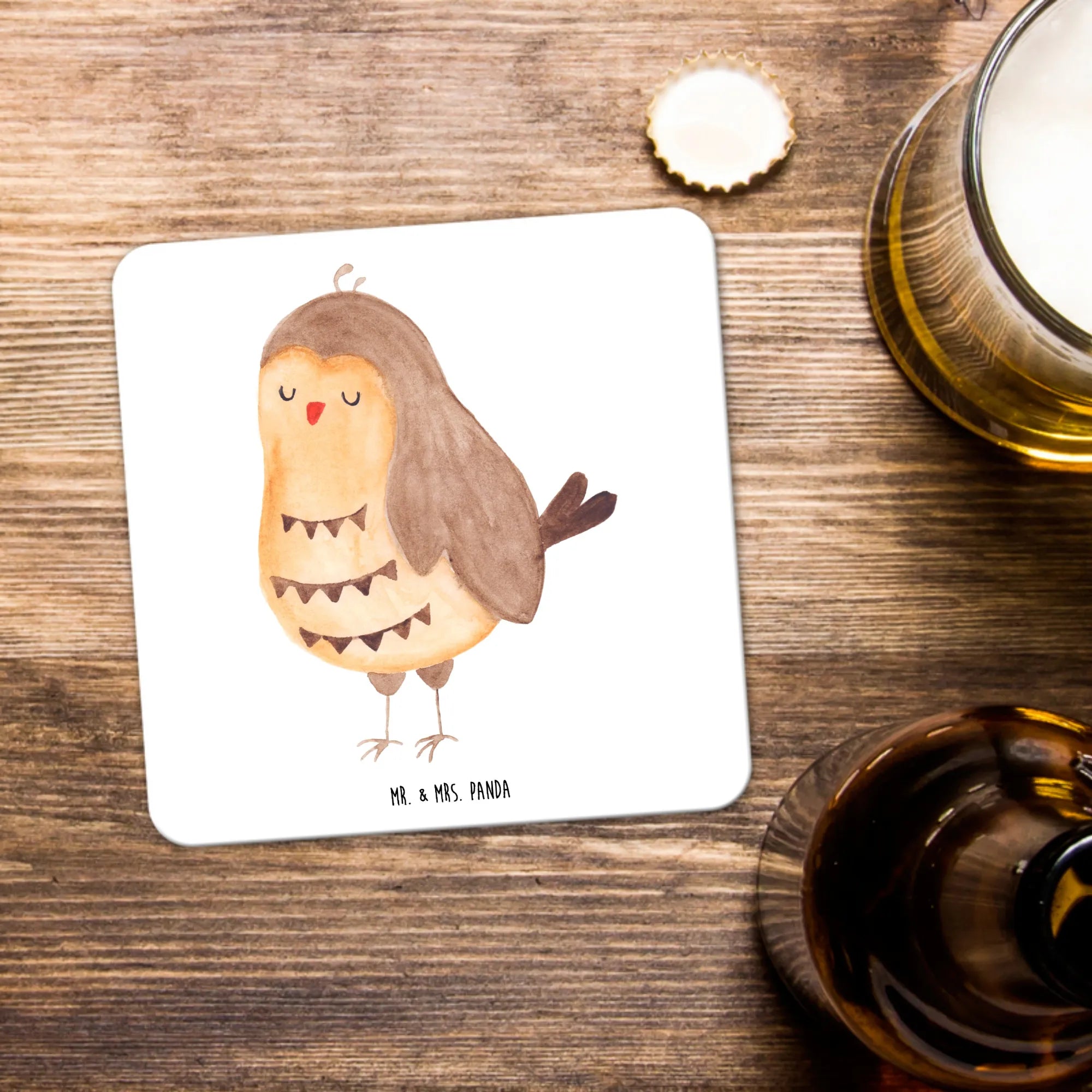 Untersetzer Set Eule Zufrieden - 15er Set - mit Spruch