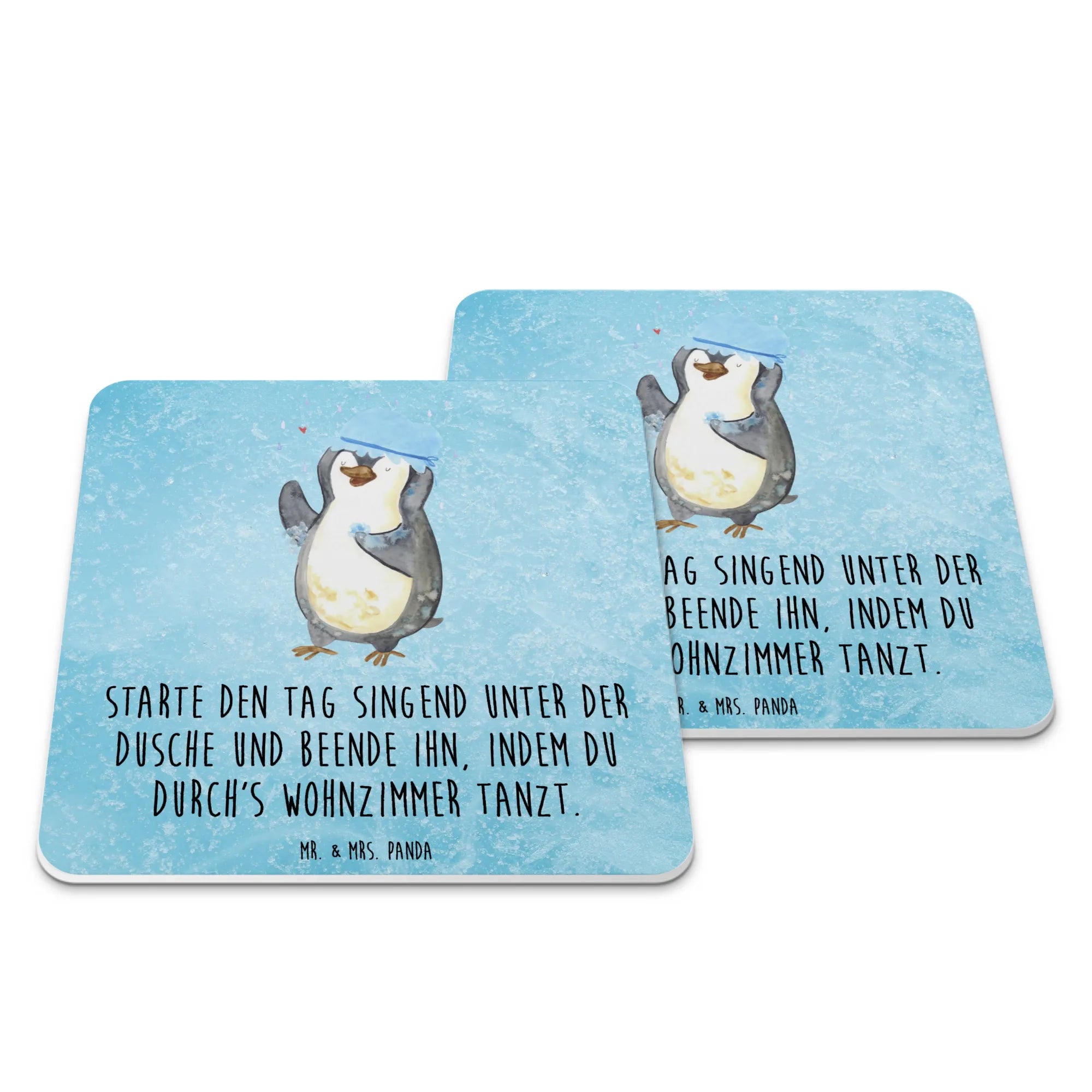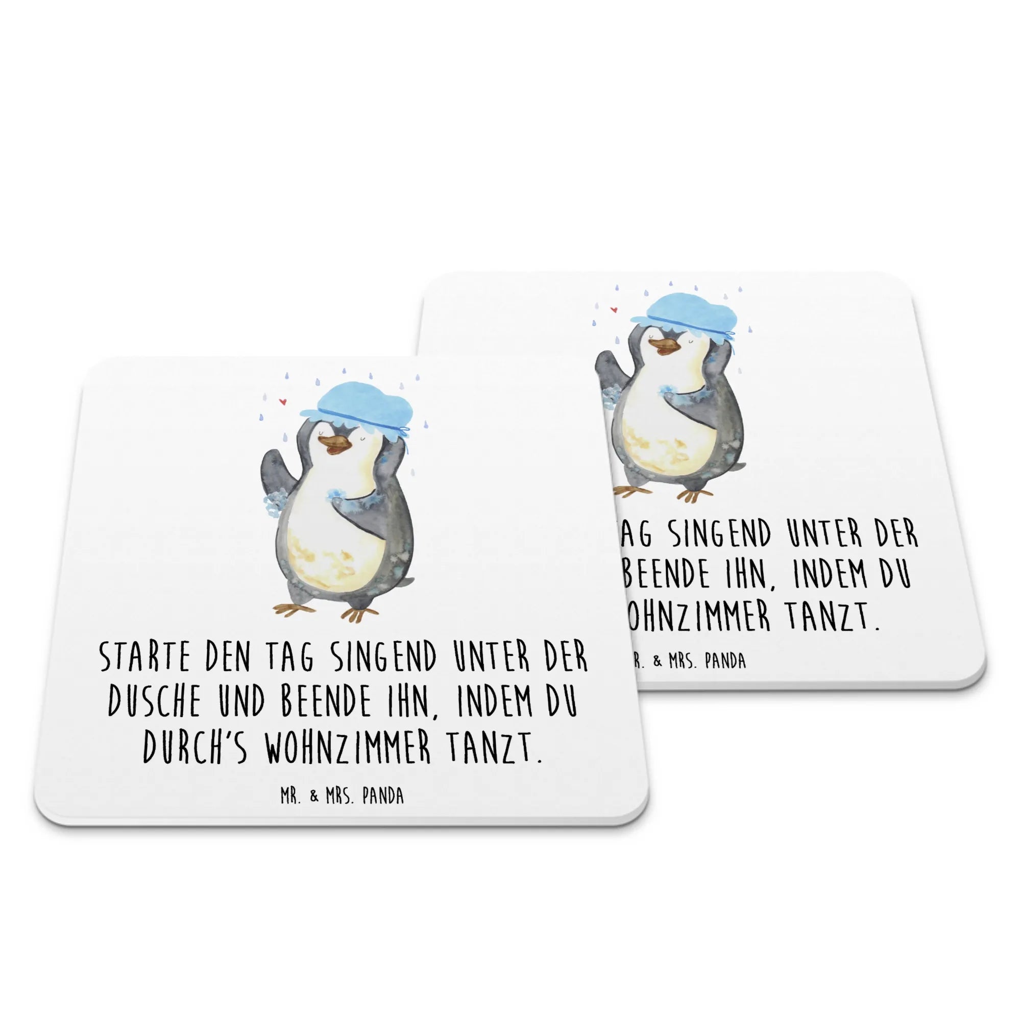 Untersetzer für Gläser Pinguin Duschen - 6er Set - mit Spruch - Weiß