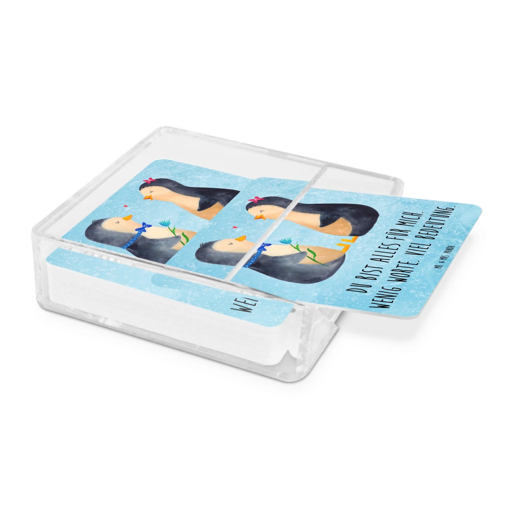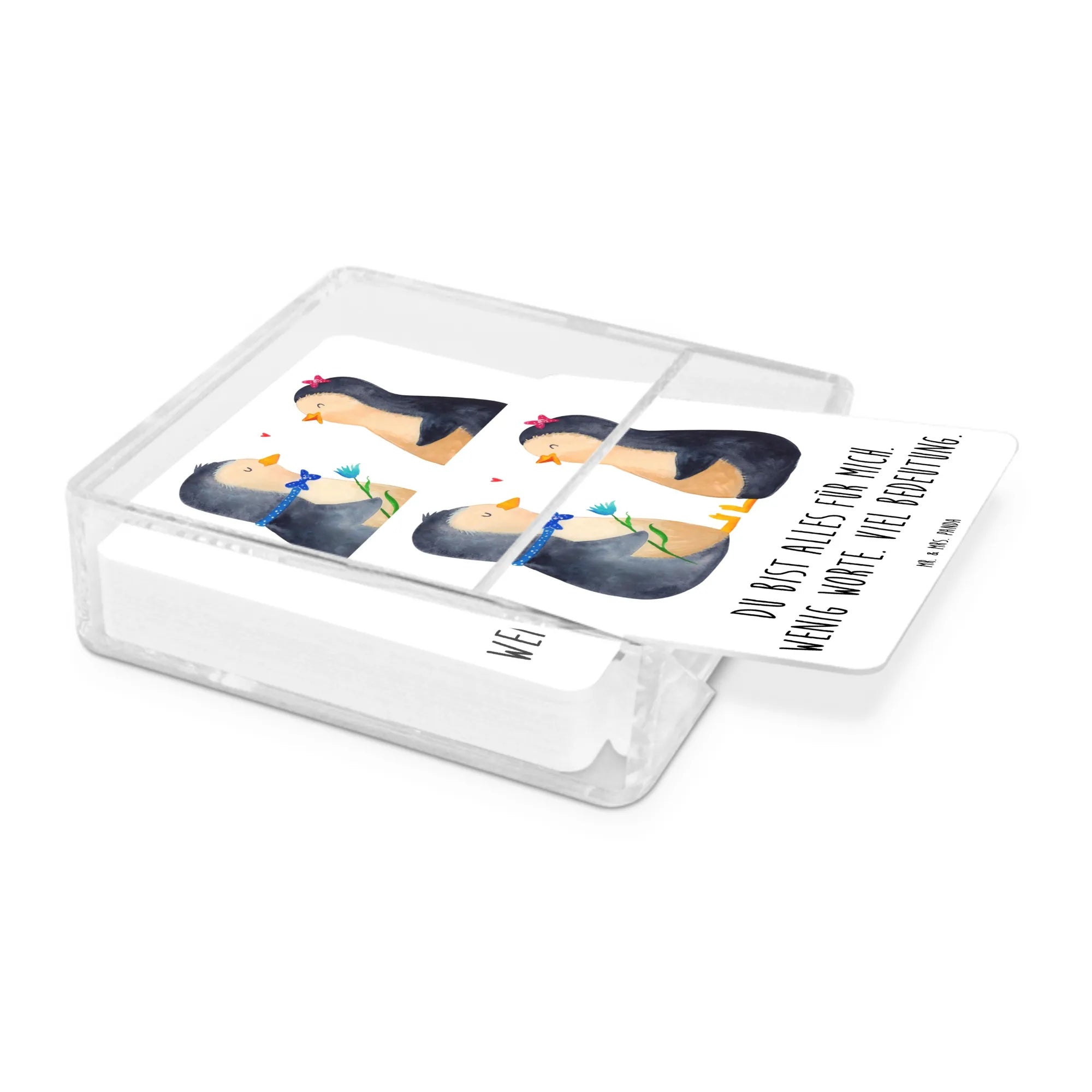 In der Welt der Pinguine, wo Liebe und Verbundenheit durch zärtliche Gesten zum Ausdruck gebracht werden, offenbart dieses bezaubernde Pinguin Pärchen die Magie echter Gefühle. Ihr Blickkontakt ist gefüllt mit Liebe, Respekt und einer tiefen Verbindung, die jenseits von Worten liegt. Sie erinnern uns daran, wie kostbar Liebesbeweise sind - egal, ob es sich um ein Liebesgeschenk, einen Jahrestag oder den schönsten Tag im Leben handelt, die Hochzeit. Das Motiv „Du bist alles für mich“ von Mr. & Mrs. Panda ermutigt uns, unsere große Liebe nicht nur zu finden, sondern sie jeden Tag aufs Neue zu feiern.
