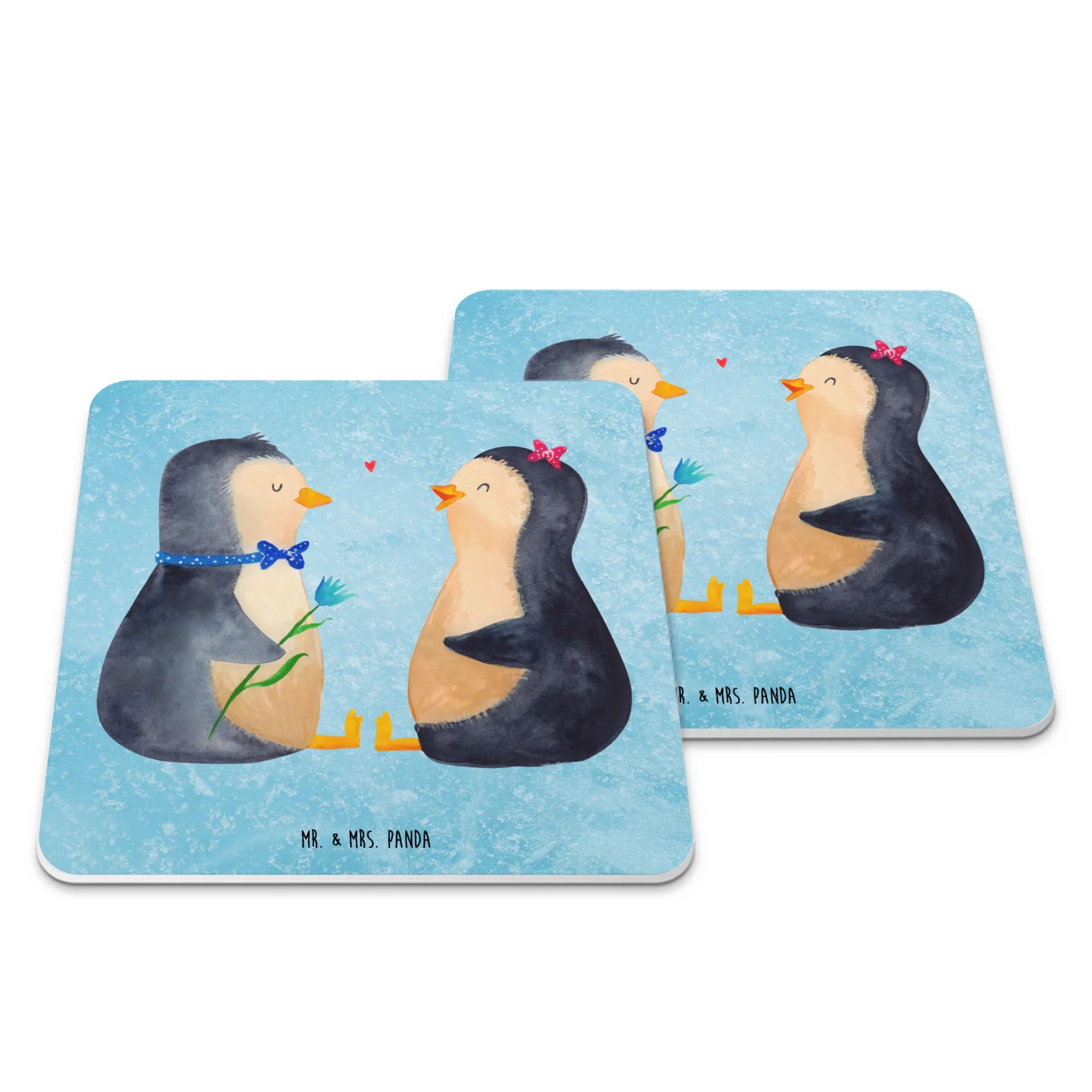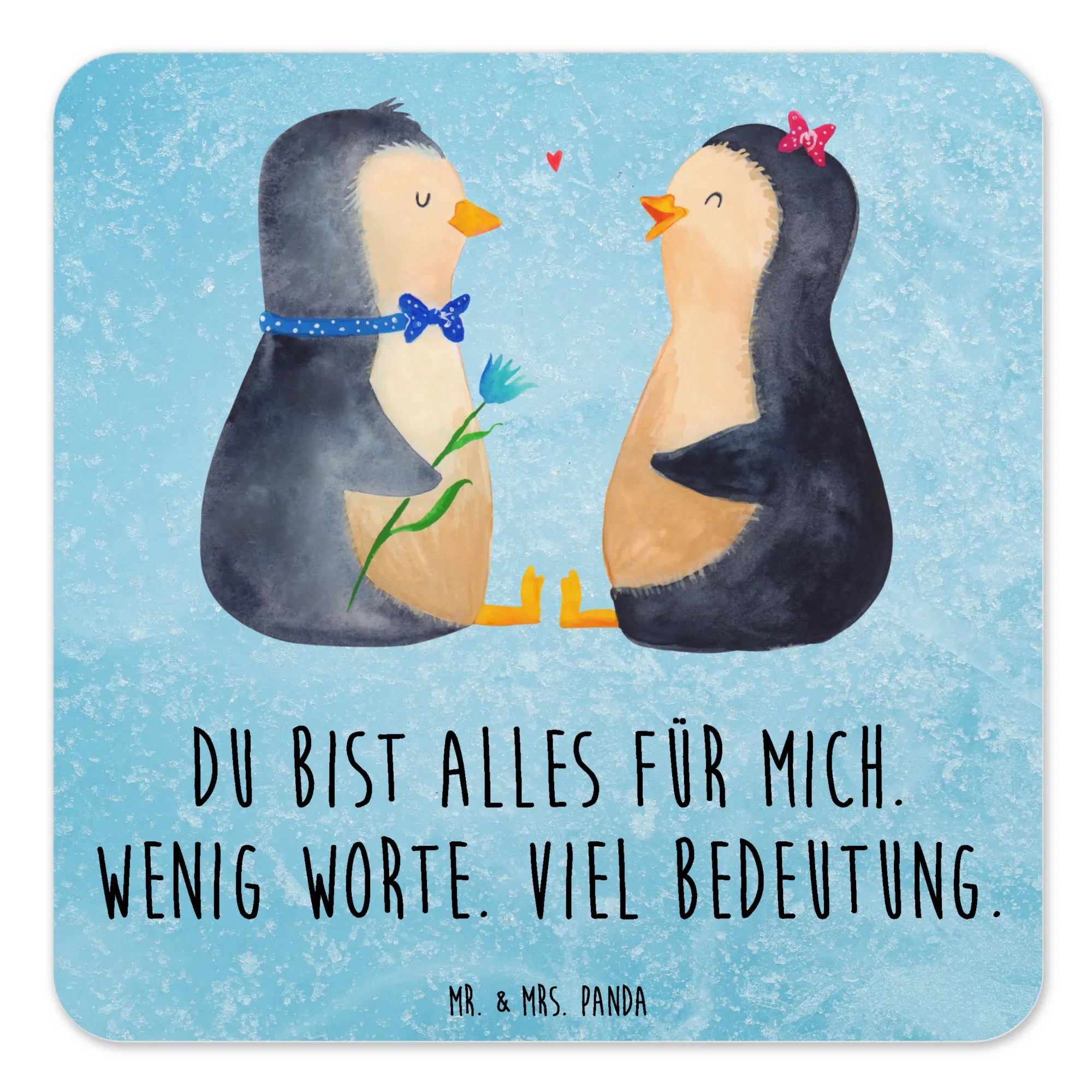 Untersetzer Set Pinguin Pärchen - 15er Set - mit Spruch - Eisblau