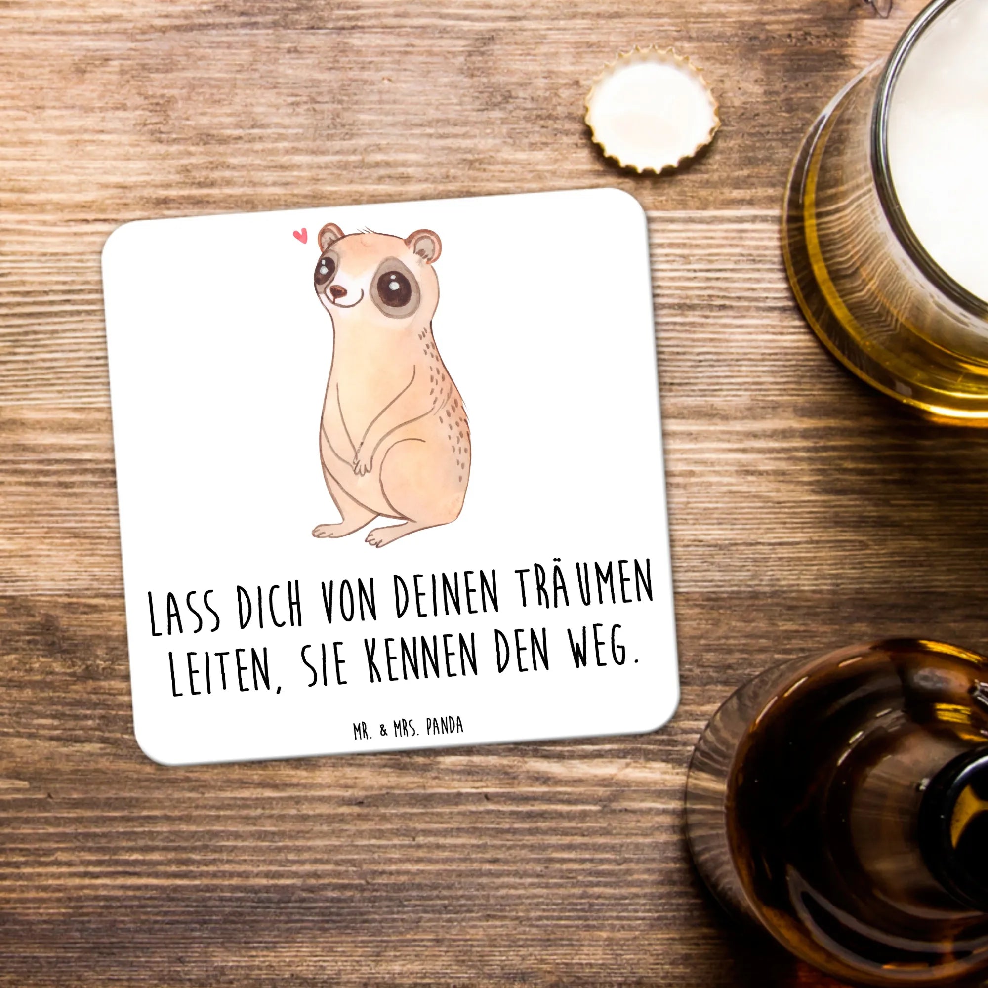 Vor dir sitzt ein Plumplori, dessen Blick so rein und unschuldig ist, dass er sofort dein Herz erwärmt. Auf diesem wundervollen Motiv von Mr. & Mrs. Panda verkörpert er die reine Freude und das Glück, sich von seinen Träumen leiten zu lassen. 'Lass dich von deinen Träumen leiten, sie kennen den Weg' scheint er zu sagen, während er mit seinen großen Augen verträumt in die Ferne blickt. Dieser Spruch erinnert uns daran, immer den Dingen nachzujagen, die unser Herz erwärmen und uns wirklich glücklich machen. Der Plumplori bringt eine Botschaft der Hoffnung und der Inspiration, die uns daran erinnert, dass unsere Träume die Leuchtfeuer in unser aller Leben sind.