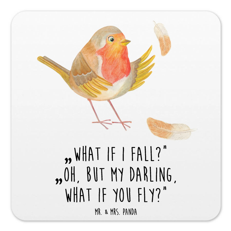 Motivations-Motiv Rotkehlchen mit dem Spruch 'What if I fall? Oh, but my darling, what if you fly?'