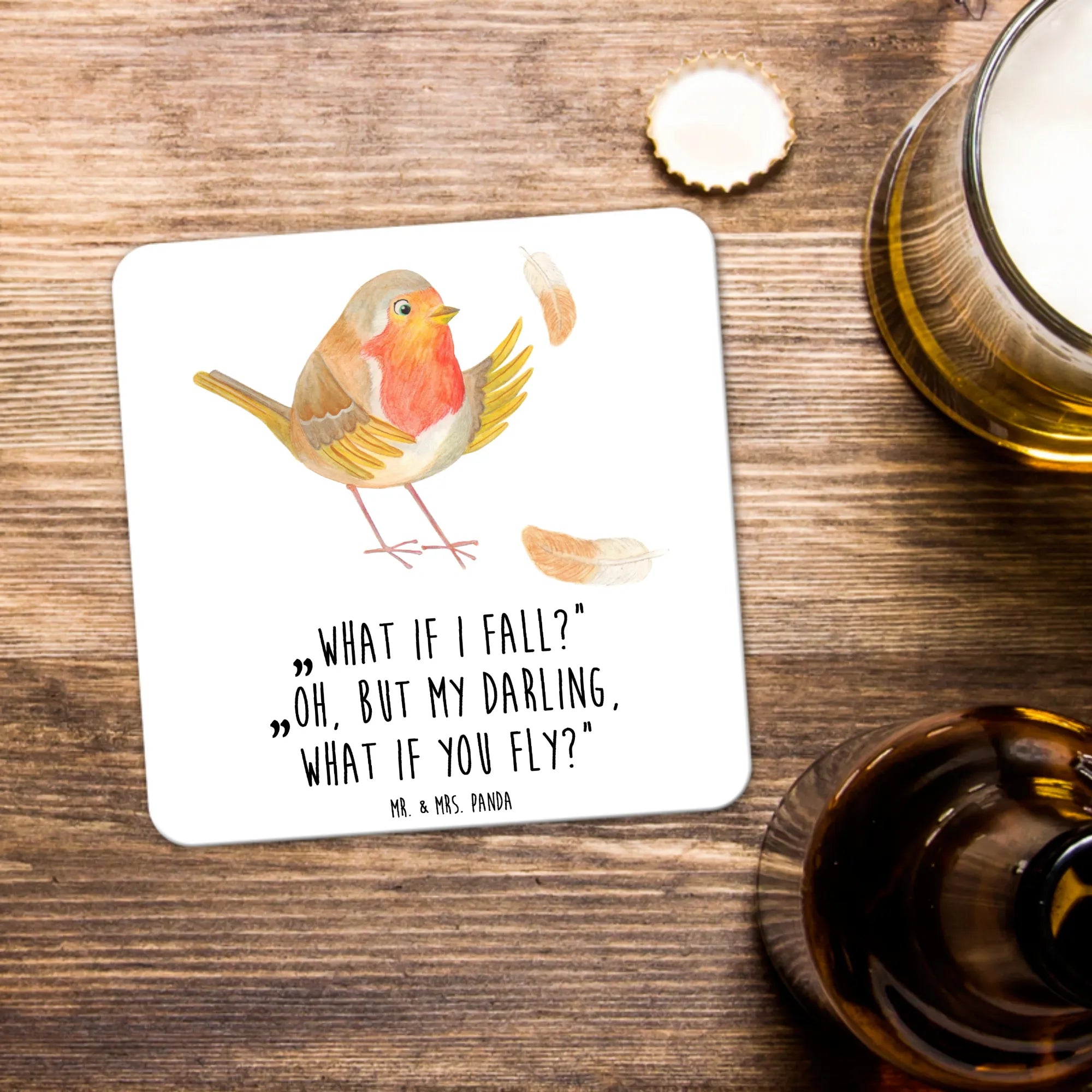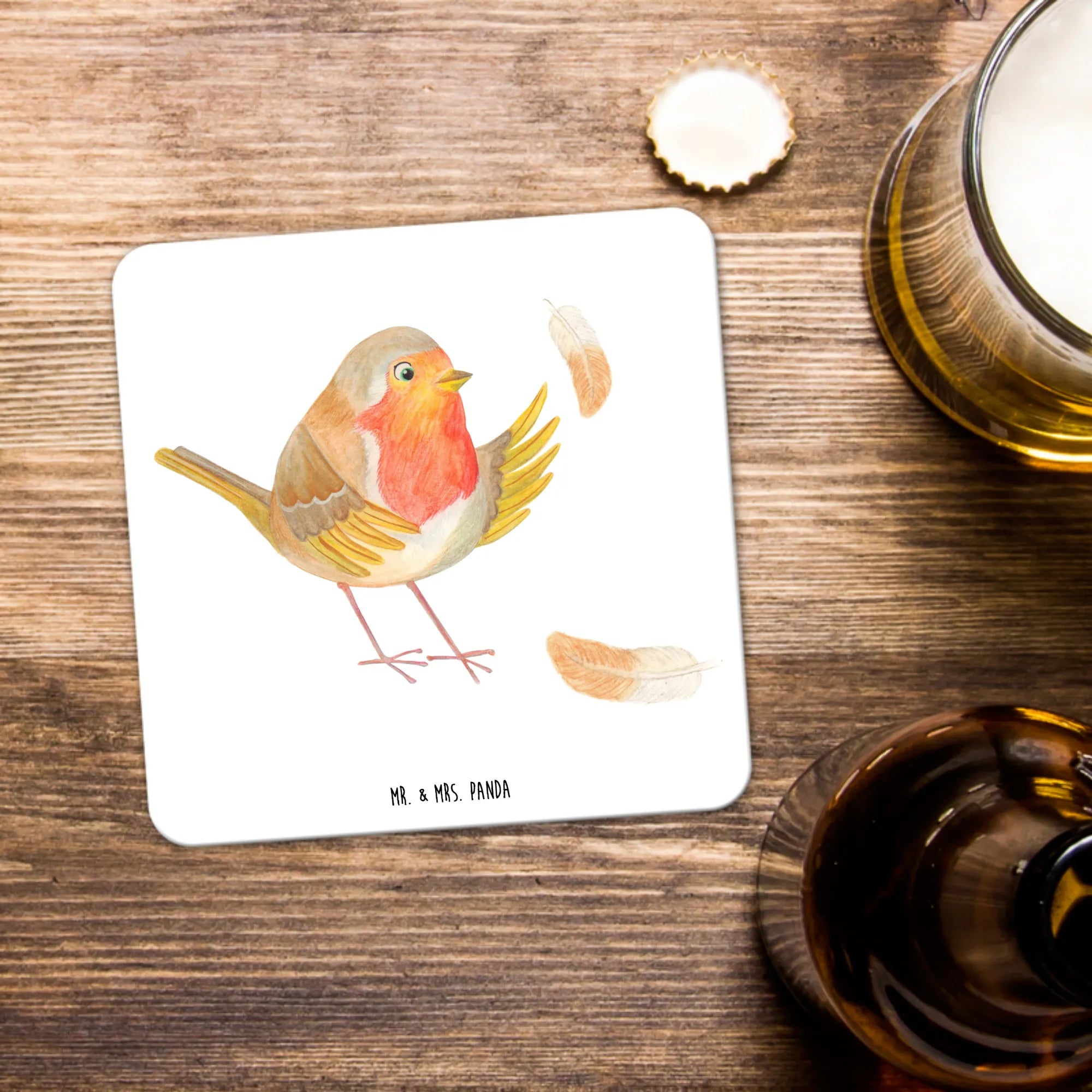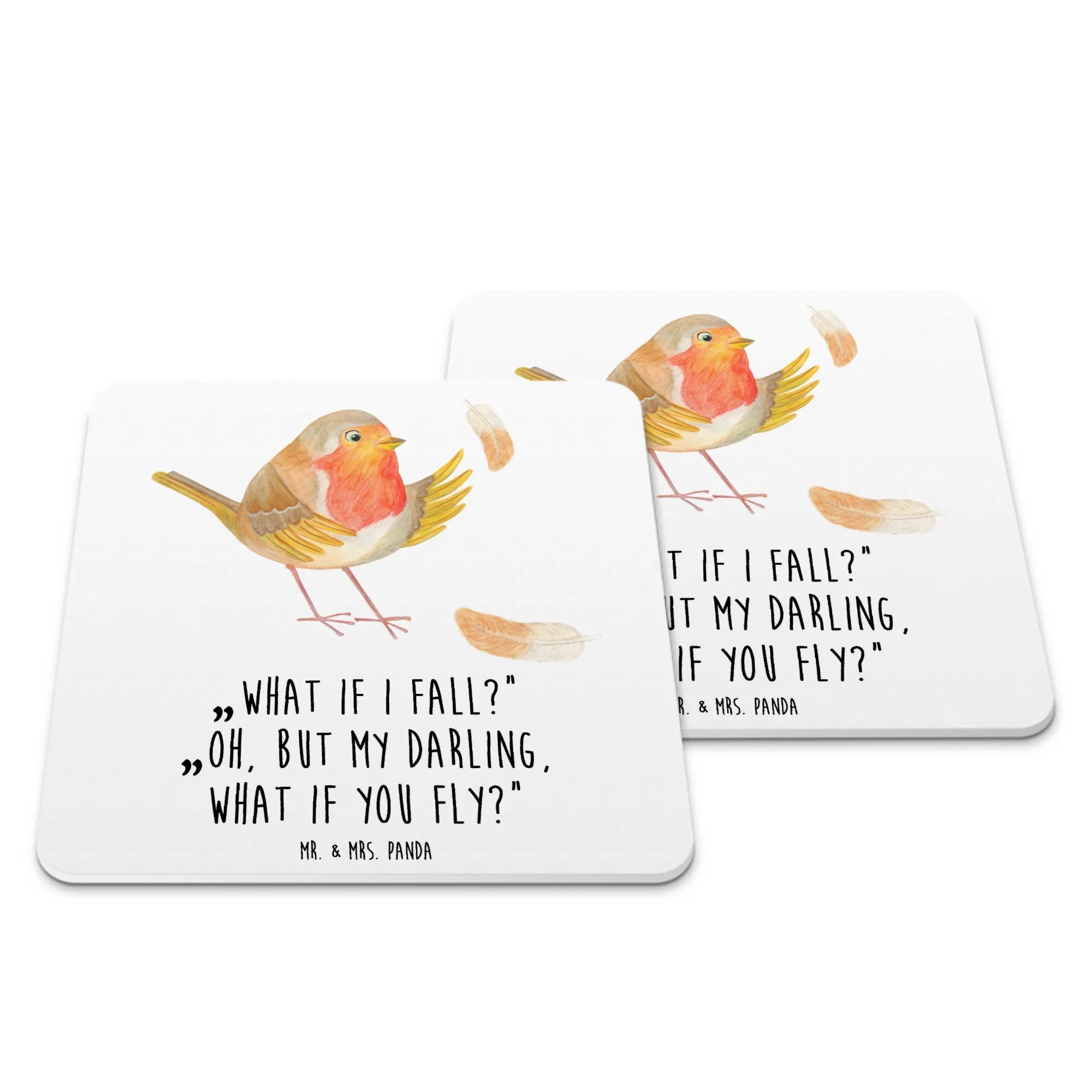 Untersetzer Set Rotkehlchen Federn - 15er Set - mit Spruch