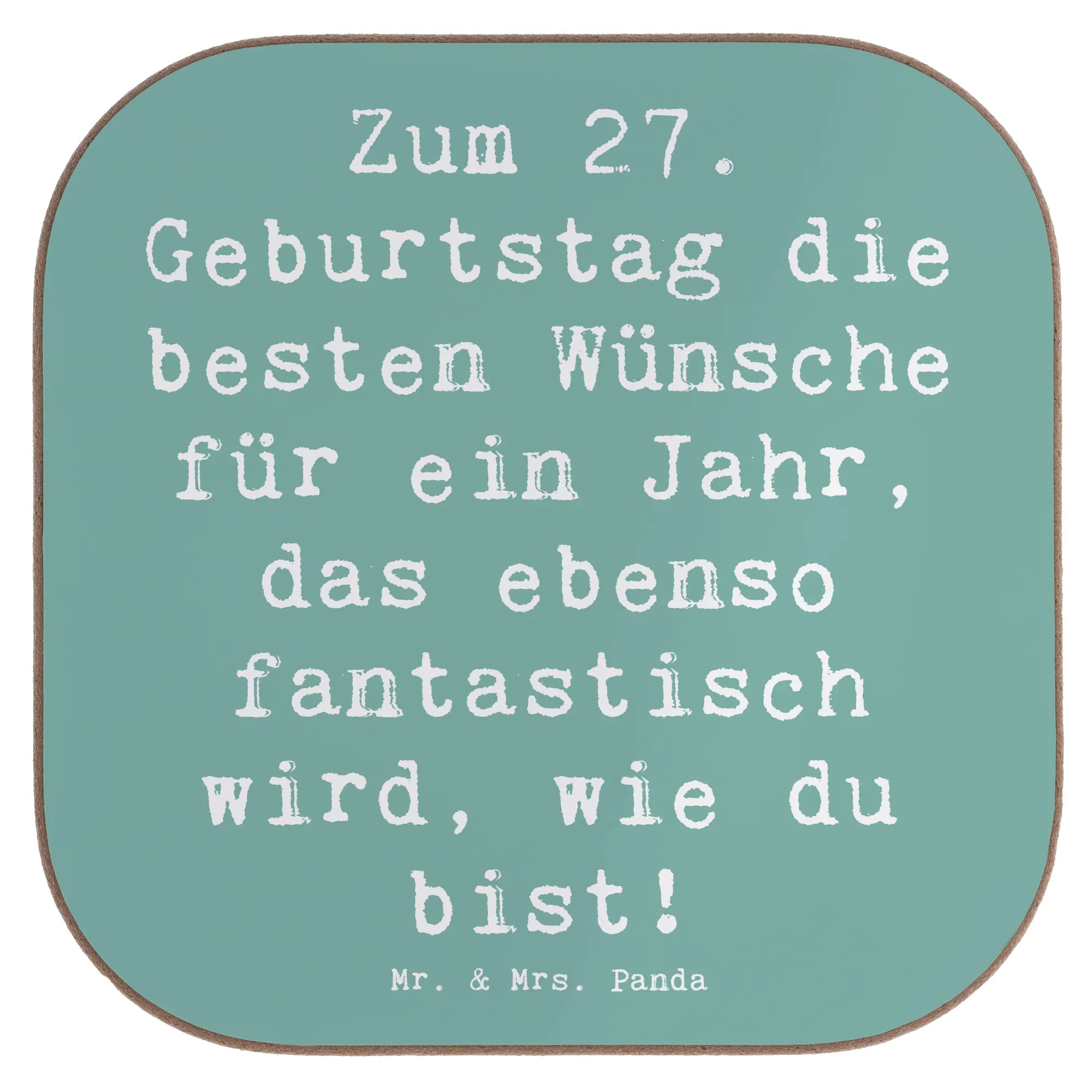 Der wunderschöne Untersetzer zum 27. Geburtstag von Mr. & Mrs. Panda ist das perfekte Geschenk für all die besonderen Menschen in deinem Leben, die diesen besonderen Tag feiern! Mit dem liebevollen Slogan 'Zum 27. Geburtstag die besten Wünsche für ein Jahr, das ebenso fantastisch wird, wie du bist!' bringt dieser stilvolle Untersetzer nicht nur Freude, sondern schützt auch deine Tischoberflächen vor unschönen Abdrücken und Kratzern.