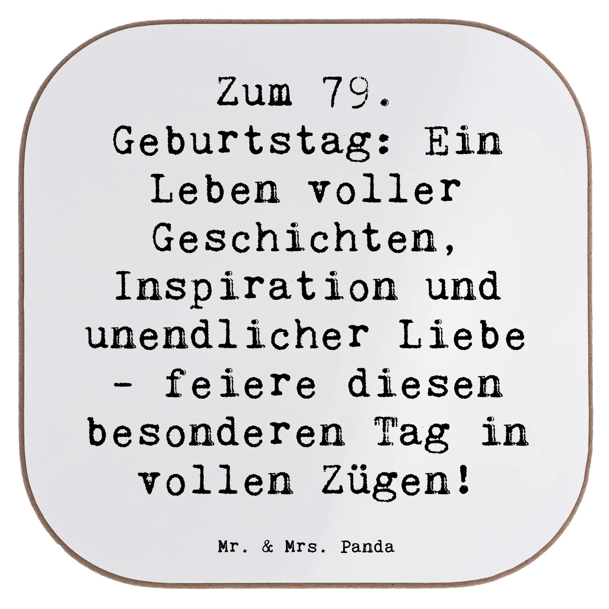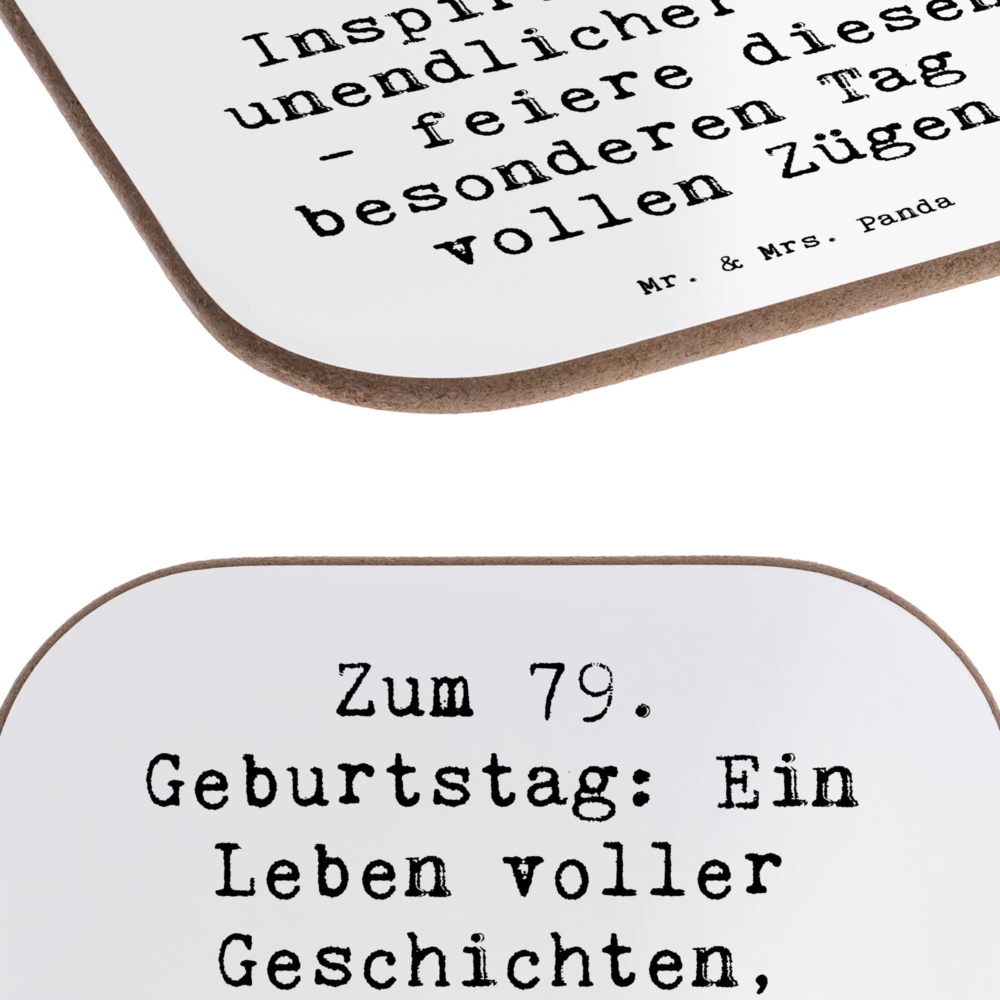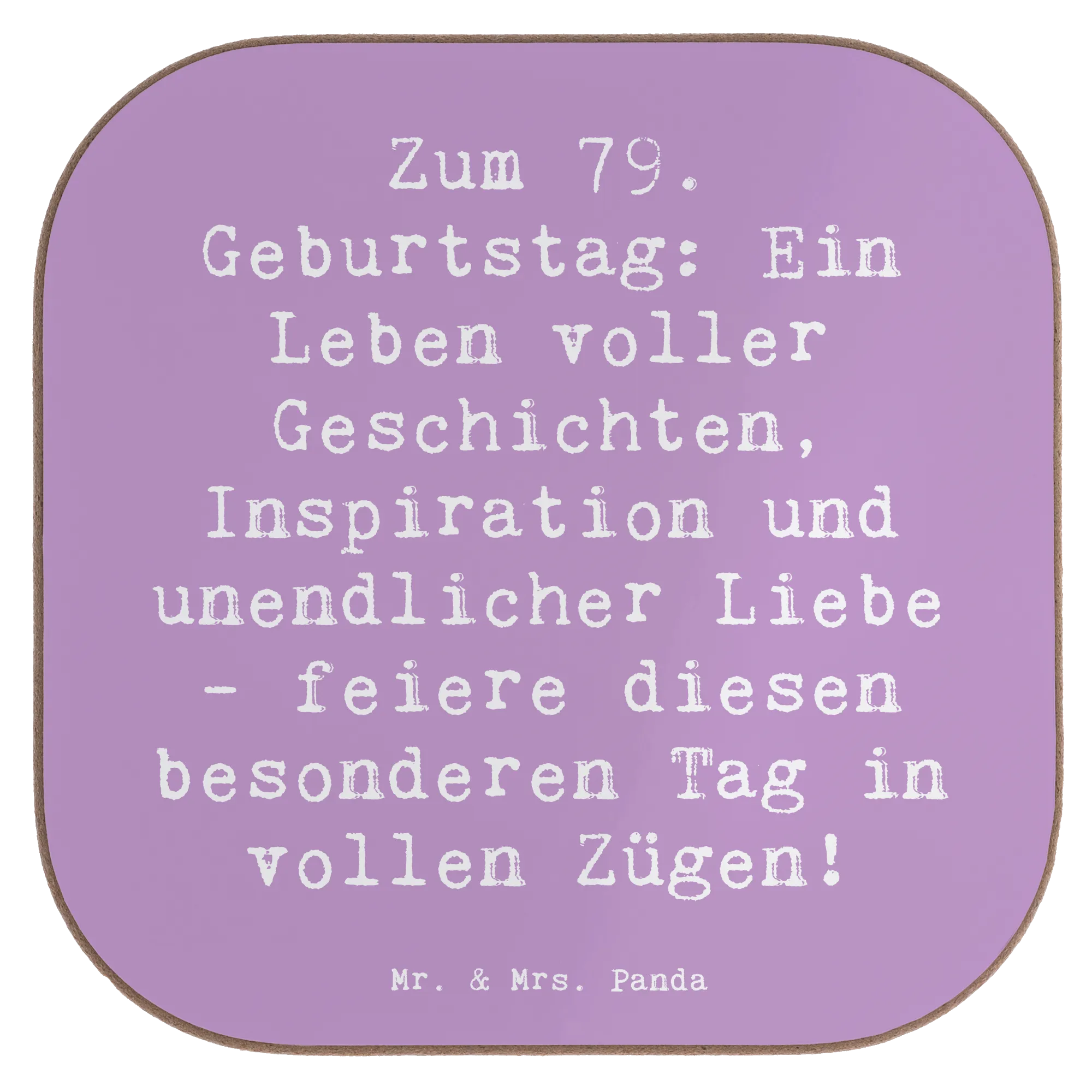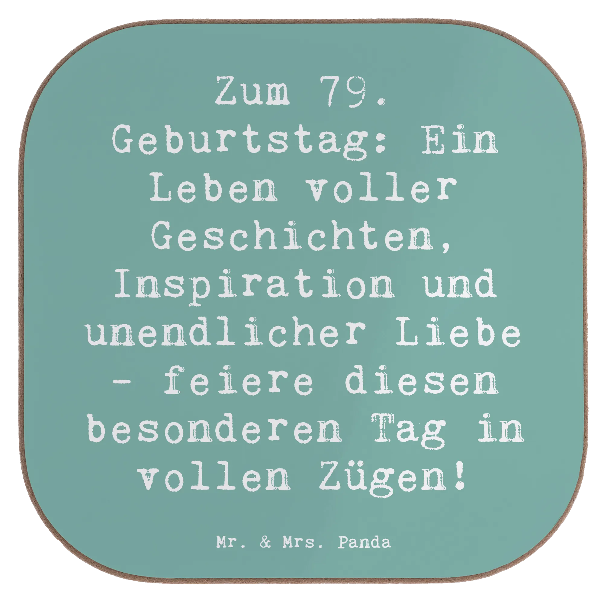 Der wunderschöne quadratische Untersetzer von Mr. & Mrs. Panda ist das perfekte Geschenk zum 79. Geburtstag! Ob als Geschenk für die besten Freunde, Verwandte oder sogar für dich selbst – dieser Untersetzer bringt Freude und Ausstrahlung in jedes Zuhause. Bedruckt mit dem herzerwärmenden Spruch: "Zum 79. Geburtstag: Ein Leben voller Geschichten, Inspiration und unendlicher Liebe - feiere diesen besonderen Tag in vollen Zügen!", ist er nicht nur ein nützliches Accessoire, sondern auch ein wunderbares Kunstwerk.