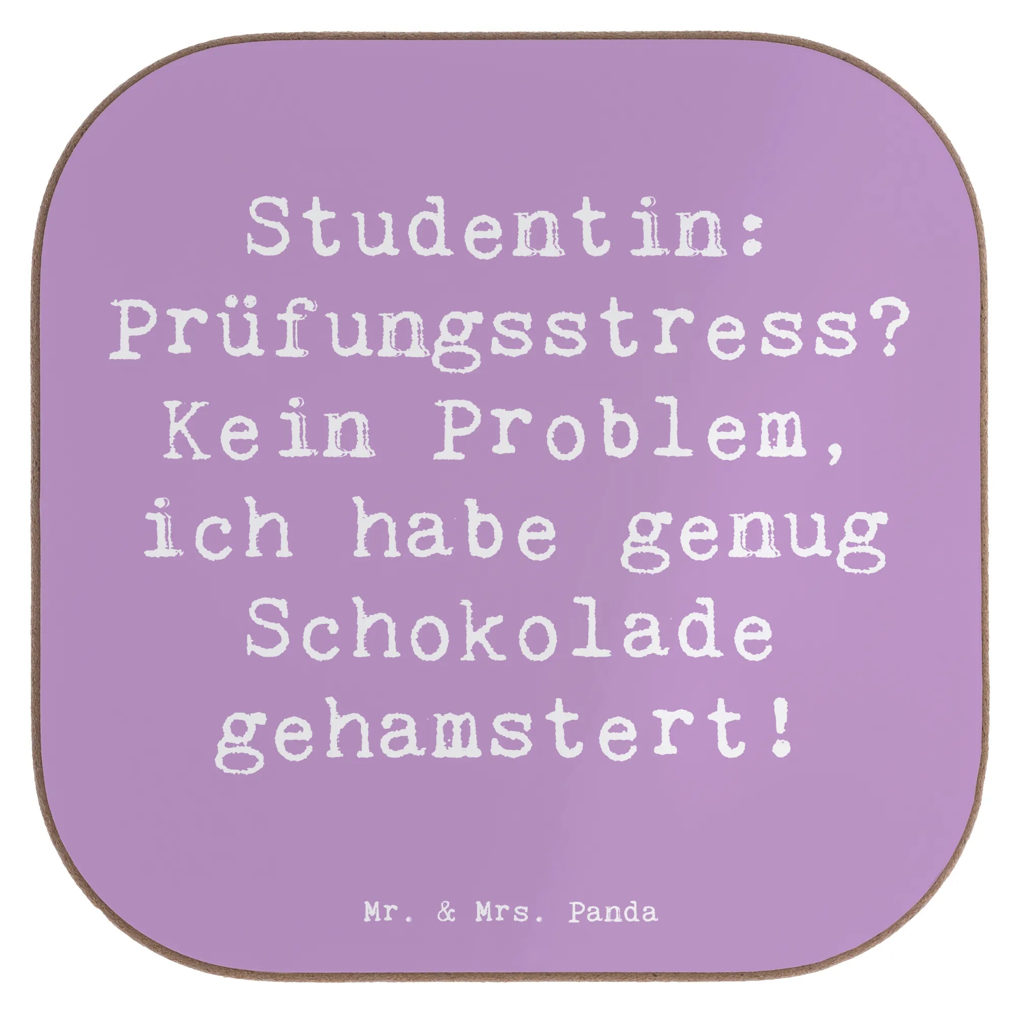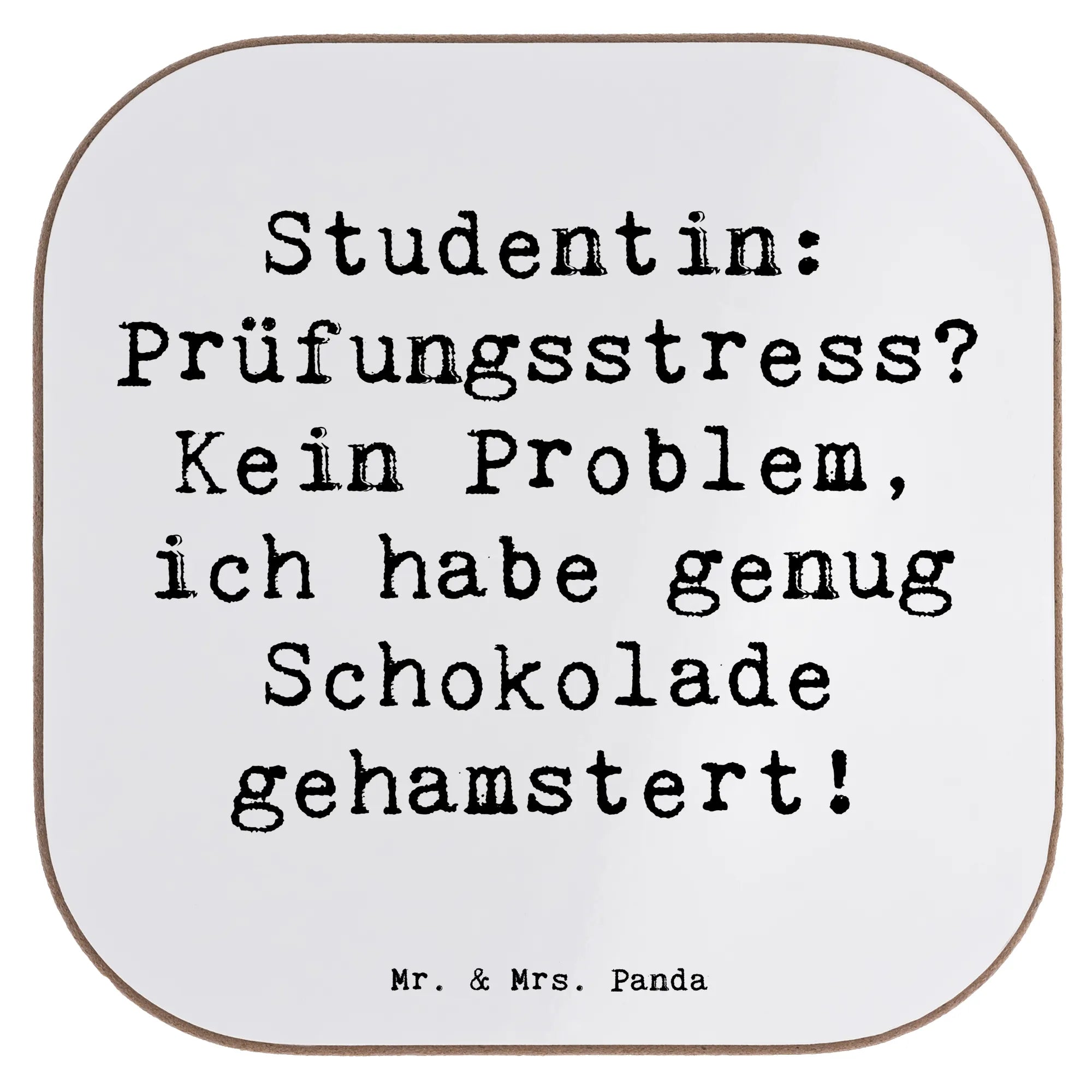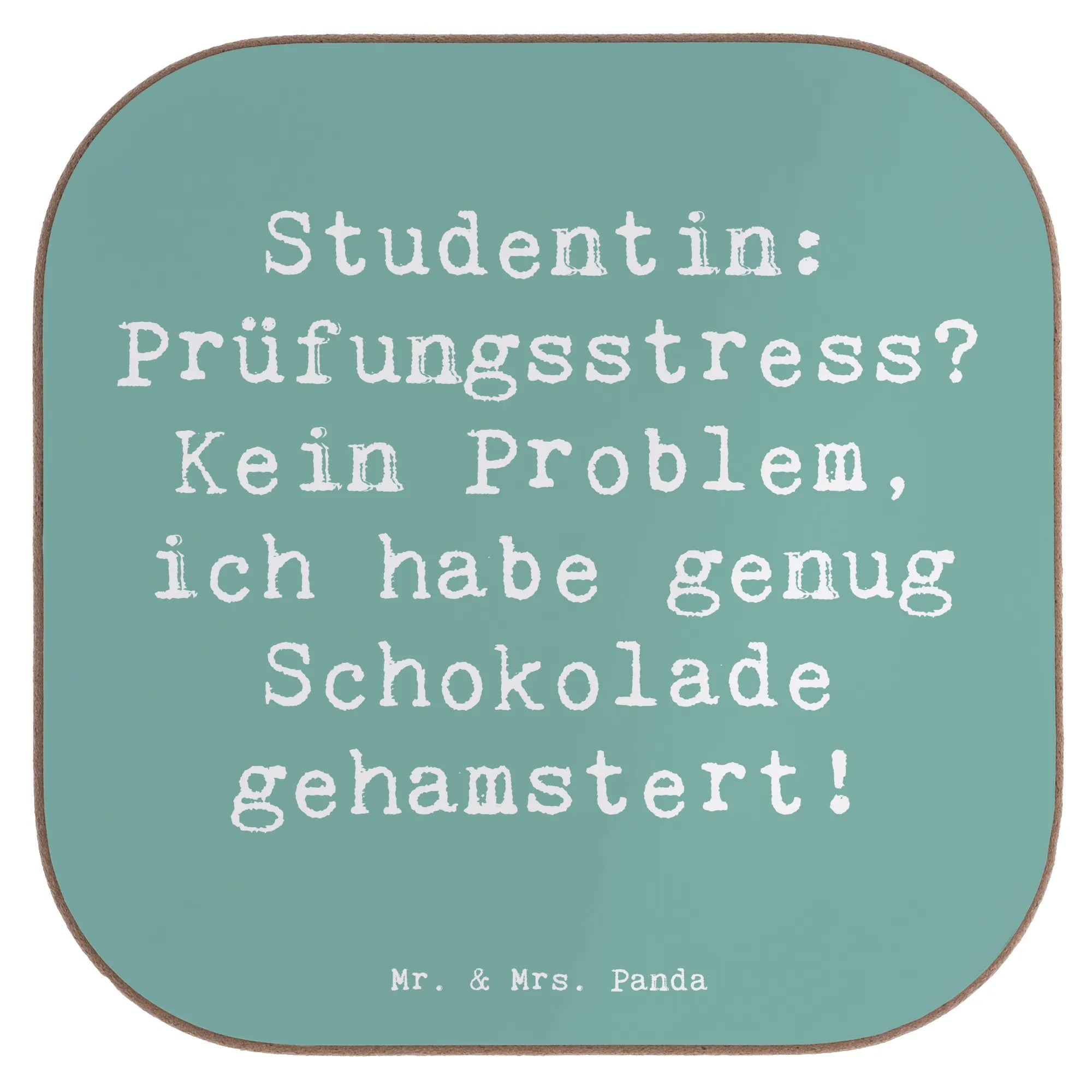 Untersetzer Spruch Studentin: Prüfungsstress? Kein Problem, ich habe genug Schokolade gehamstert! - Meeresbrise