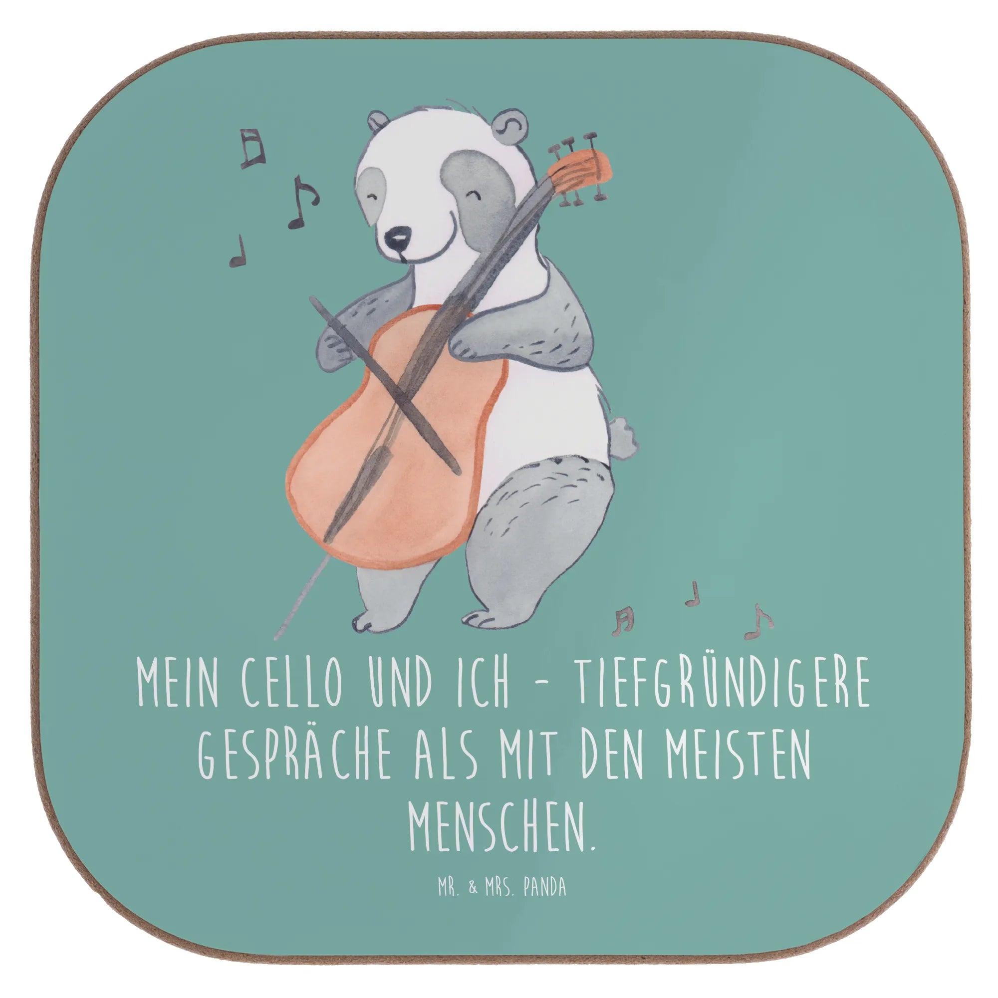 Ein wunderschöner quadratischer Untersetzer von Mr. & Mrs. Panda – dein neues Lieblingsaccessoire für Kaffee-, Tee- und Weingenuss. Der Untersetzer ist bedruckt mit einem liebevollen Violoncello-Motiv und dem Spruch „Mein Cello und ich - tiefgründigere Gespräche als mit den meisten Menschen.“, ideal für alle, die klassische Musik und Streichinstrumente lieben.