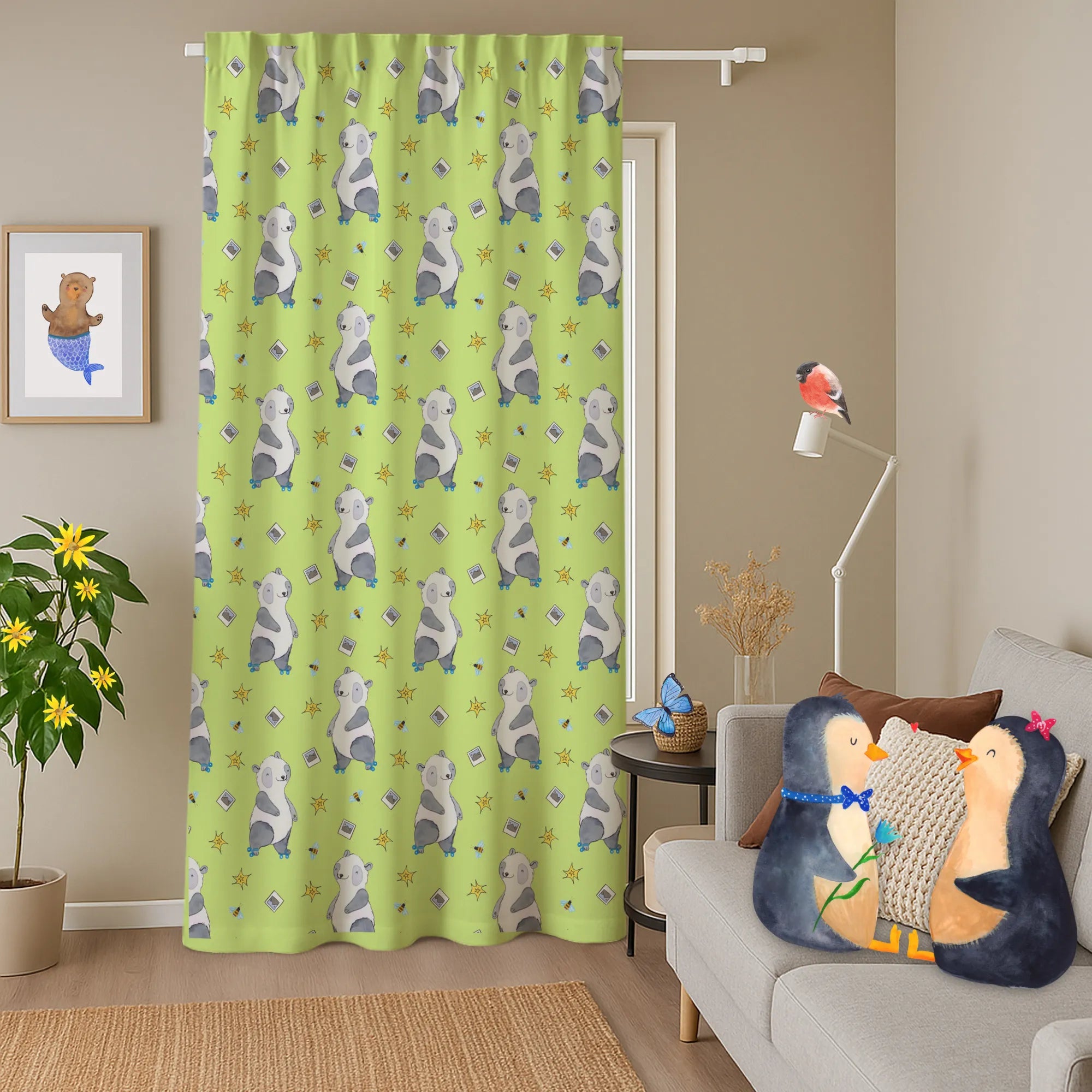 Wenn der Wind durch das geöffnete Fenster weht und der Stoffvorhang sanft schwingt, scheint es fast so, als würde der kleine Panda wirklich über den Stoff flitzen. Dieser Gardinenschal aus hochwertigem Drillgewebe aus 100% Baumwolle ist ein echtes Qualitätsprodukt. Mit seinen Maßen von 1400 mm x 2500 mm bietet er die perfekte Größe, um als Seitenschal oder dekorativer Flächenvorhang Akzente zu setzen. ✨