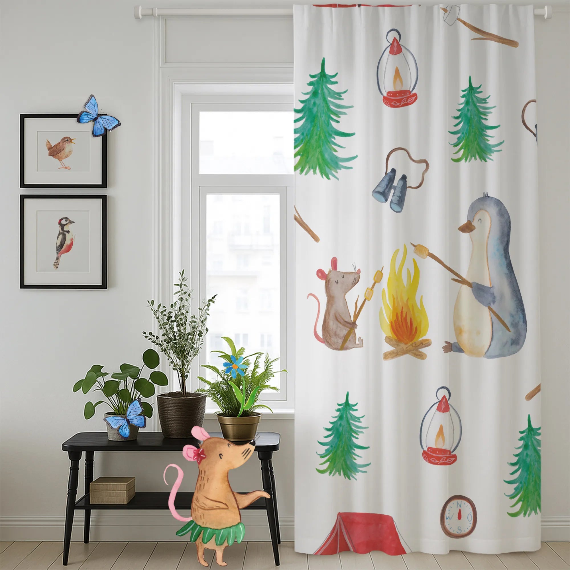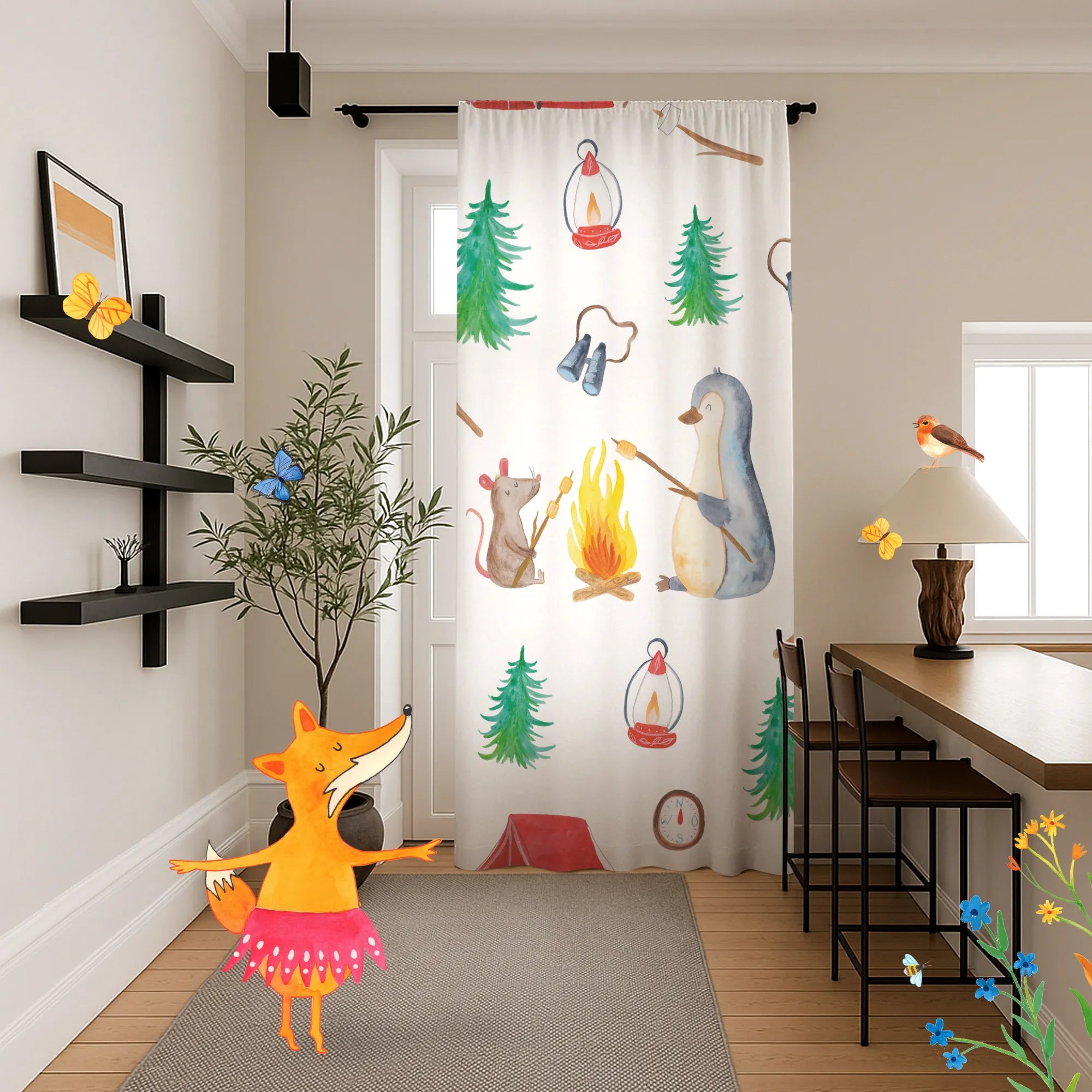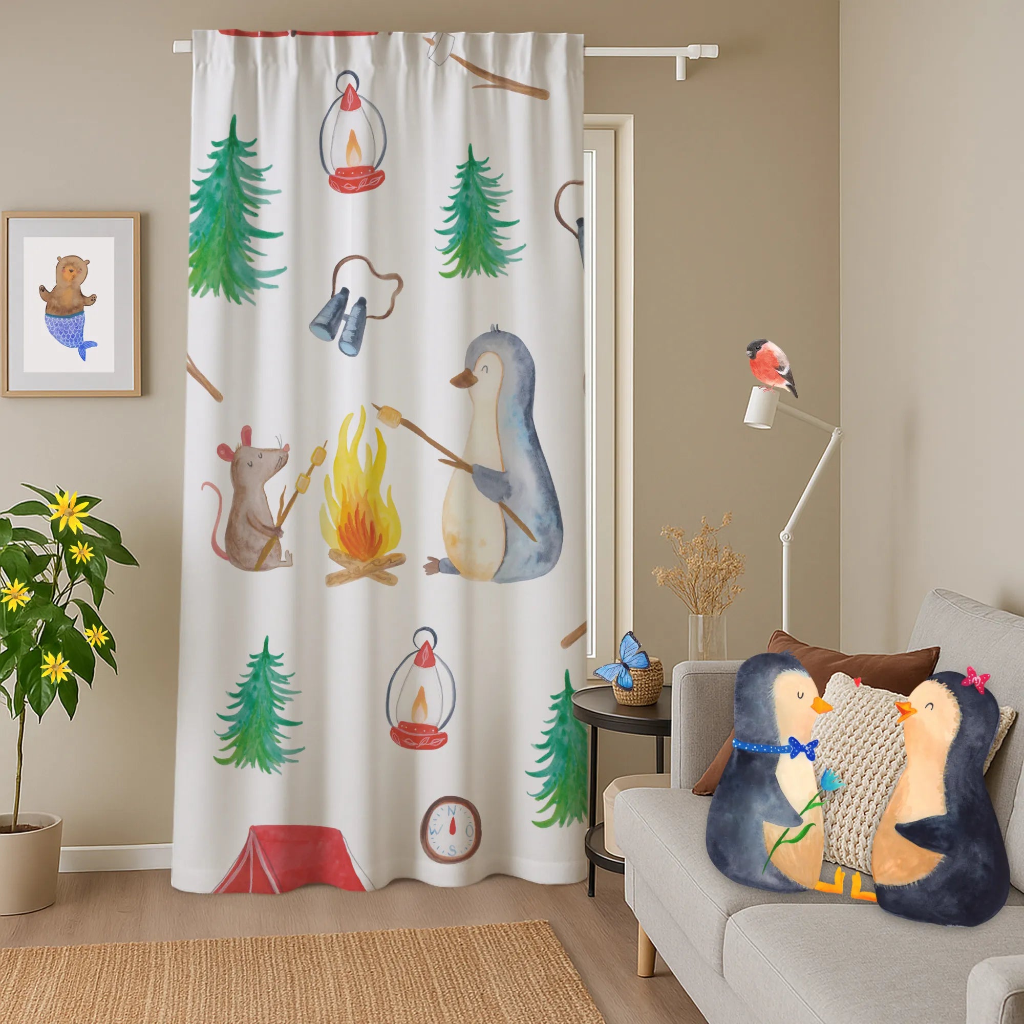Vorhang Pinguin Lagerfeuer Muster