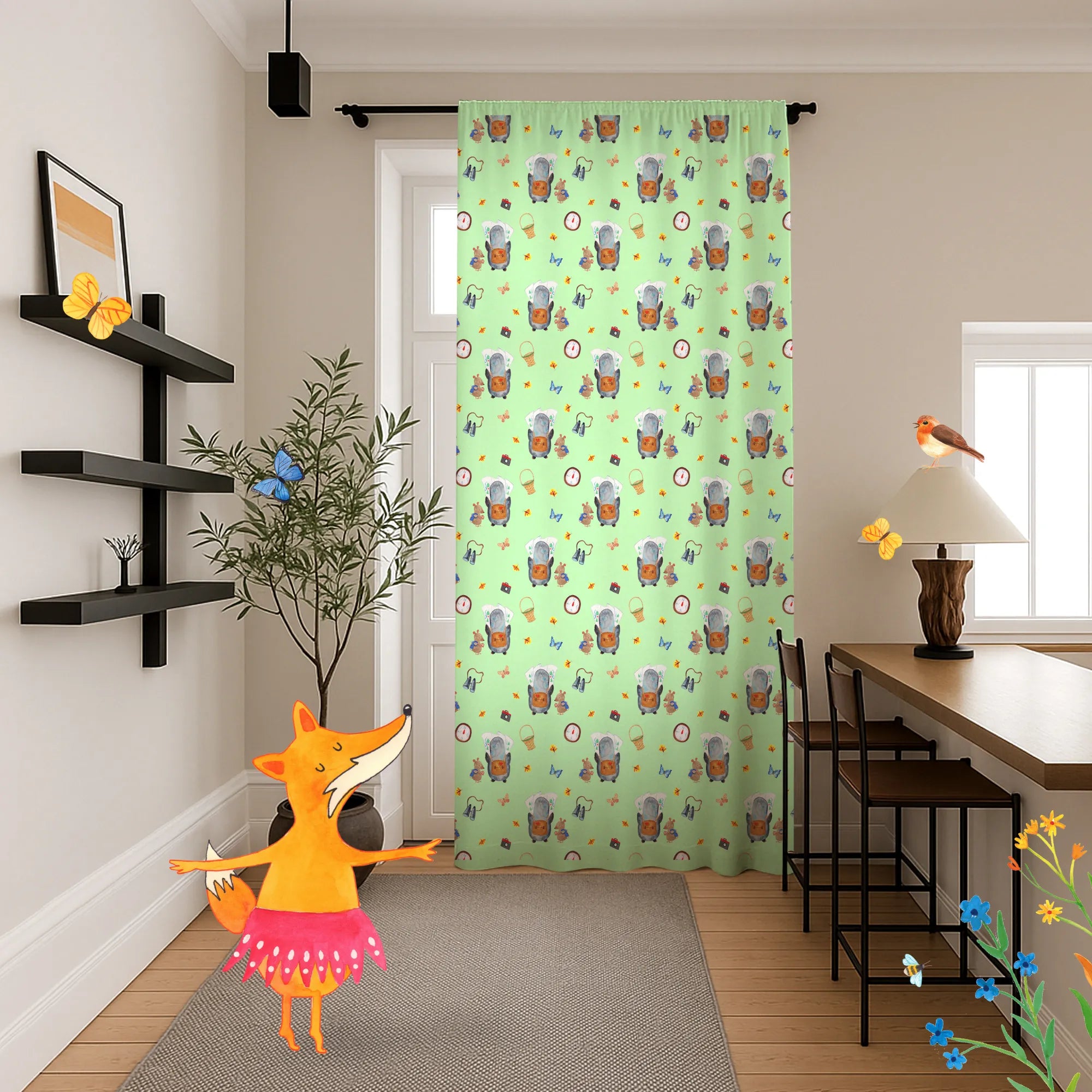 Vorhang Pinguin & Maus Wanderer Muster