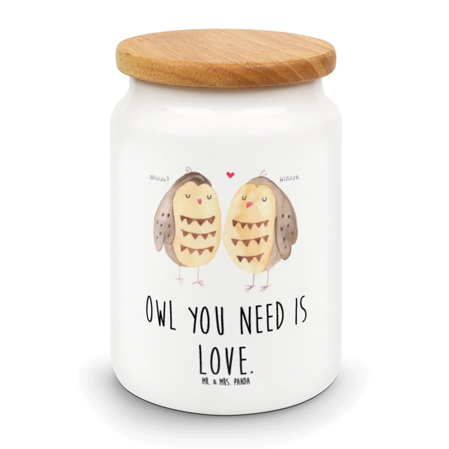 Suchst du nach dem perfekten Geschenk für Eulen-Liebhaber oder für einen feierlichen Anlass wie eine Hochzeit? Die liebevoll bedruckte Vorratsdose "Eule Liebe" von Mr. & Mrs. Panda ist genau das, was du suchst!