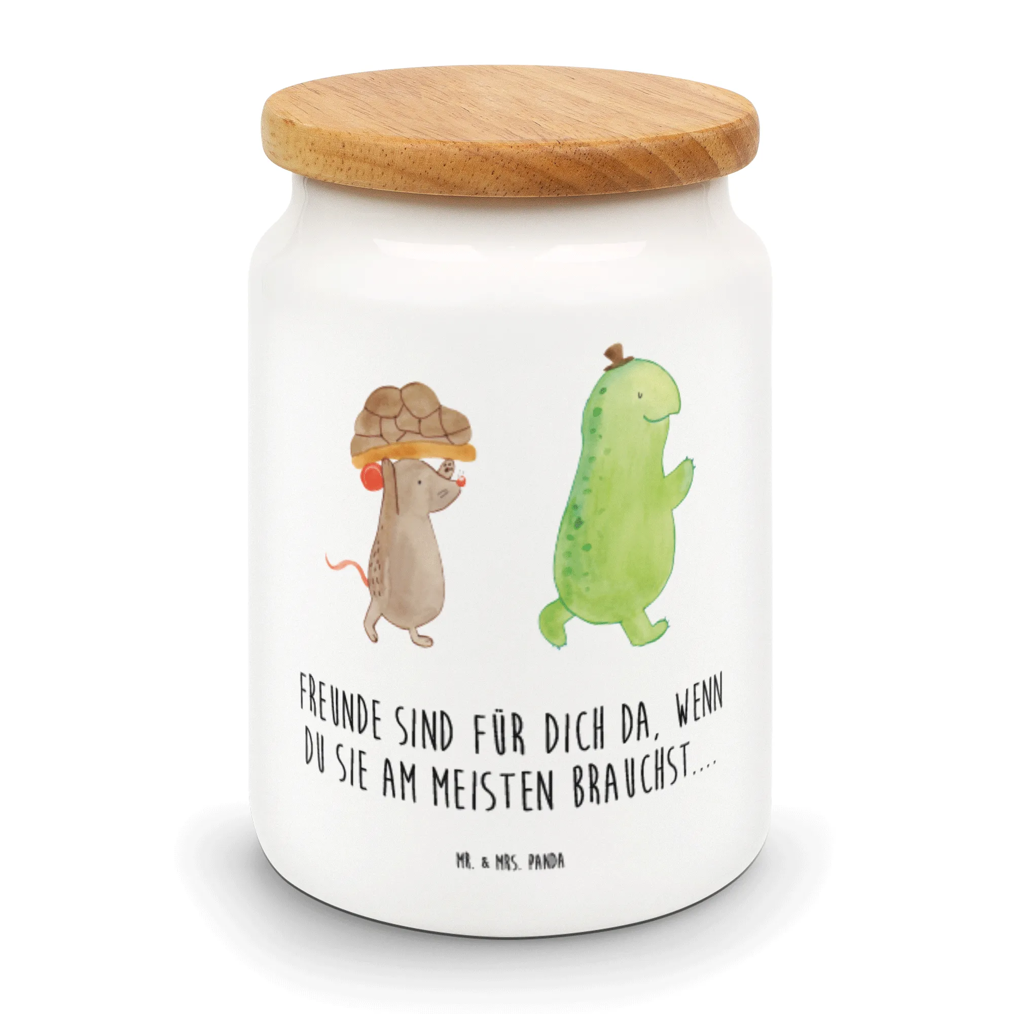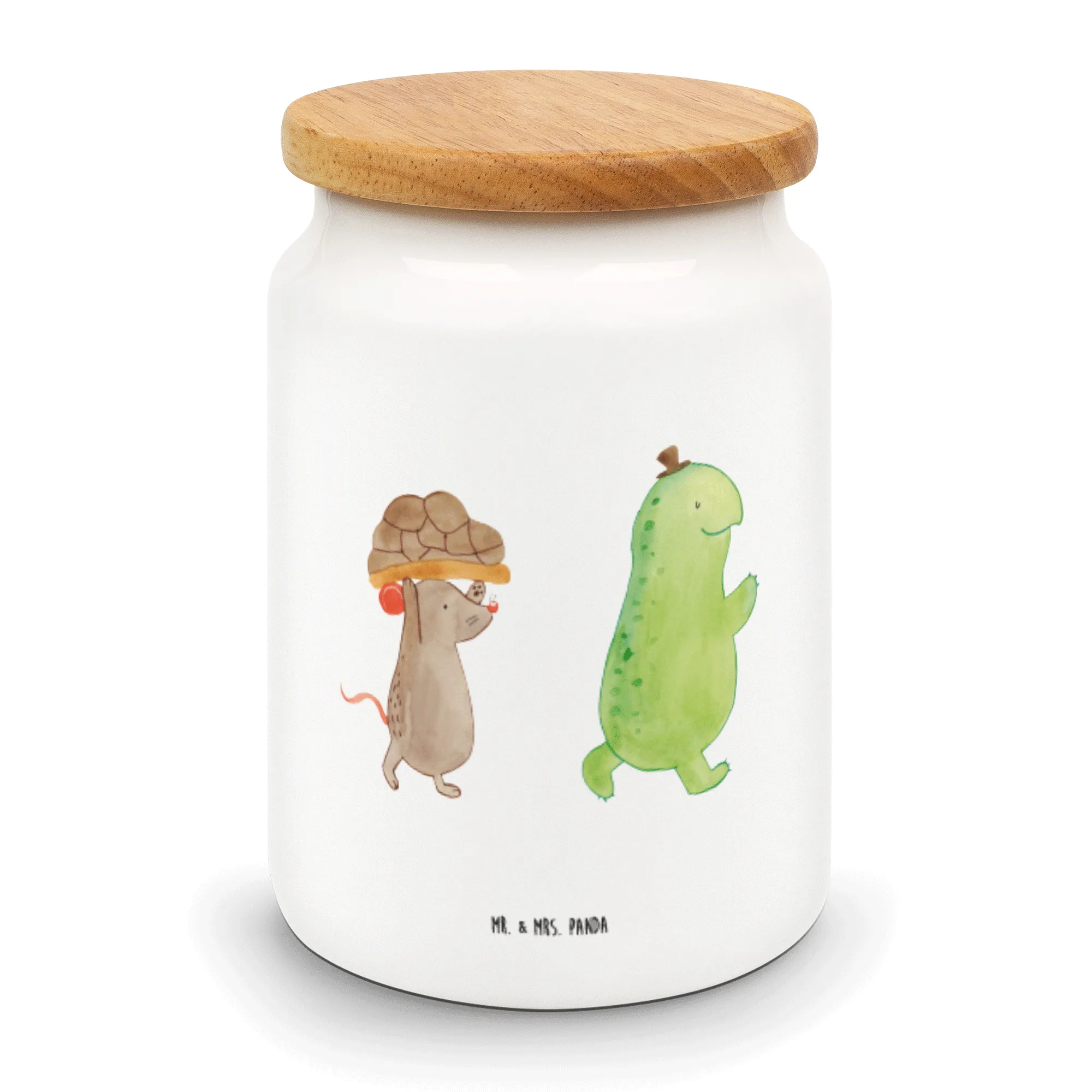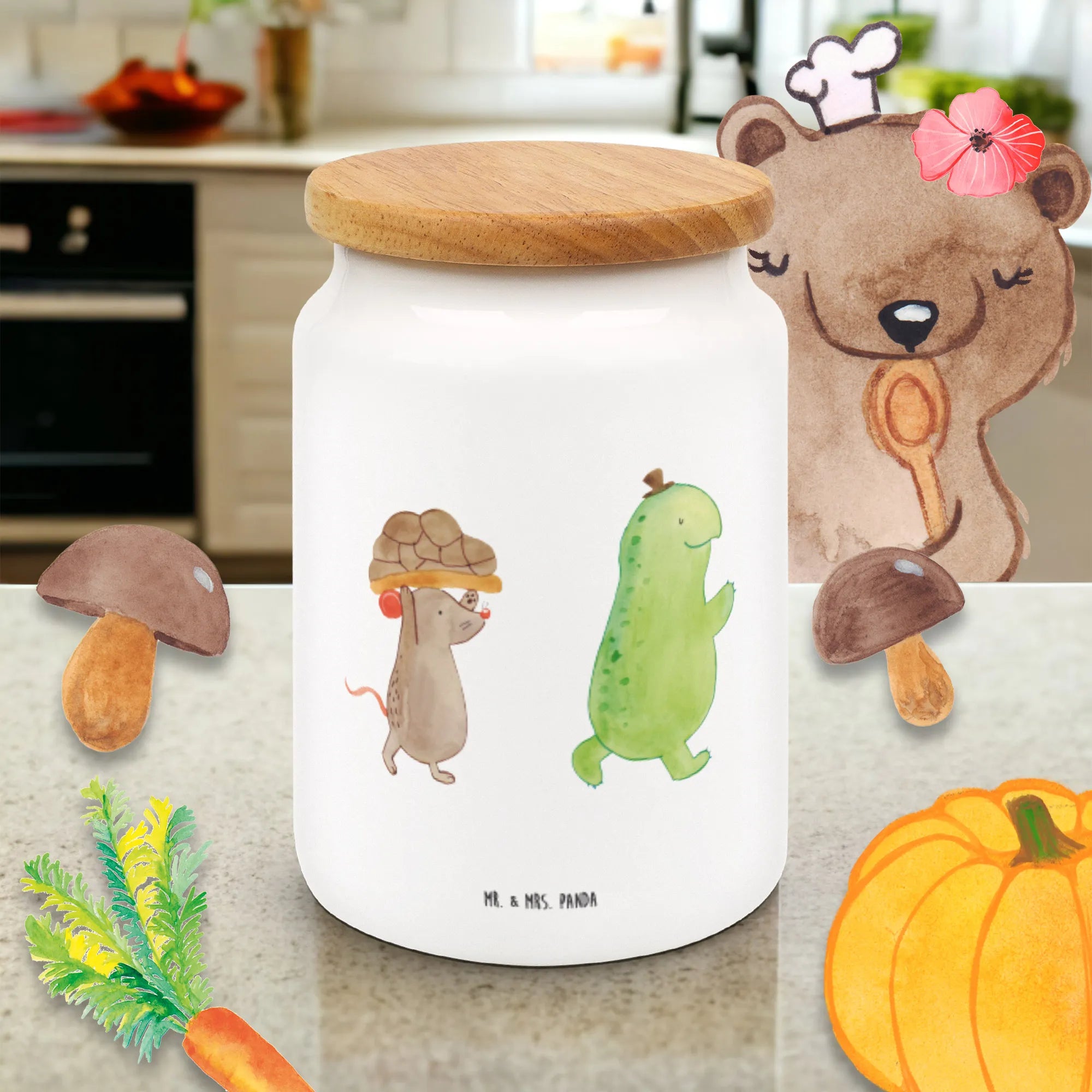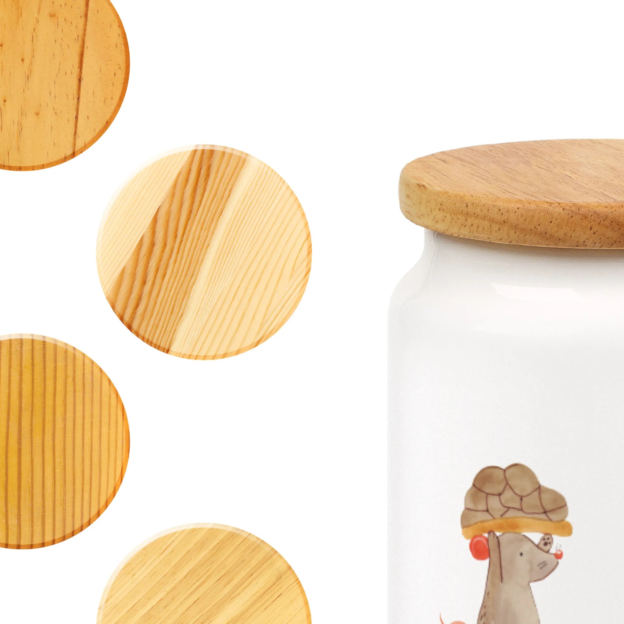Schau dir die bezaubernde Vorratsdose von Mr. & Mrs. Panda an, die jedem Küchenschrank ein wenig Magie verleiht! Sie hat eine Höhe von 145 mm, einen Durchmesser von 95 mm und fasst 650 ml. Ideal zur Aufbewahrung von Keksen, Süßigkeiten oder auch Gewürzen. Die Motive und Sprüche von Mr. & Mrs. Panda sind mit einem brillanten Druck auf hochwertiger Keramik gearbeitet, was nicht nur schön aussieht, sondern auch langlebig ist. Der massive Holzdeckel sorgt mit seiner Kunststoffdichtung dafür, dass deine Leckereien frisch bleiben. Der Pflegeaufwand ist minimal, denn die Dose ist spülmaschinengeeignet. Ein wunderbares Geschenk für jeden Anlass oder um deiner eigenen Küche einen ganz besonderen Charme zu verleihen!