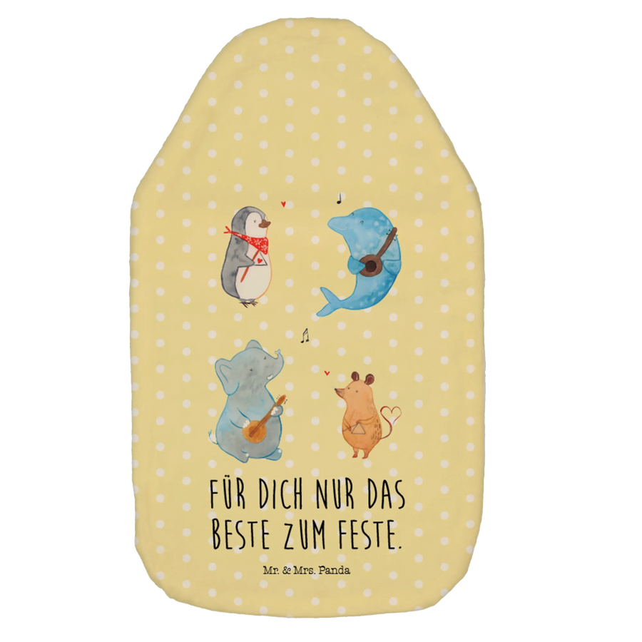 Du suchst nach einem perfekten Geschenk für einen Musikliebhaber oder einfach eine kuschelige Wärmequelle? Dann ist die wunderschöne Wärmflasche im Big Band-Motiv von Mr. & Mrs. Panda genau das Richtige für dich! Diese flauschige Wärmflasche aus Naturkautschuk und mit einem ebenso weichen Bezug sorgt für stundenlange mollige Wärme und ist dazu noch ein echter Hingucker. Mit einem süßen Pinguin, einer niedlichen Maus, einem lustigen Delfin und einem fröhlichen Elefanten, die alle zusammen musizieren, zaubert diese Wärmflasche nicht nur Wärme, sondern auch ein Lächeln auf jedes Gesicht!