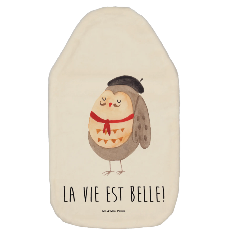 Wärmflasche Eule Frankreich - mit Spruch - Weiß