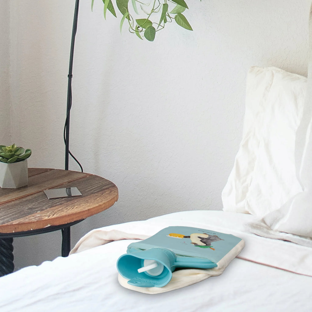Mit der Mr. & Mrs. Panda Wärmflasche holst du dir Wohlfühlmomente nach Hause. Die Kombination aus hochwertigem Naturkautschuk und einem flauschigen Bezug in den Maßen 295 mm x 170 mm und mit einer Füllmenge von 800 ml sorgt für eine gleichmäßige und langanhaltende Wärme. Die Wärmflasche, geschmückt mit liebevollen Motiven und Sprüchen, wird schnell zu einem unverzichtbaren Begleiter. Der Bezug ist abnehmbar und lässt sich bei 30°C waschen, was die Handhabung besonders einfach macht. Ob als sanfte Einschlafhilfe oder für gemütliche Stunden auf dem Sofa, diese Wärmflasche bietet Komfort und Wärme. Bitte beachte, sie nicht mit kochendem Wasser zu füllen.